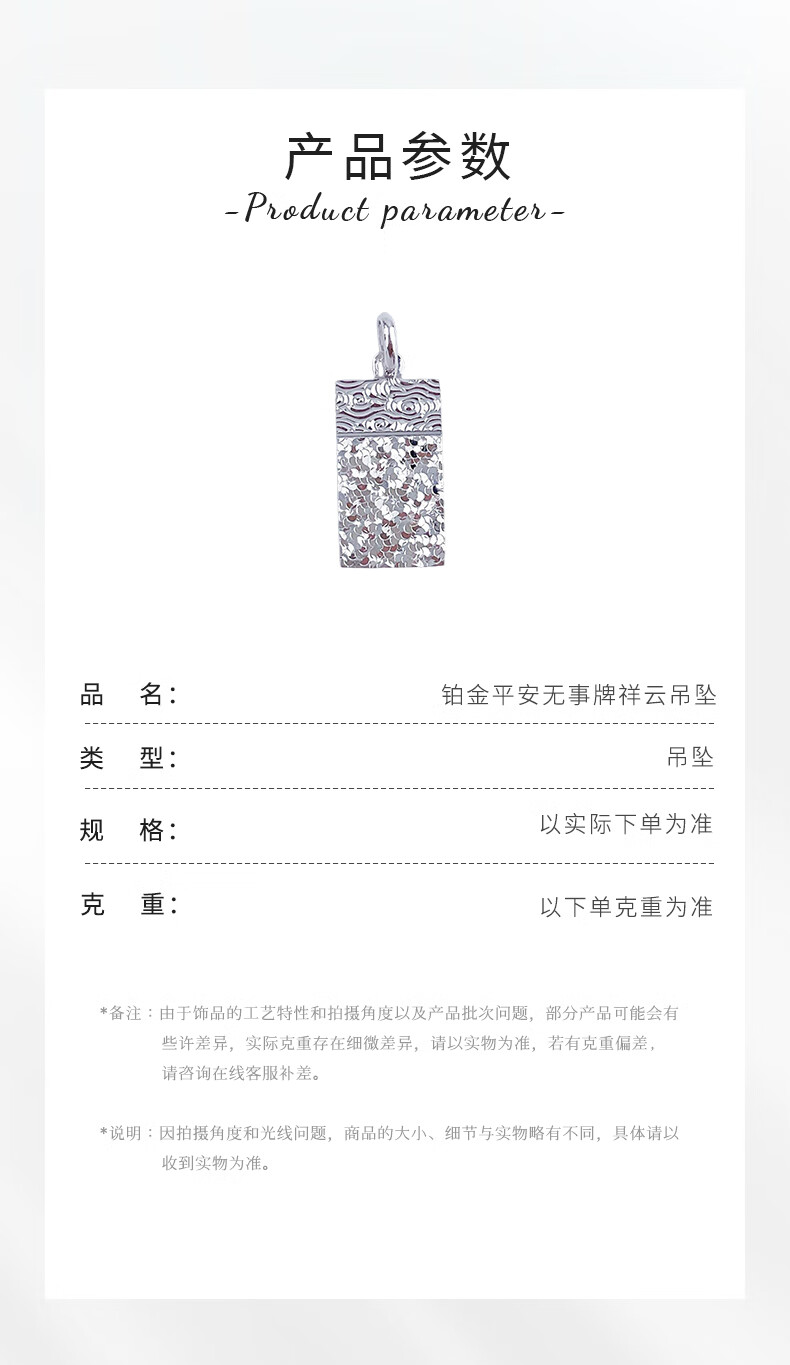 China Gold (CHINA GOLD) platinum pendant pt950 Ping An Wu Shi brand Xiangyun pendant is a birthday gift for your boyfriend and husband. Ping An Wu Shi brand is about 5.27g