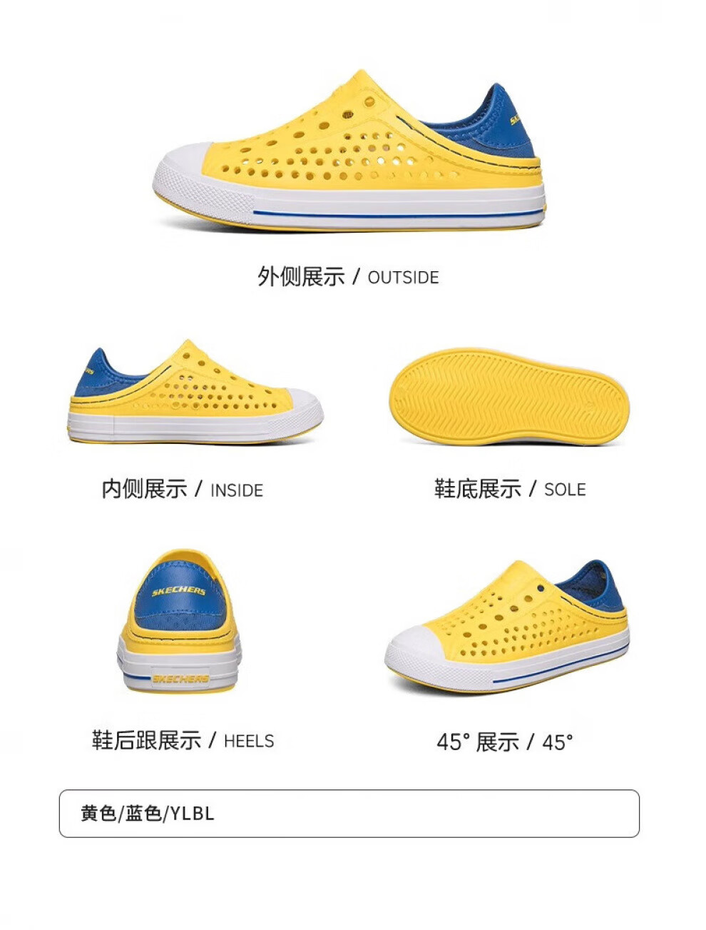 Skechers children's summer lightweight and comfortable clogs children's wading non-slip river shoes 91995L boys' foot/yellow/blue YLBL 32