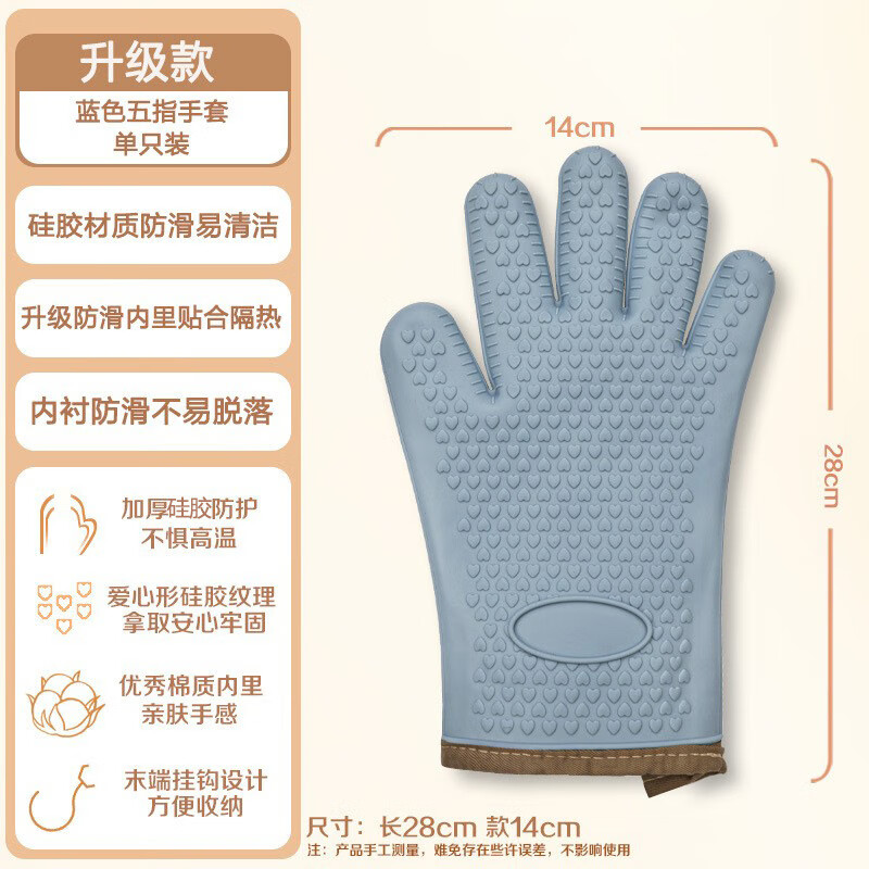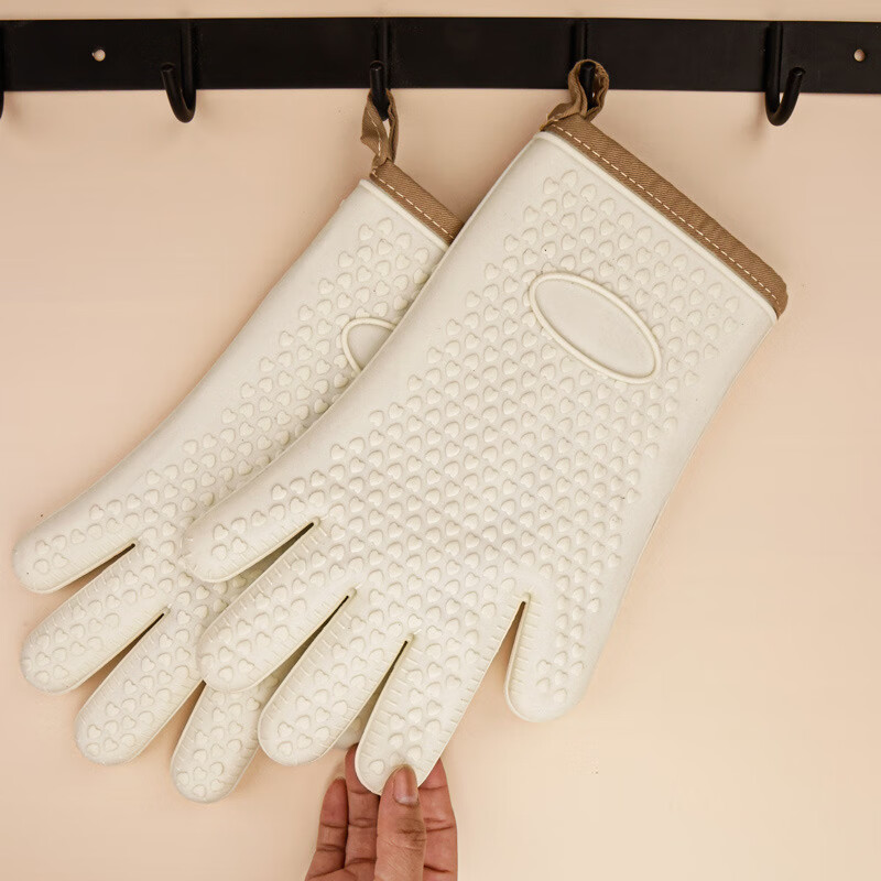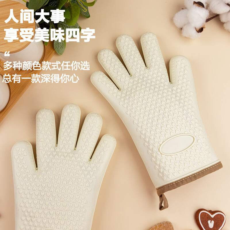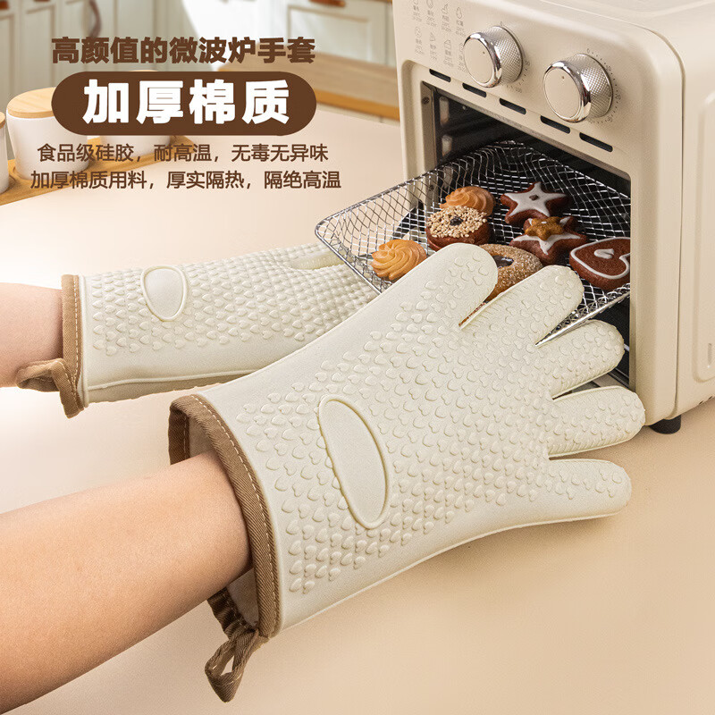 FVFH German insulation gloves anti-scalding silicone kitchen non-slip insulated oven steamer baking high temperature microwave oven gloves off-white silicone 5-finger gloves 2 pieces