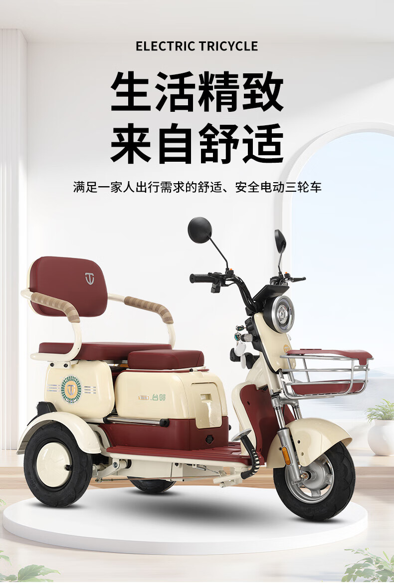 Tailin electric tricycle, electric scooter for the elderly to pick up and drop off children, leisure scooter for the elderly, electric three-wheel battery scooter, light green - free windshield quilt, Chaowei battery 48v20A + battery life 55 kilometers + 600w
