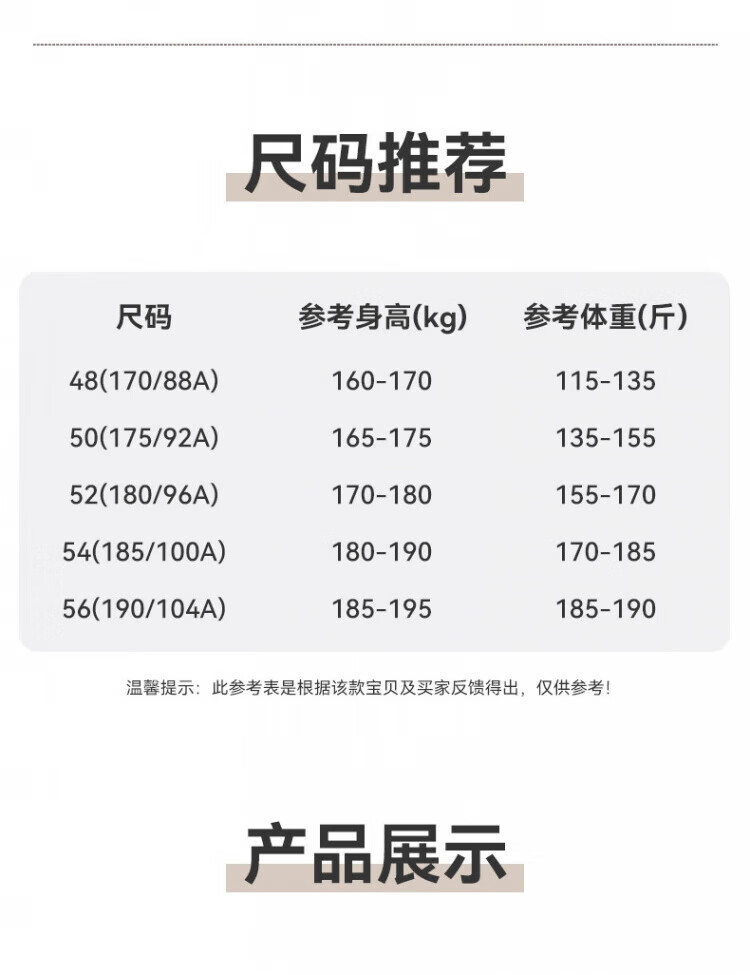 China (cm) 165 / 88-90 170 / 96-98 175 / 108-110 180 / 118-122 185 / 126-130
