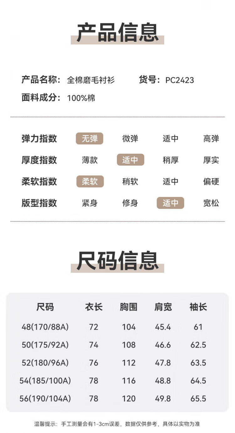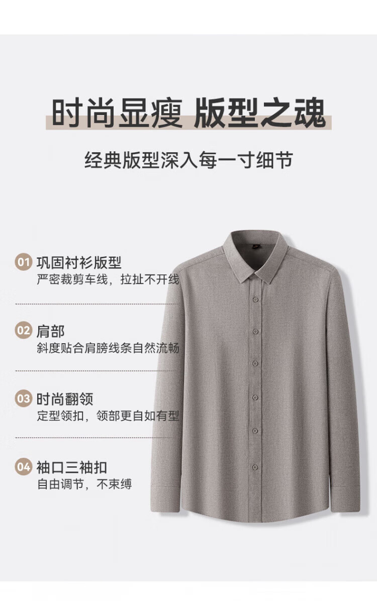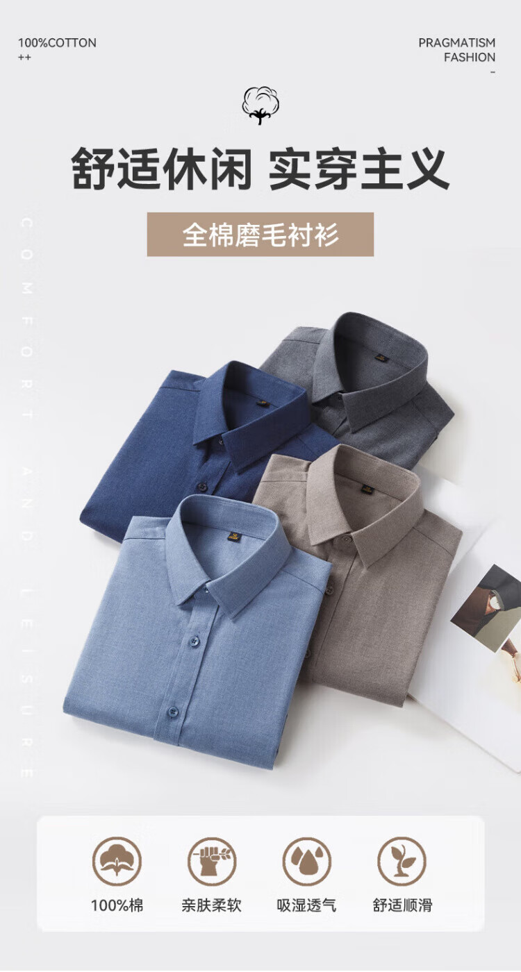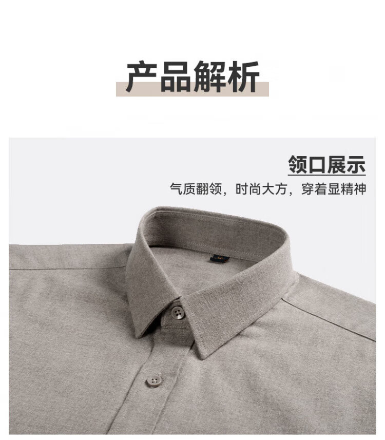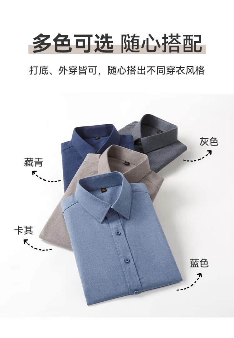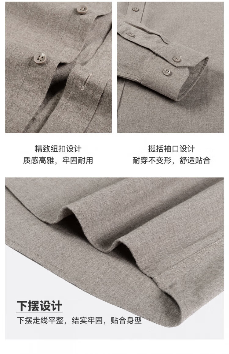 Red bean pure cotton brushed long-sleeved shirt men's spring and autumn business casual cotton sweat-absorbent and easy-care professional workwear men's shirt PC2351 Khaki 52 yards (recommended 155-170)