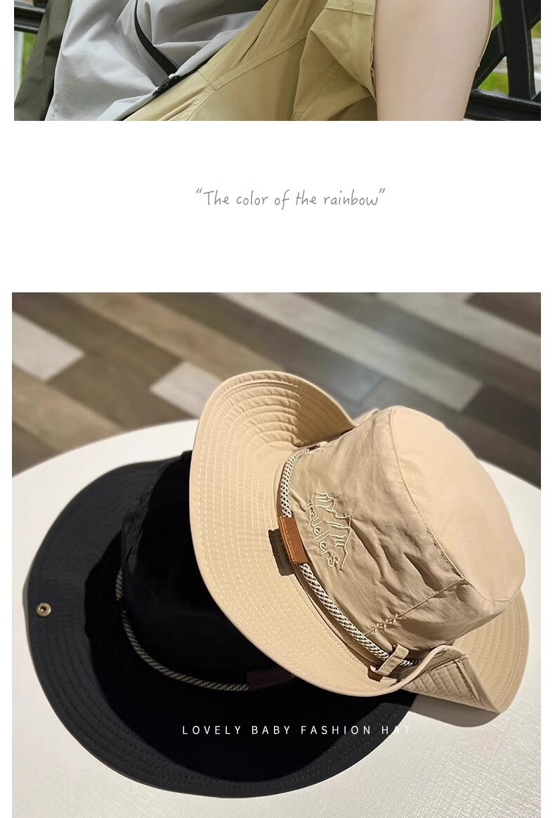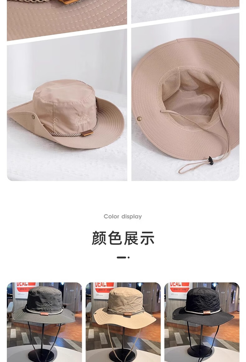 Children's sun protection hiking hat sunshade boys and girls large brim outdoor anti-UV denim fisherman sun hat black
