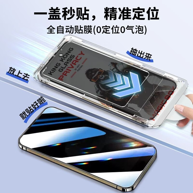 Suitable for Apple 16/15Pro tempered film anti-peeping and dust-free compartment iPhone13ProMax mobile phone film dust-proof 14Plus ultra-thin full screen anti-peeping style/dust-free warehouse style special high-reinforced high-aluminum ultra-clear 1 piece pack strong explosion-proof integrated pull-out type Apple-13
