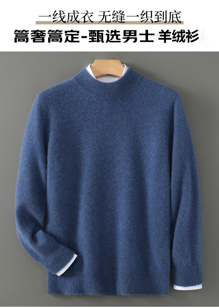KING DEER first-line ready-to-wear 100 pure cashmere sweater men's half turtleneck thickened business cashmere sweater loose knitted bottoming shirt dark gray round neck-825 XL