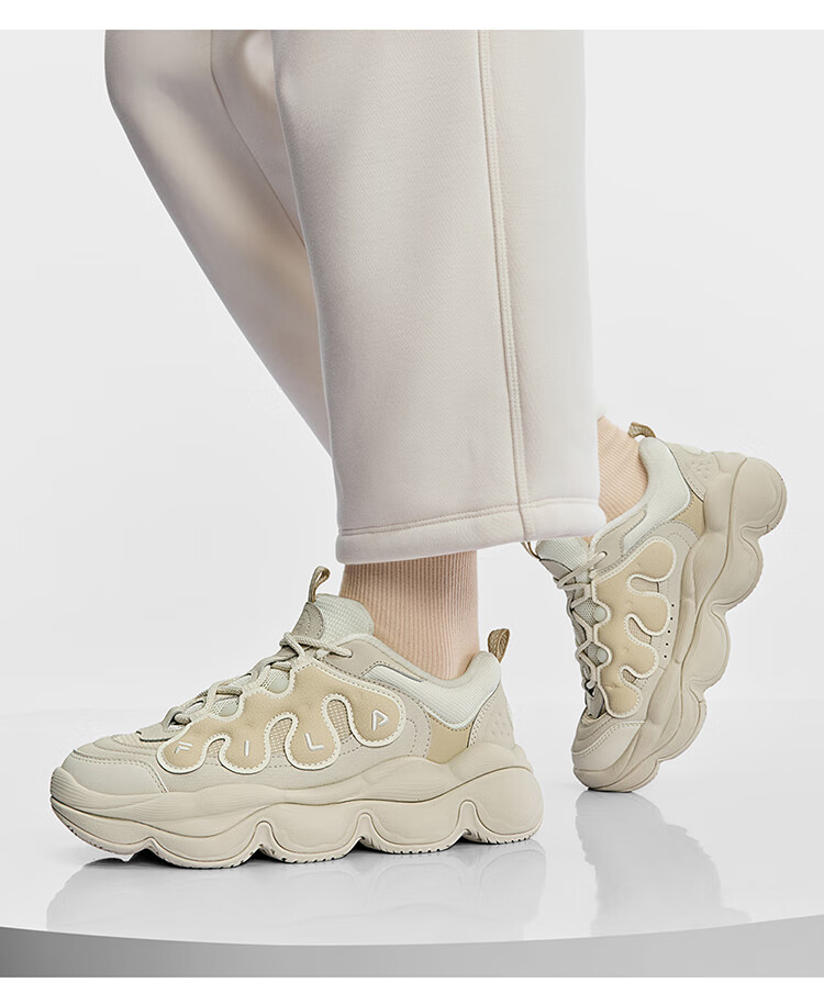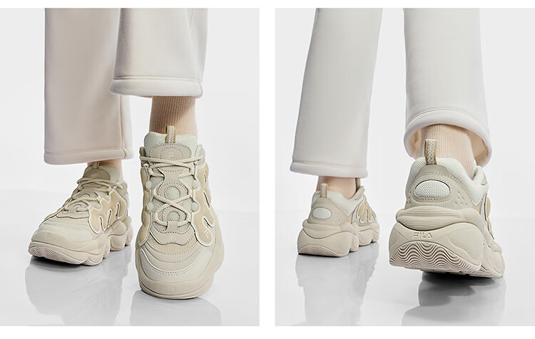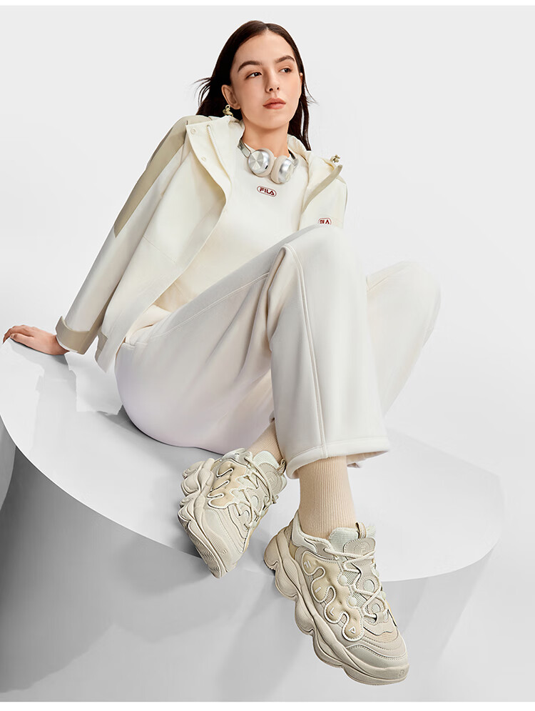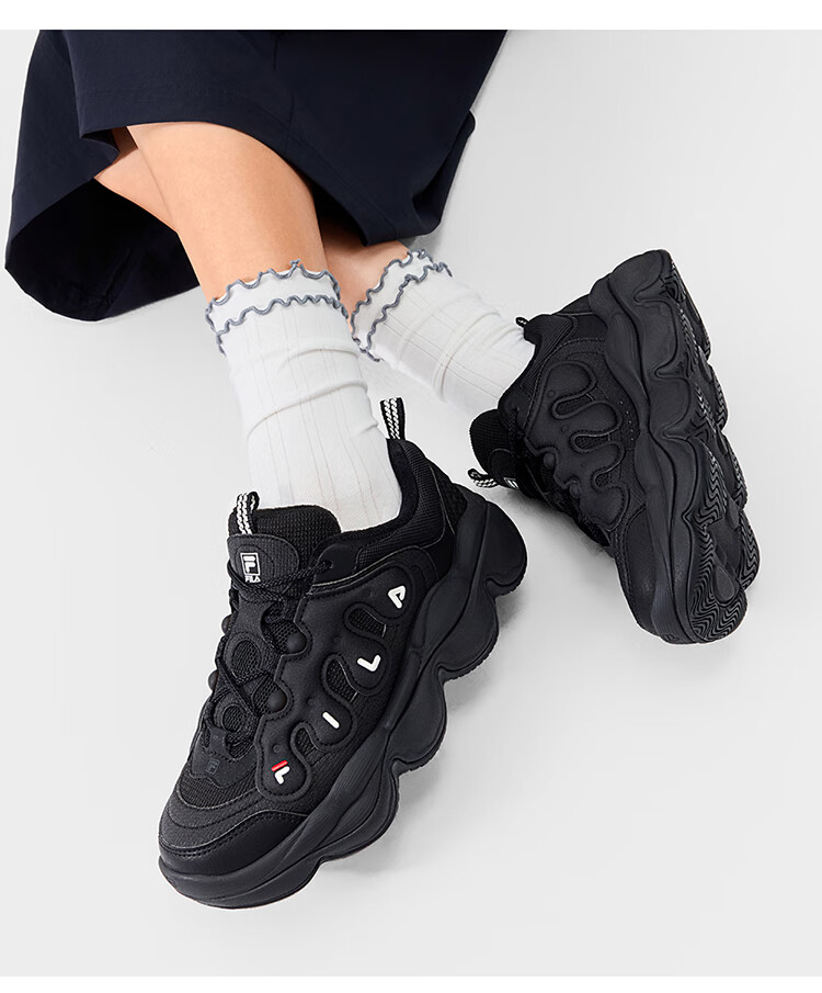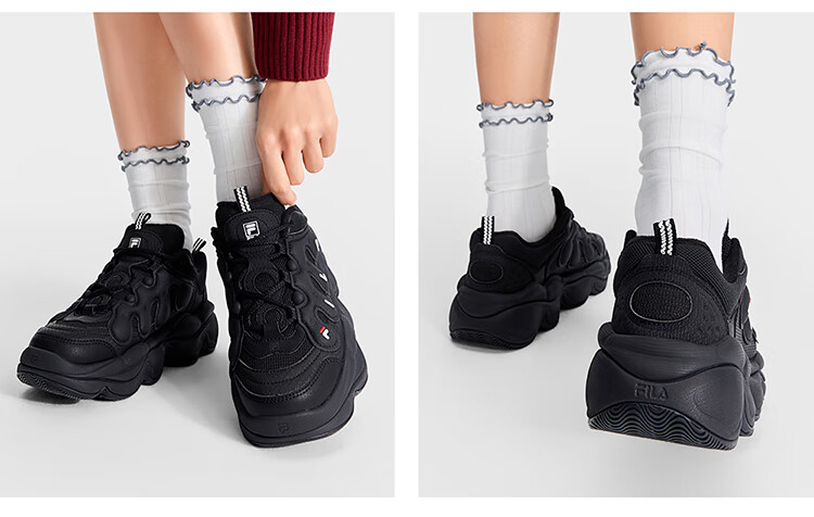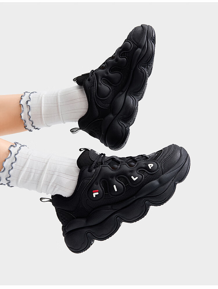 FILA official women's shoes pea plus velvet shoes dad shoes 2025 winter new casual thick-soled sports shoes black-BK 37.5