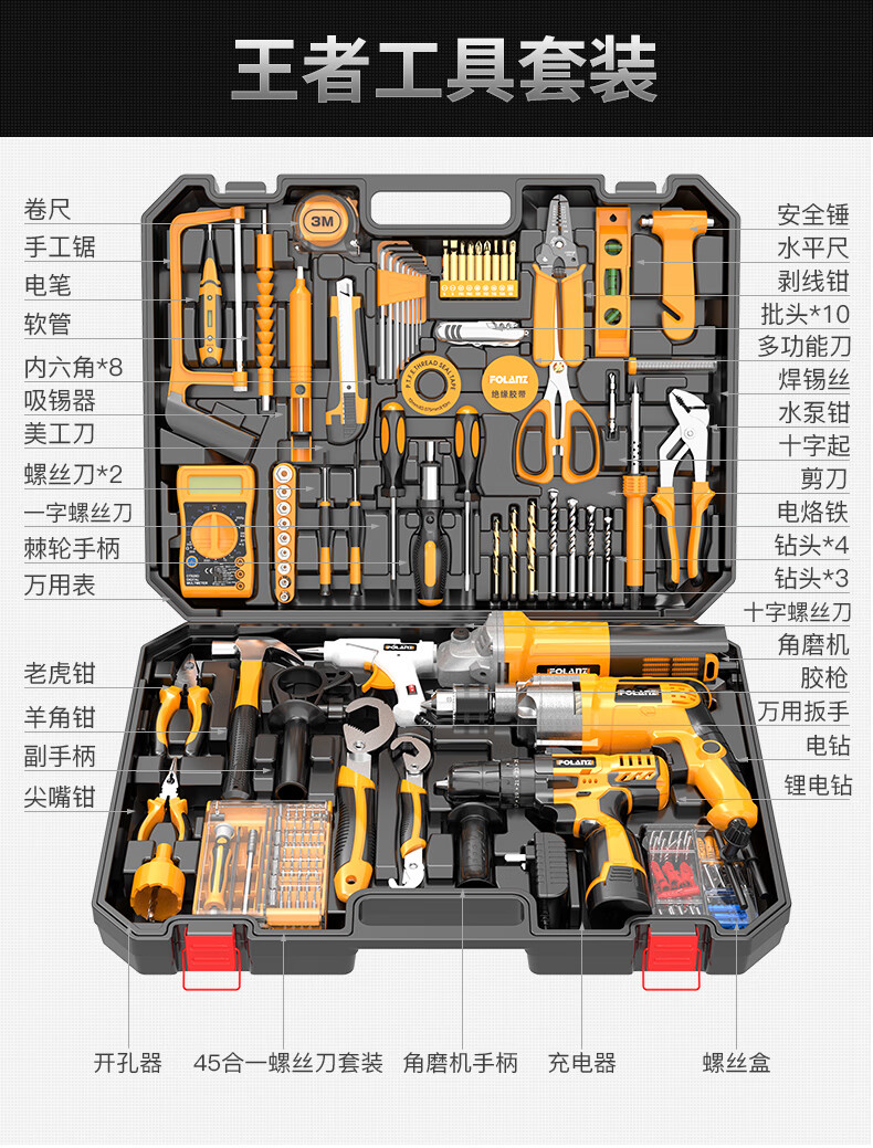 Bosch Germany imported tool box set household multi-function electric drill woodworking electrician hardware daily maintenance combination Big Mac King tool set