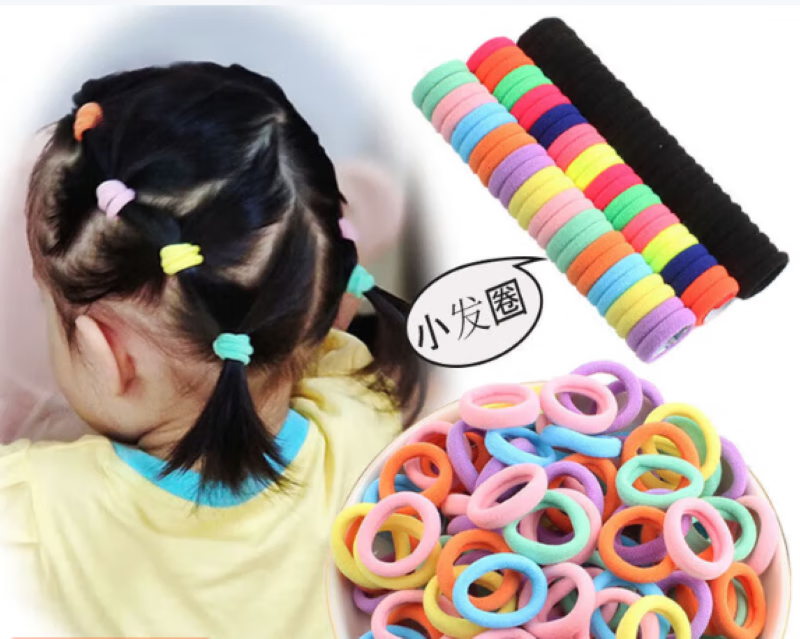 Children's hair rope, children's seamless hair ring, does not hurt hair, colorful hair rope, towel ring, high elasticity, girl's braid, children's small circle, black, 100 pieces