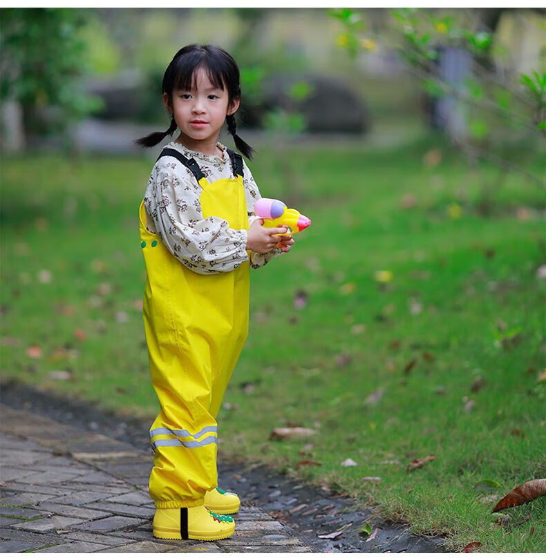 Shantou Lincun Chaodatong waterproof full body children's boys and girls kindergarten set raincoat overalls rain pants one-piece Anji 901 yellow jacket + overalls + rain boots L size suitable for 100-115 height