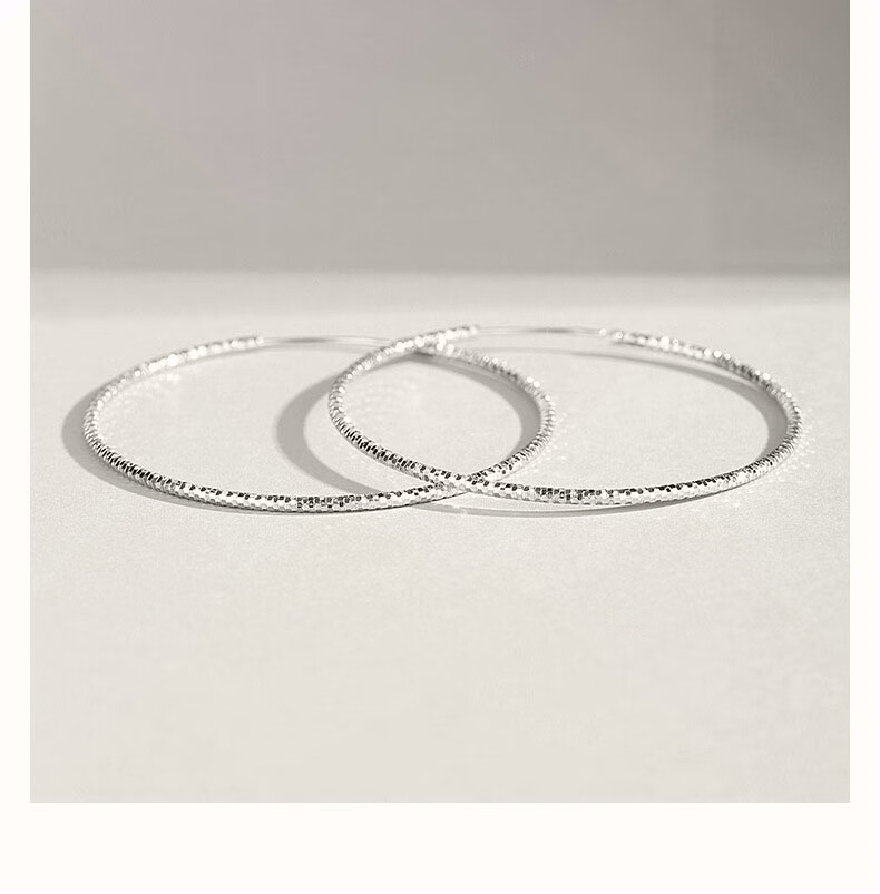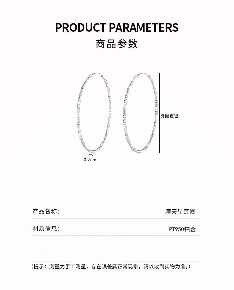 Fat Donglai's same style platinum pt950 earrings for women, large earrings with stars, simple plain circles, fine style, large earrings with stars, large earrings (5cm)