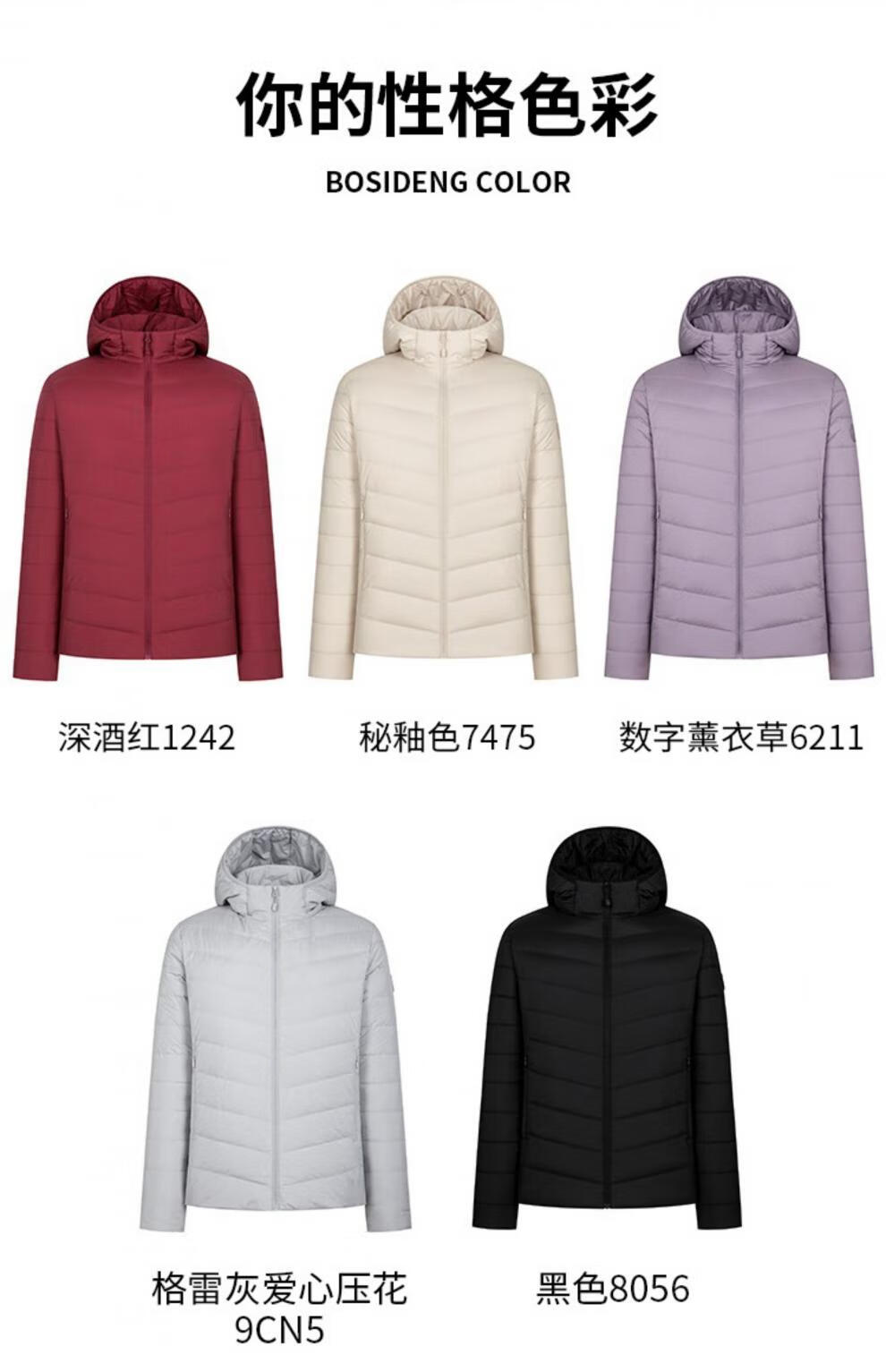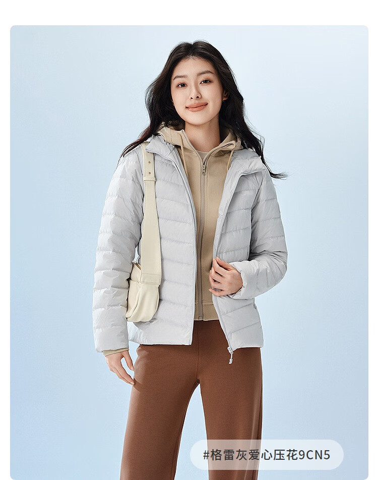 Bosideng (BOSIDENG) light down jacket women's short style new casual simple versatile slim hooded warm jacket digital lavender 6211 XS 155/80A