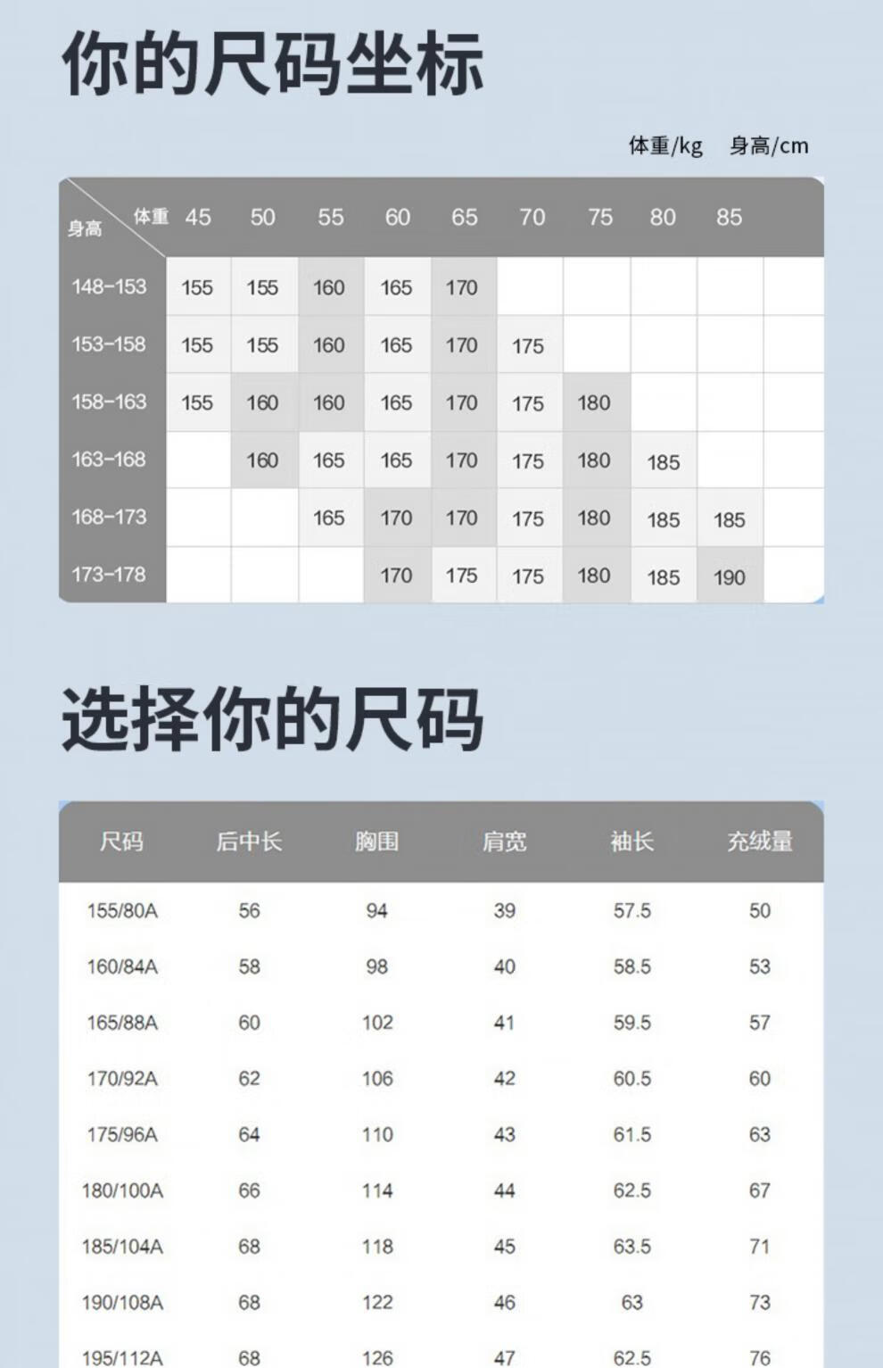 China (cm) 160-165/84-86 165-170 / 88-90 167-172 / 92-96 168-173 / 98-102 170-176 / 106-110