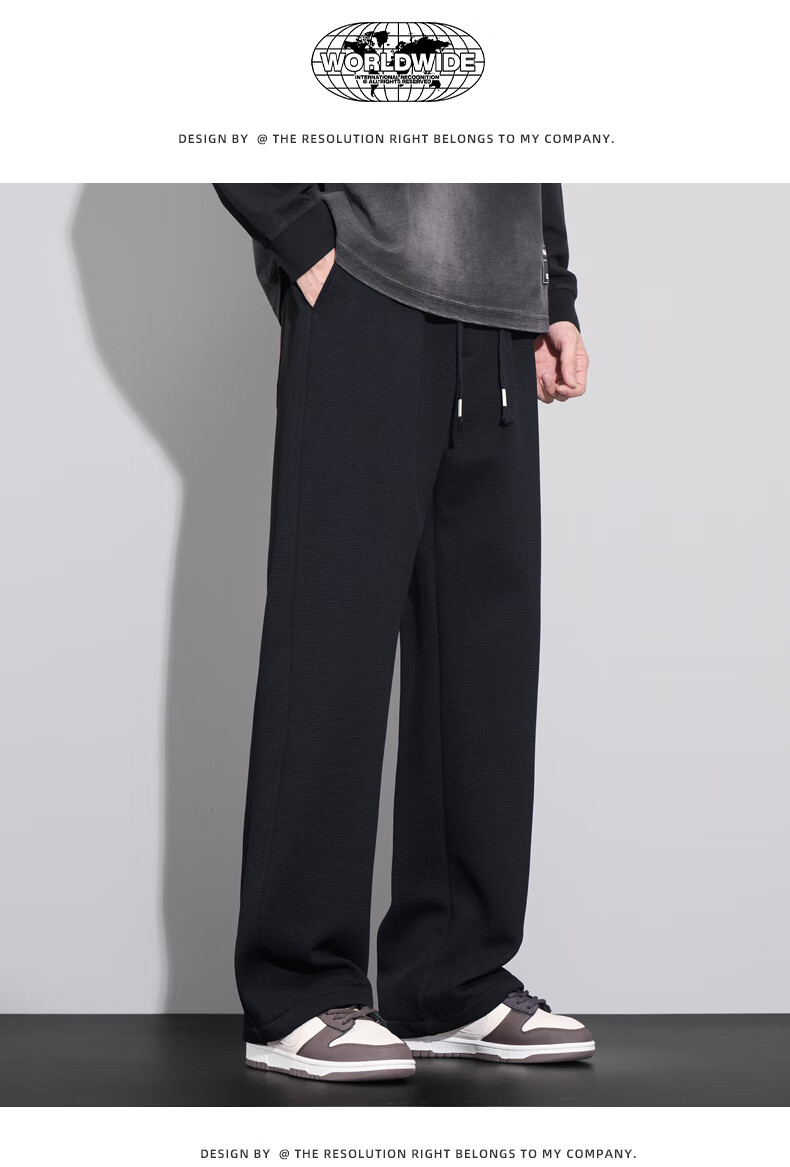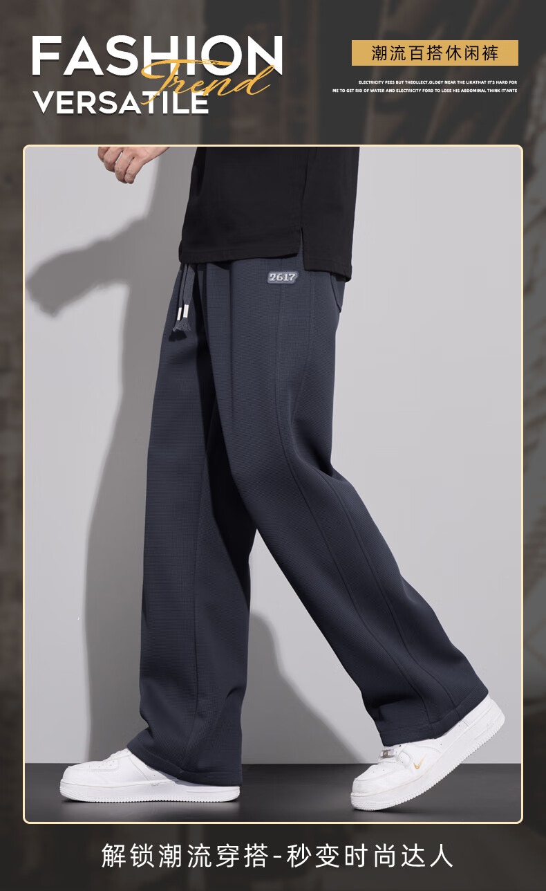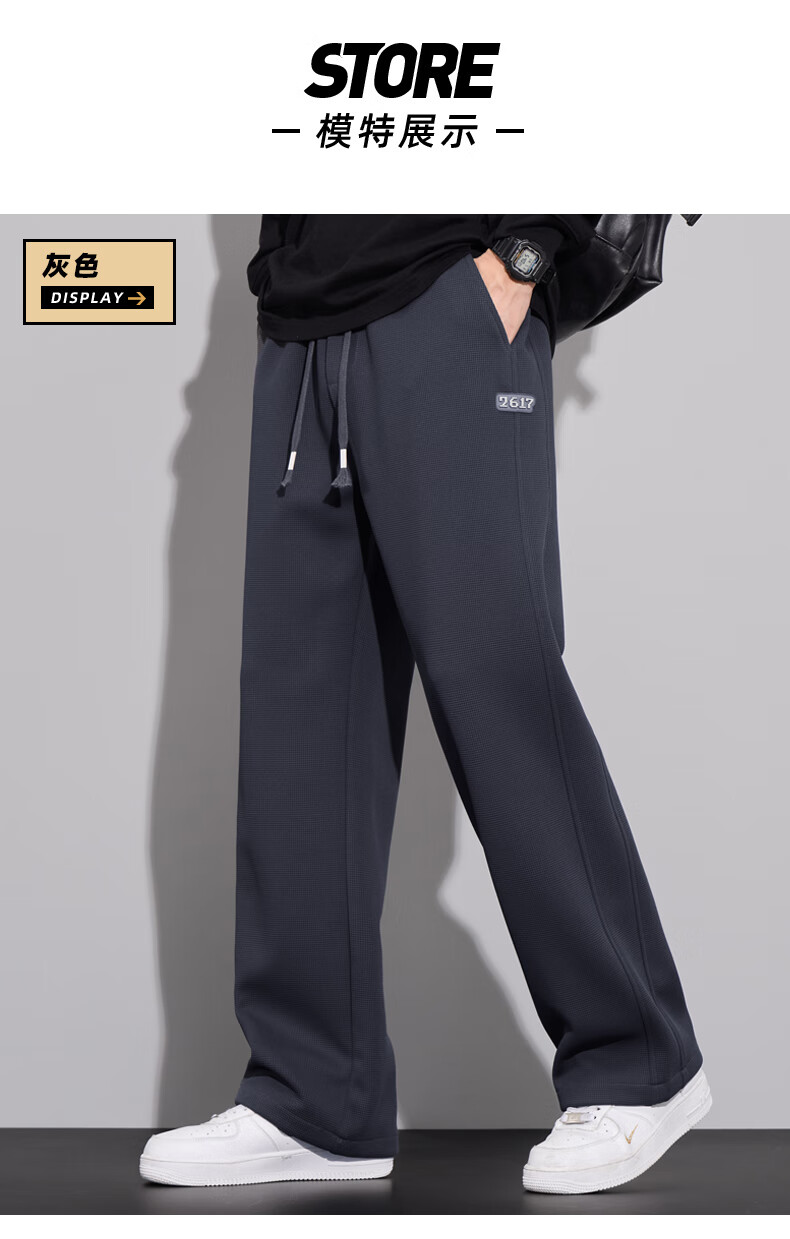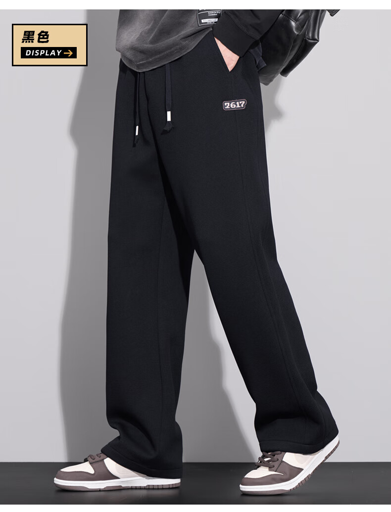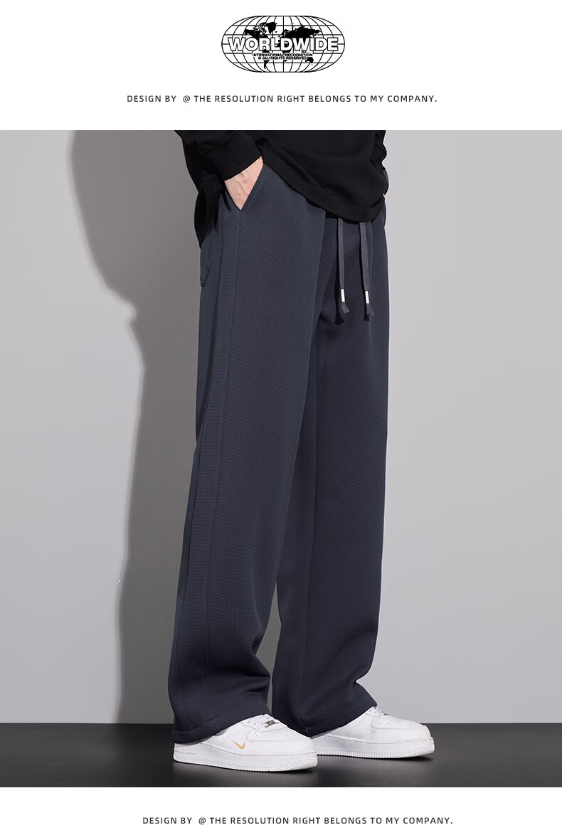 Baleno S&K Draped Straight Pants Men's Casual Pants 2025 Autumn New Loose Straight Student Heavy Sports Trousers Gray Waffle Easy Care XL Size Recommended 125-145 Jin Jin equals 0.5 kg