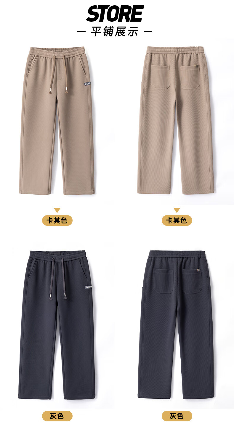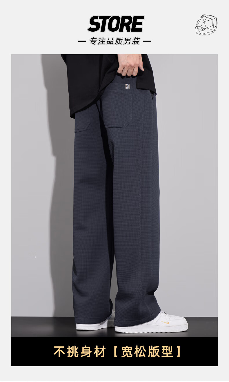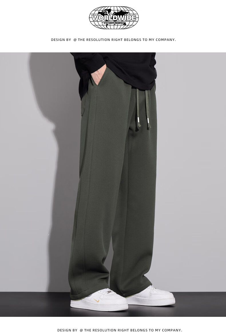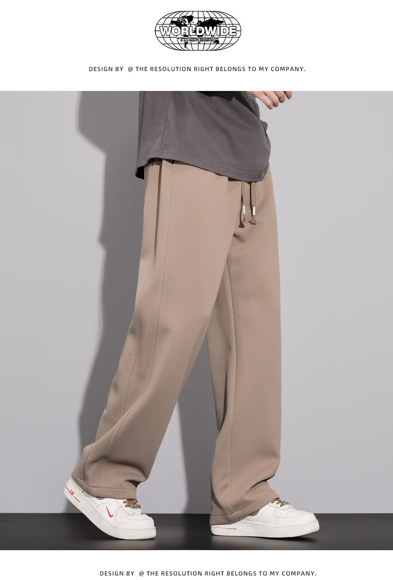 Baleno S&K Draped Straight Pants Men's Casual Pants 2025 Autumn New Loose Straight Student Heavy Sports Trousers Gray Waffle Easy Care XL Size Recommended 125-145 Jin Jin equals 0.5 kg