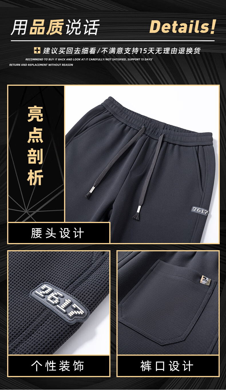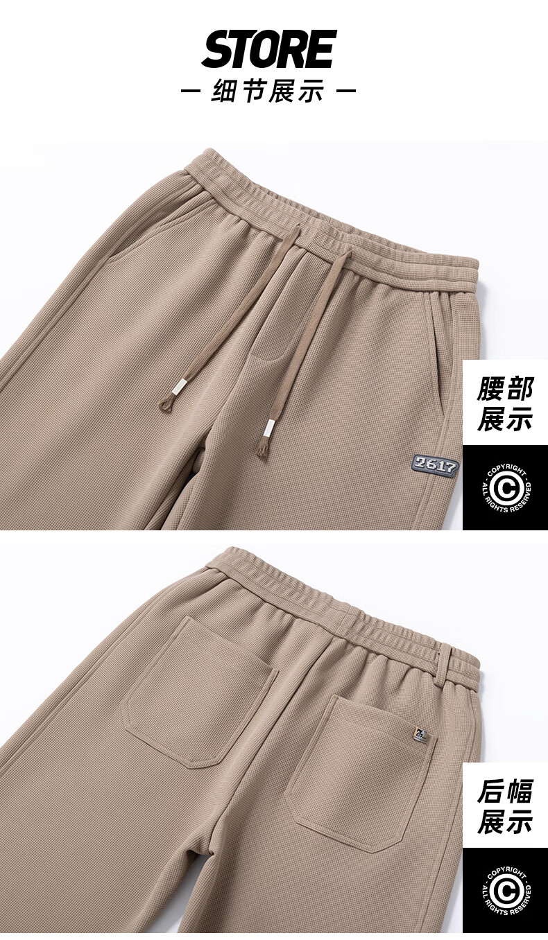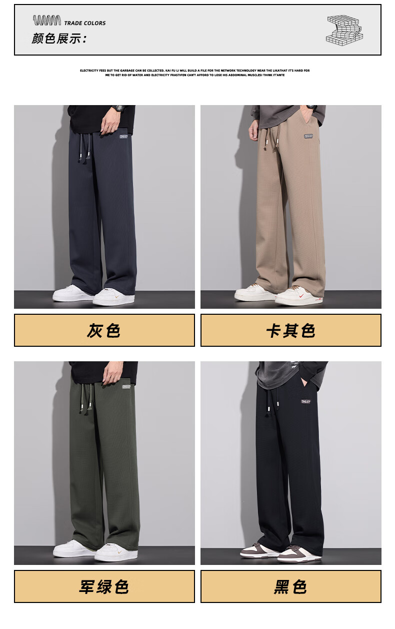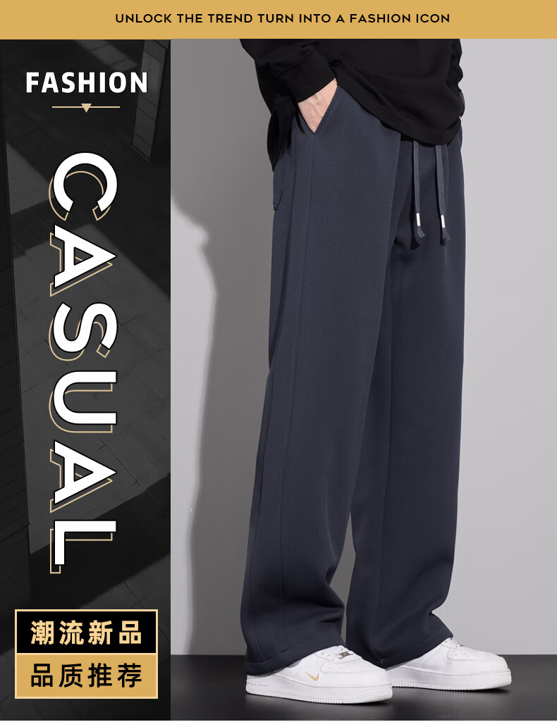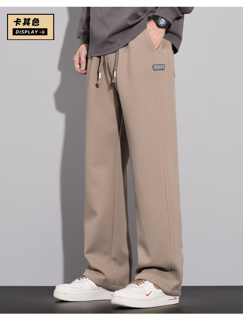 Baleno S&K Draped Straight Pants Men's Casual Pants 2025 Autumn New Loose Straight Student Heavy Sports Trousers Gray Waffle Easy Care XL Size Recommended 125-145 Jin Jin equals 0.5 kg