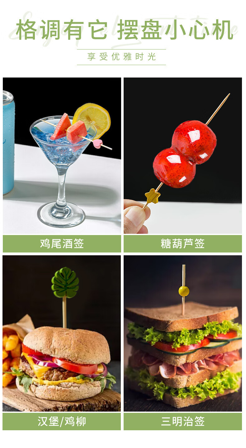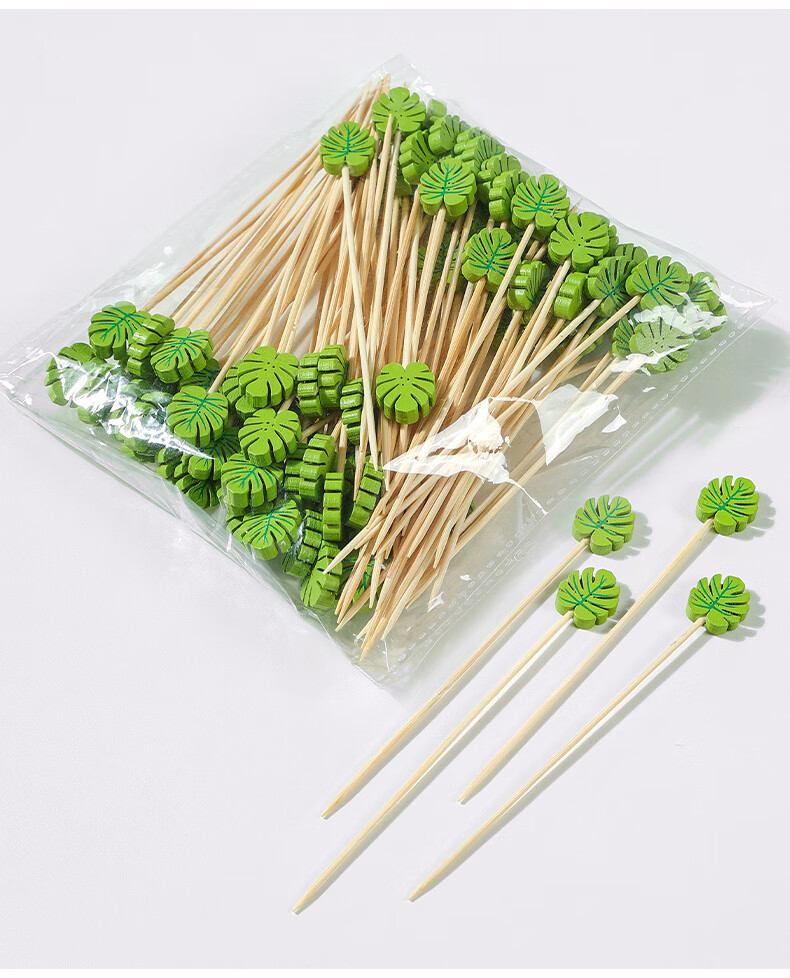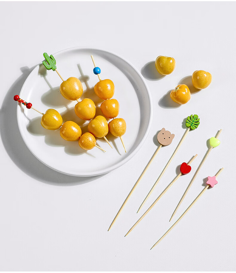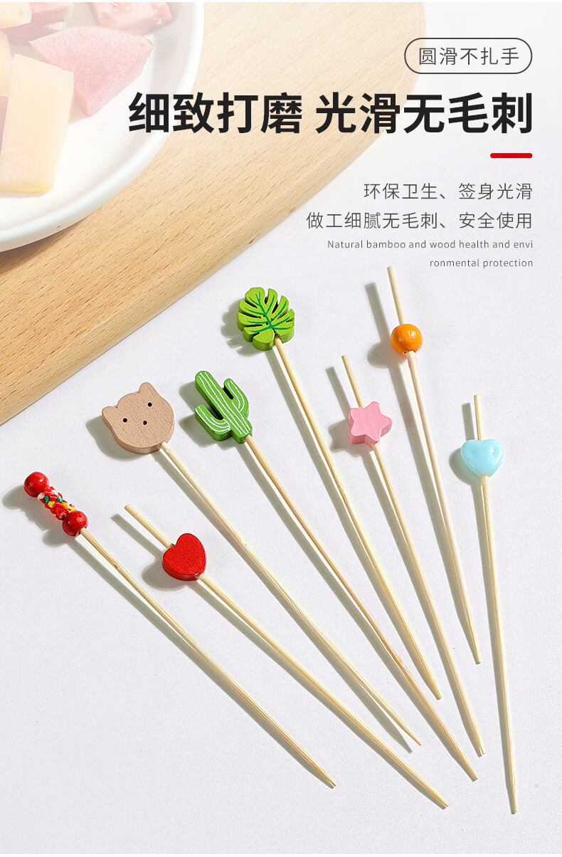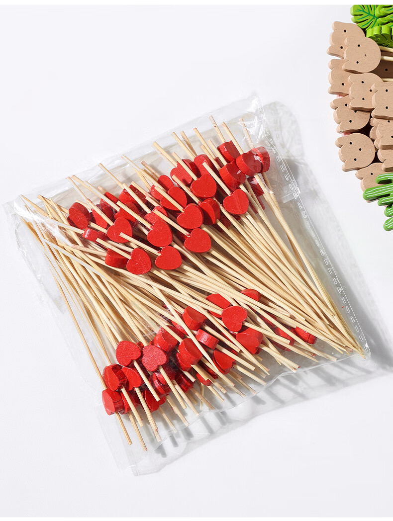 Carole disposable fruit skewers, bamboo skewers, flower skewers, fruit forks, creative art toothpicks, cocktail skewers, burger skewers, fruit inserts, commercial pink snowman (new product 100 pieces)