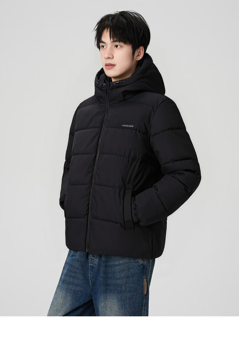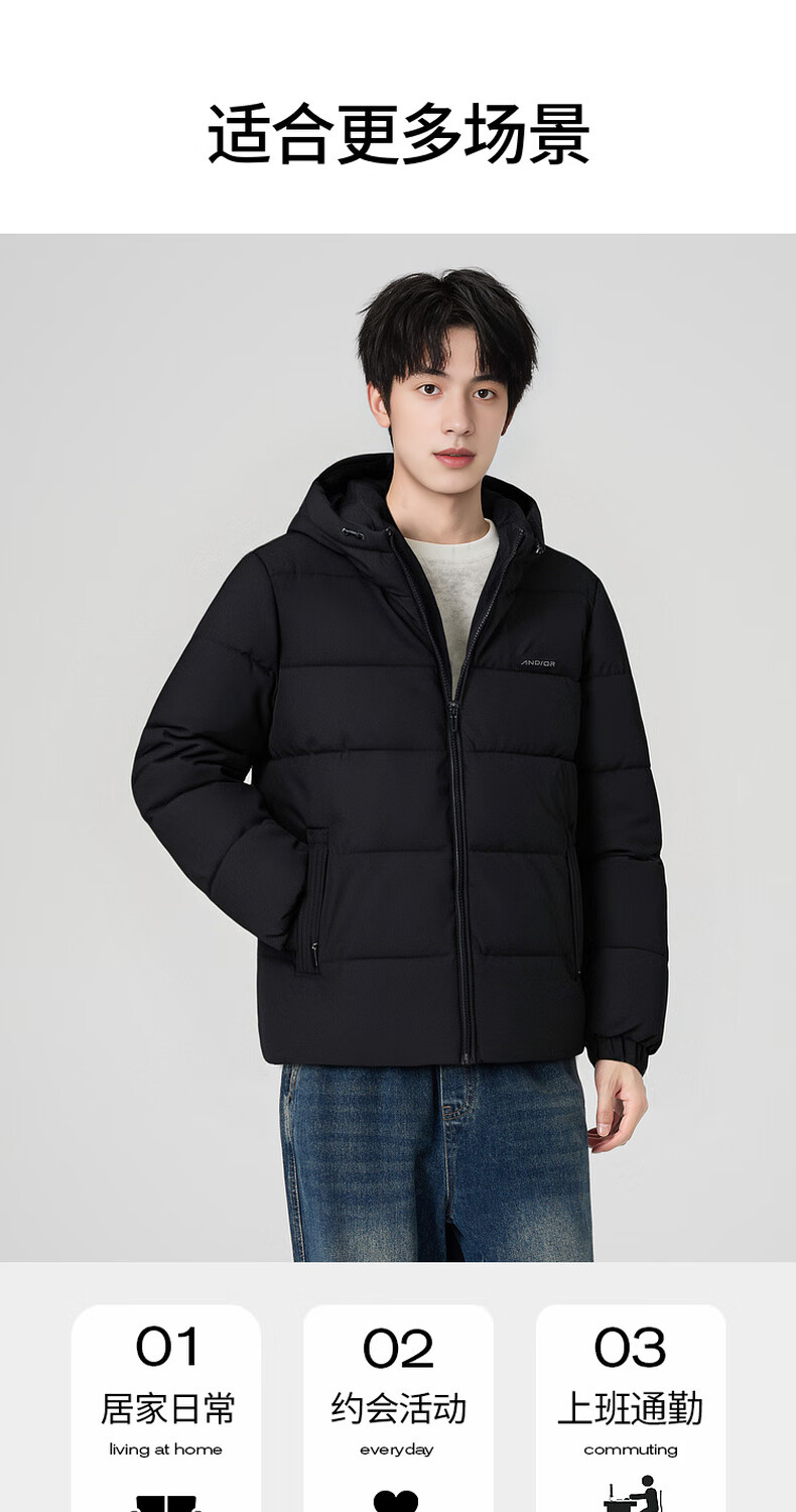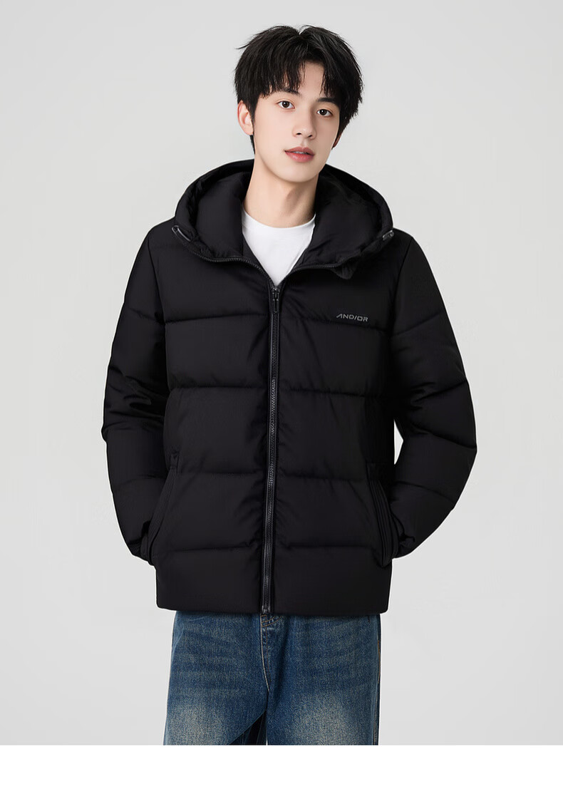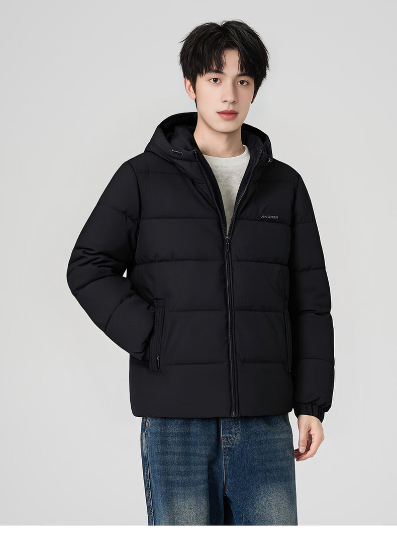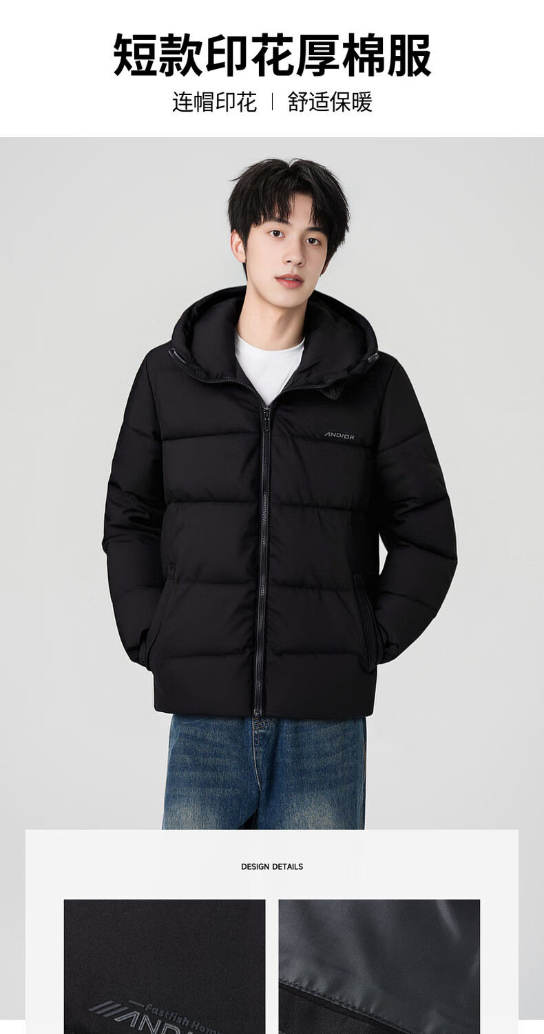 Kuaiyu Hooded Short Cotton Jacket Men's 2025 New Winter Lightweight Jacket Slim Casual Printed Men's Jacket Top Black XL