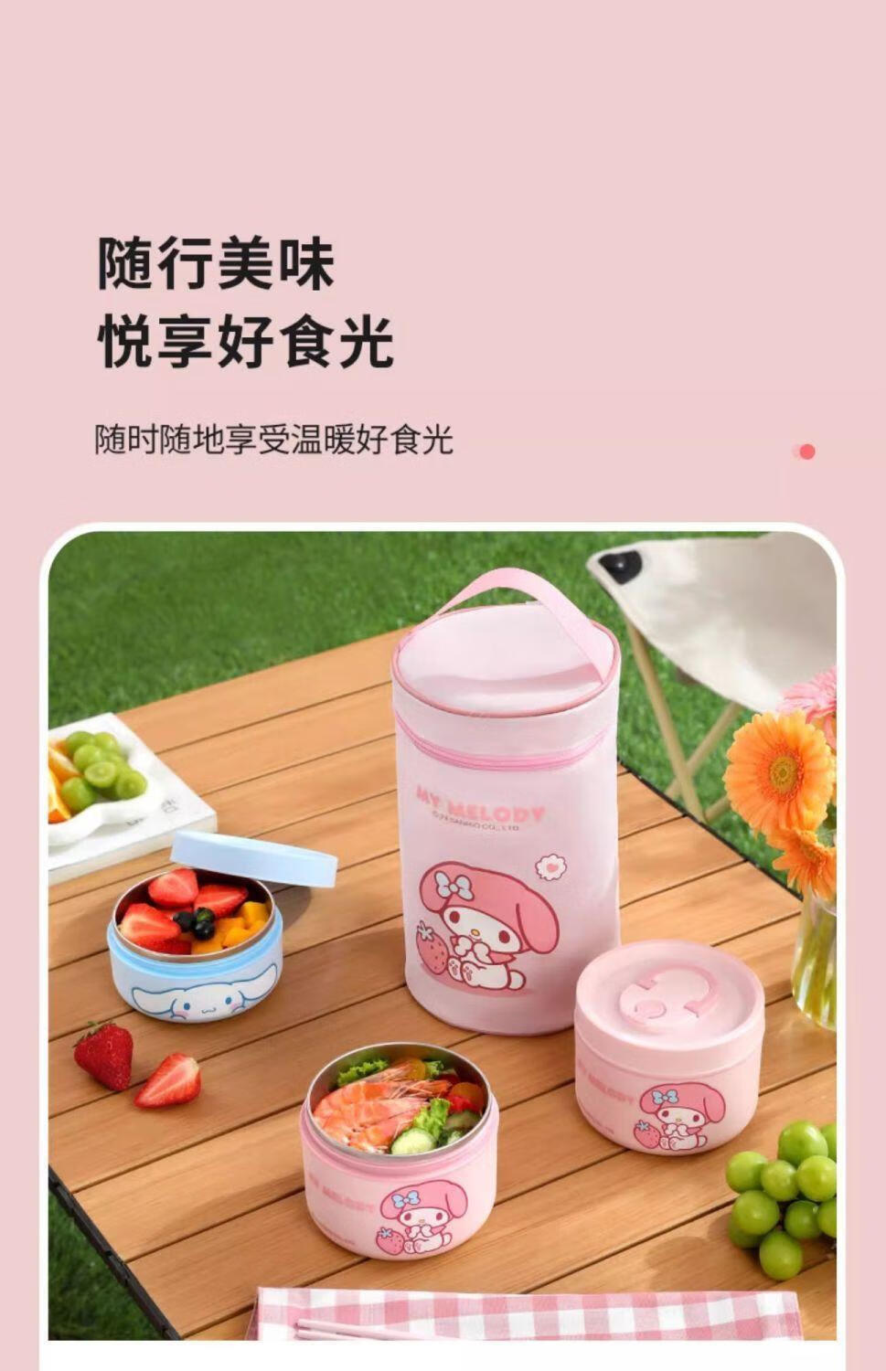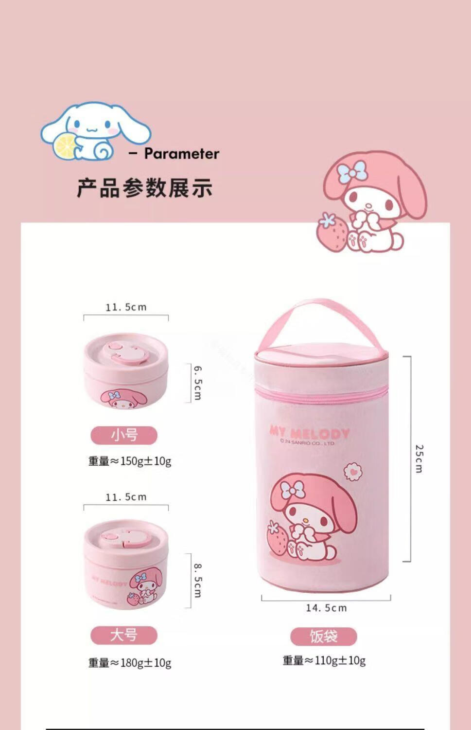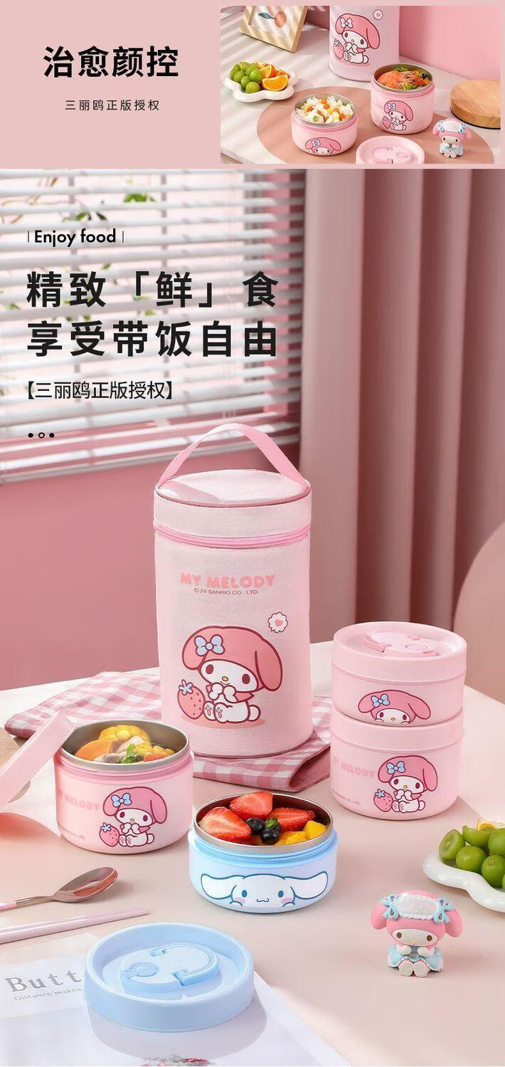 Magic Bean Shenghuo Sanrio Multi-layer Insulated Lunch Box Stainless Steel Office Workers Bring Rice Microwaveable Student Lunch Box Bucket Soup Bowl Big-Eared Dog Microwave Type Large Lunch Box*2+Medium Lunch Box+Insulated Lunch Bag