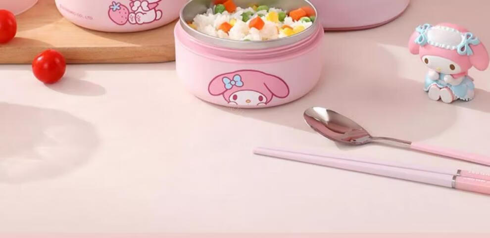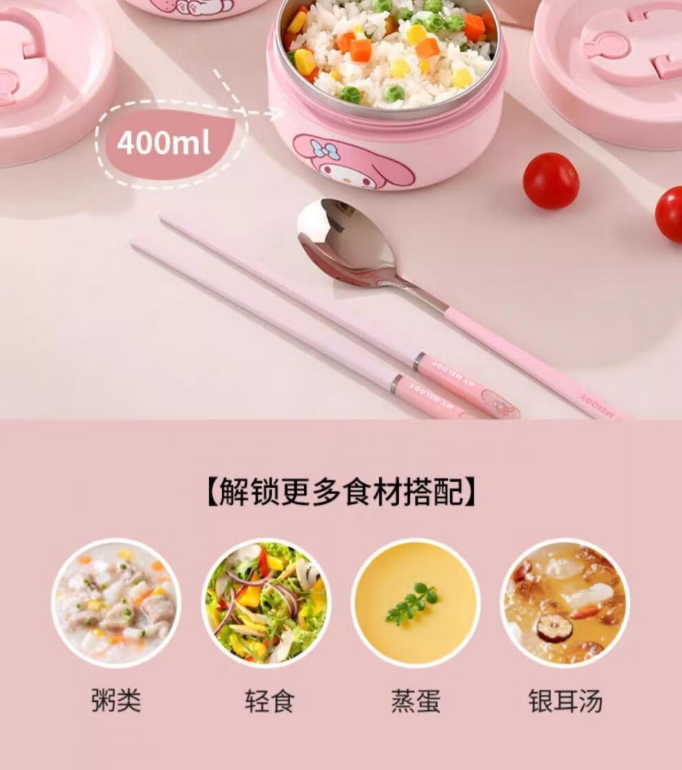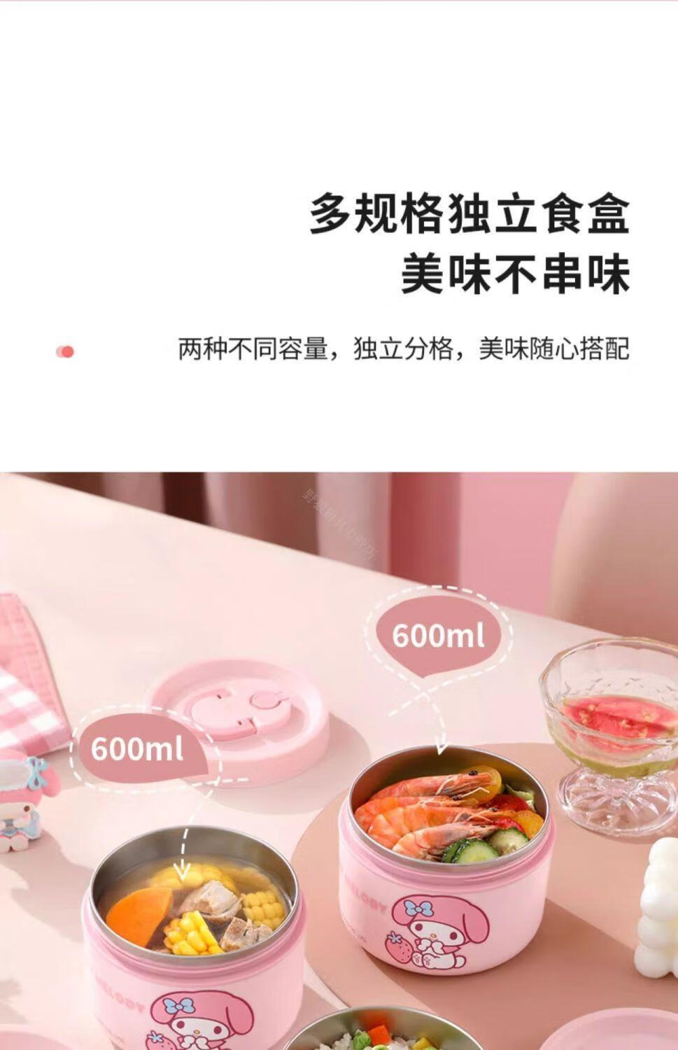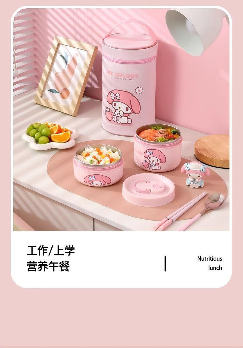 Magic Bean Shenghuo Sanrio Multi-layer Insulated Lunch Box Stainless Steel Office Workers Bring Rice Microwaveable Student Lunch Box Bucket Soup Bowl Big-Eared Dog Microwave Type Large Lunch Box*2+Medium Lunch Box+Insulated Lunch Bag
