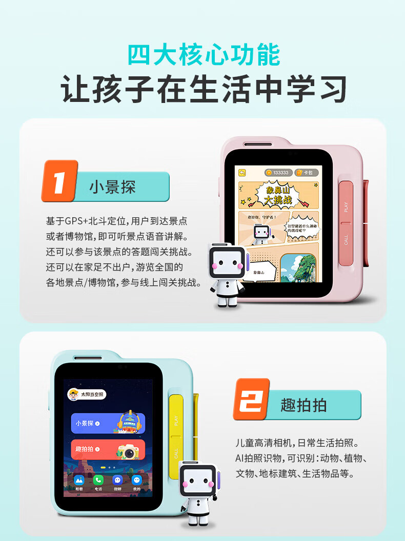 Mozhi Planet GPS Positioning Children's Travel Study Machine Electronic Tour Guide Walkman Escort AI Conversation Companion Story Machine Film Learning Machine Q&A Machine Travel Learning Machine Children's Gift High-End Edition Bibolan 128G
