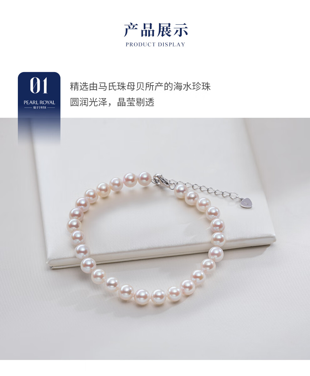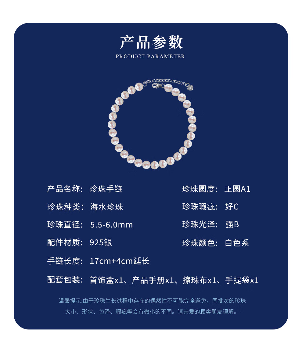 Nanzhu Palace Luxurious Tiancheng Seawater Pearl Bracelet Perfect Round Bright Light Birthday Gift Chinese Valentine's Day Gift for Girlfriend 5.5-6.0mm 17cm+4cm Extended