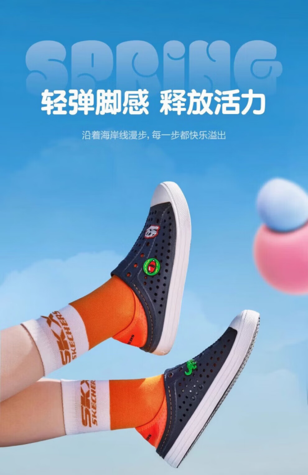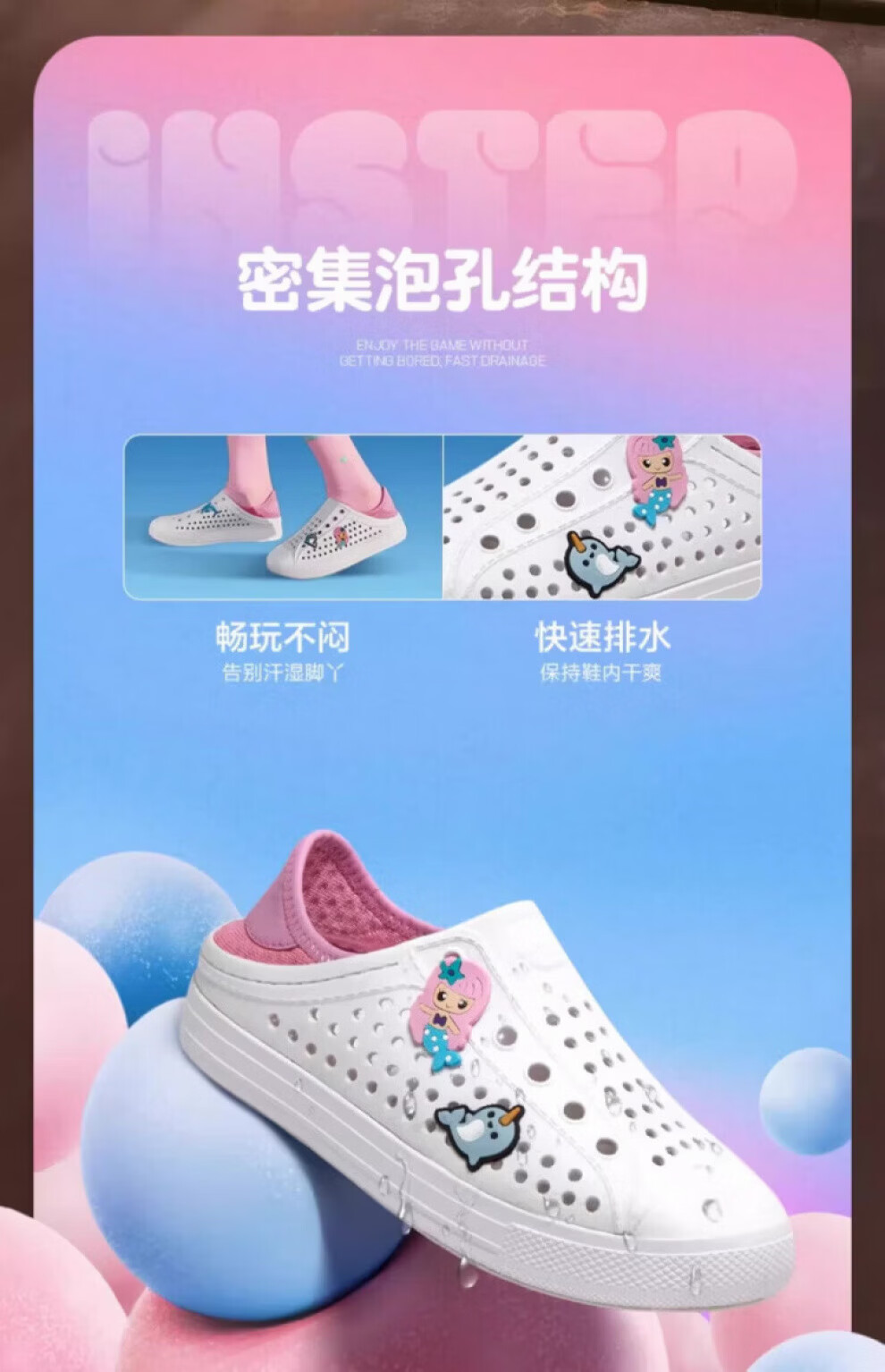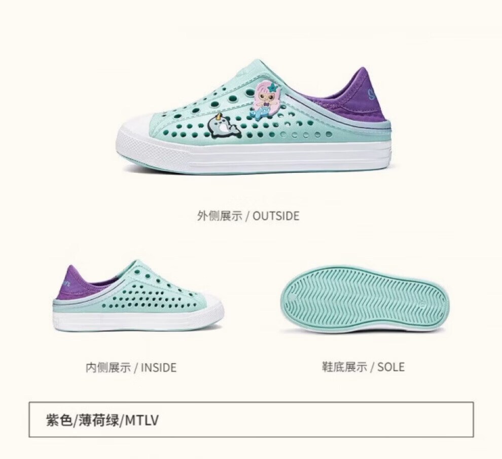 Skechers children's shoes slip-on toe sandals summer men's and women's hole shoes medium and large children's beach shoes 308310L girls/purple/mint green/MTLV 30