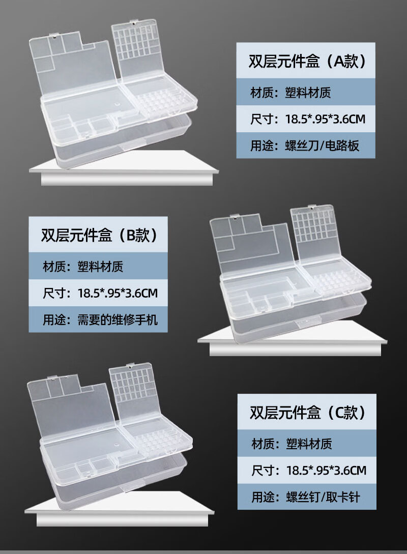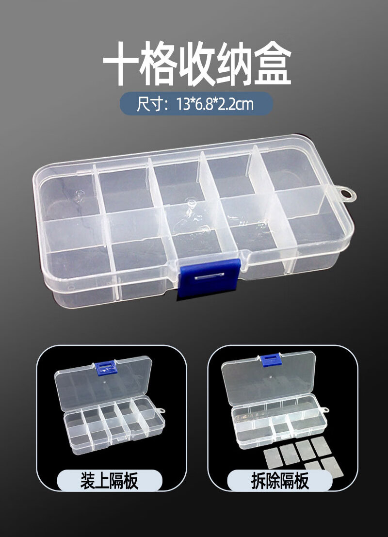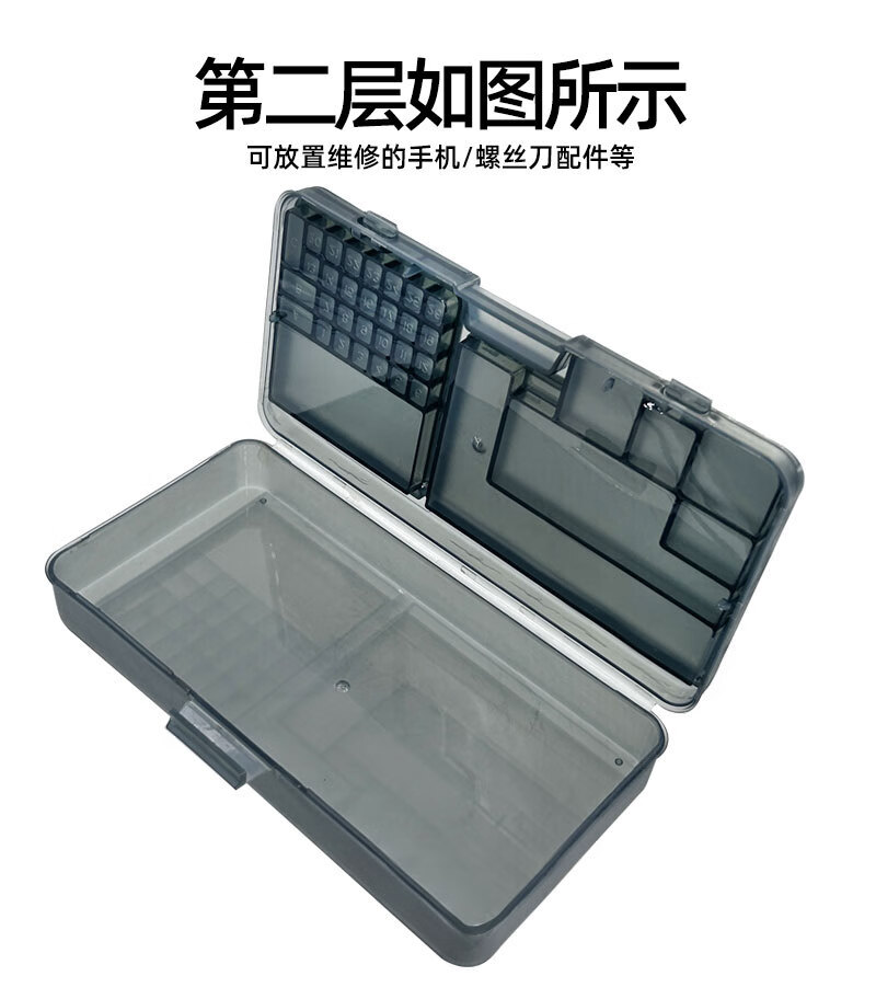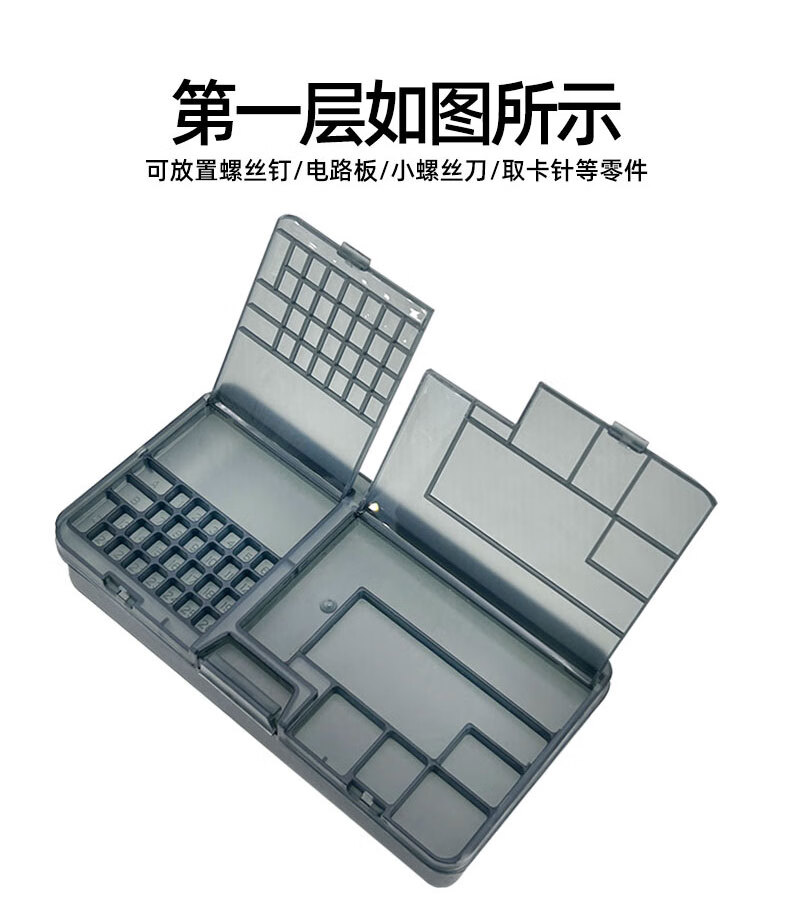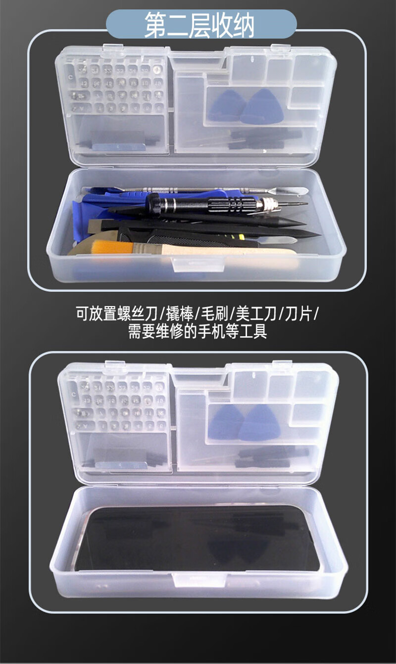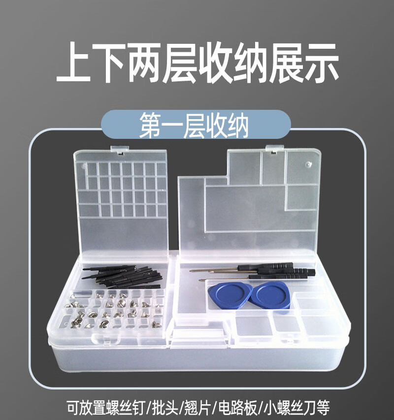 Mobile phone disassembly and repair tool box, motherboard screwdriver, IC component accessories, electronic transparent and odorless storage box, ten-grid storage box (grid can be adjusted)