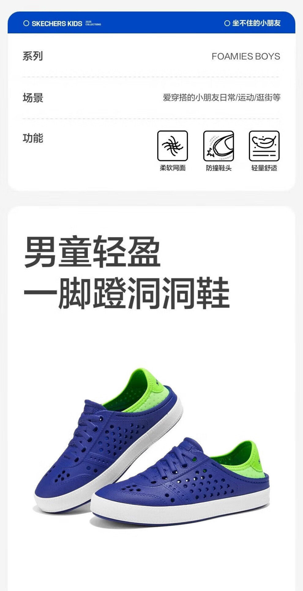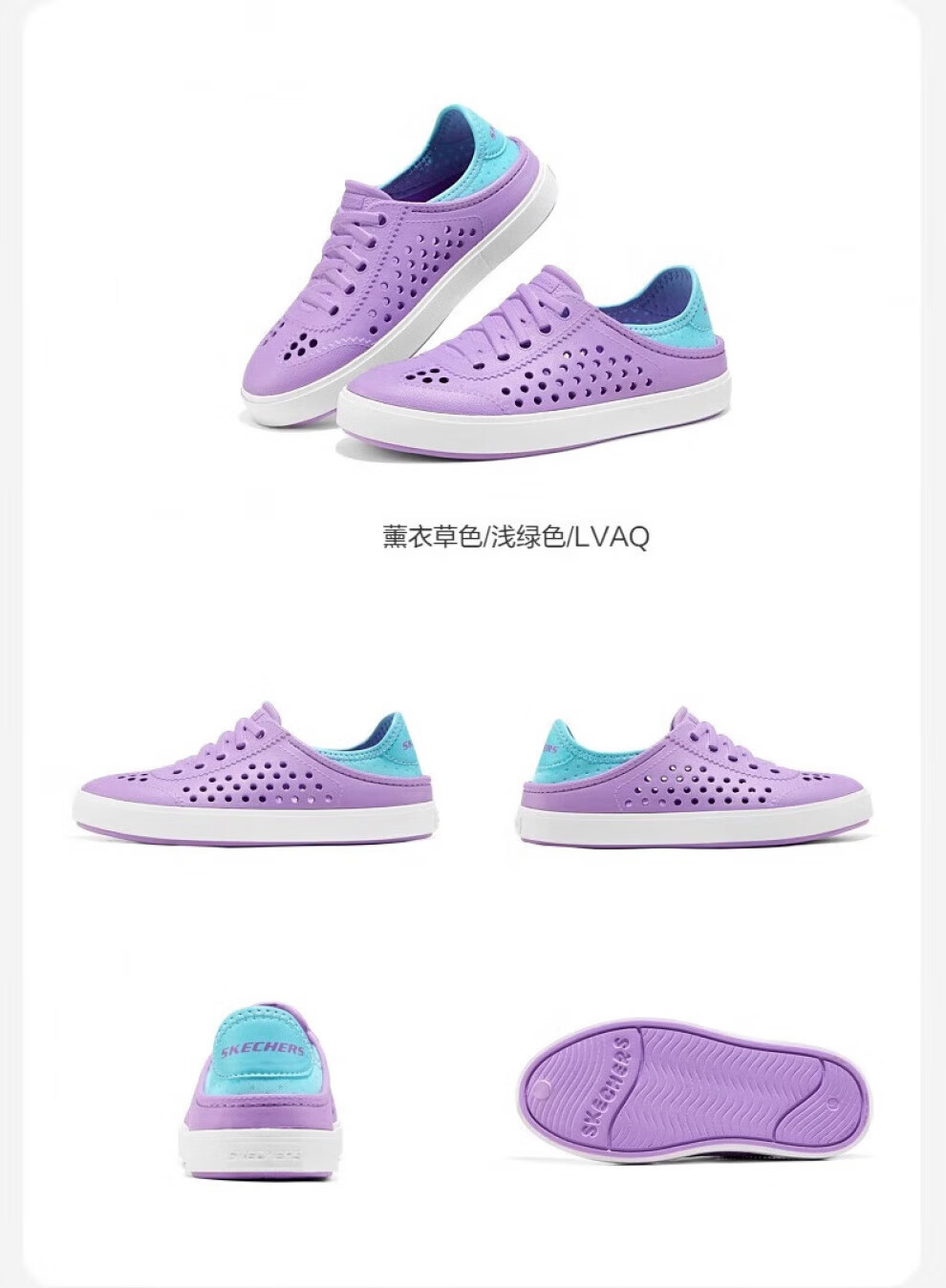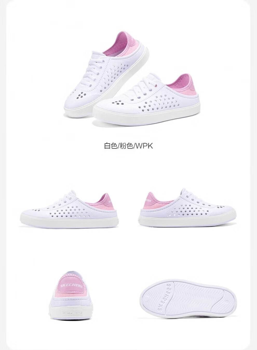 Skechers Children's Summer Croc Shoes Light Heel Comfortable River Tracing Shoes Girls Comfortable 308201L Black/White/BKW 35