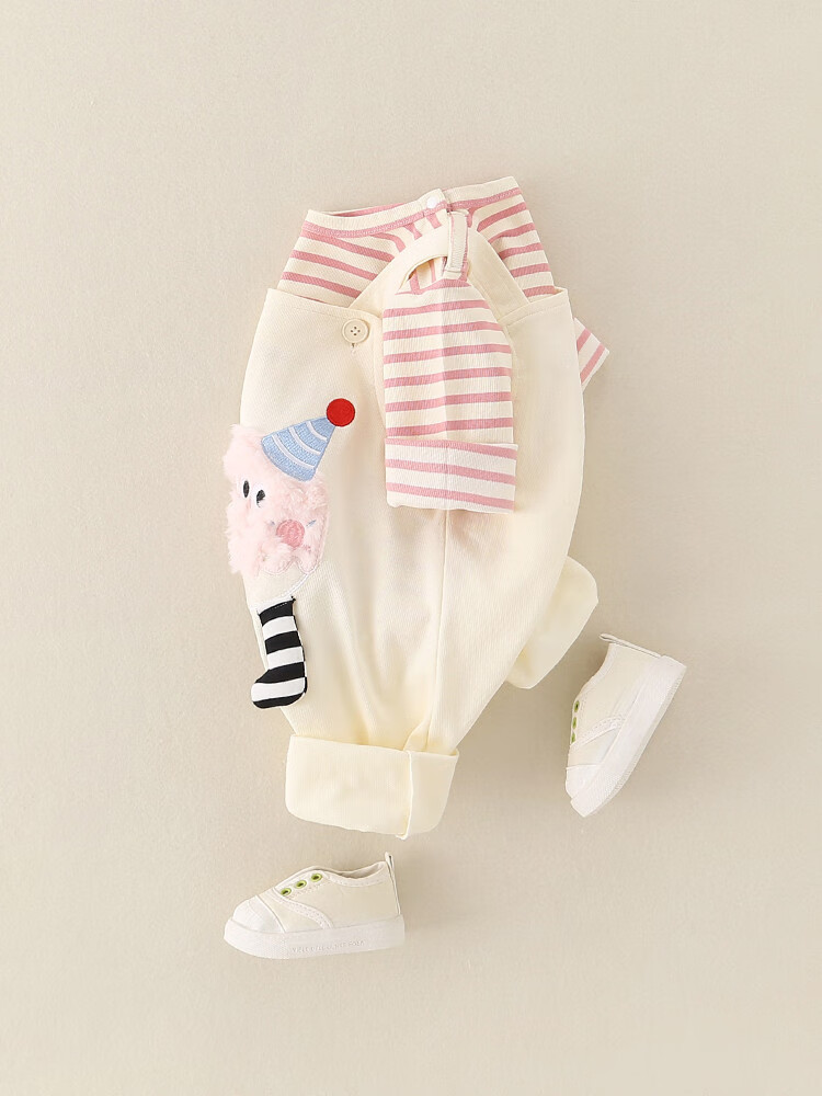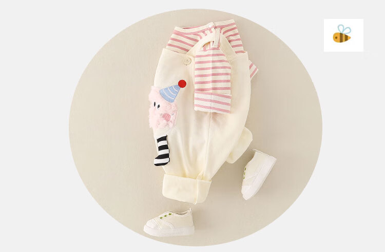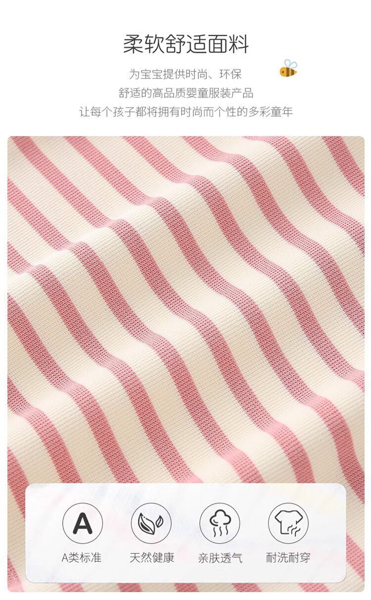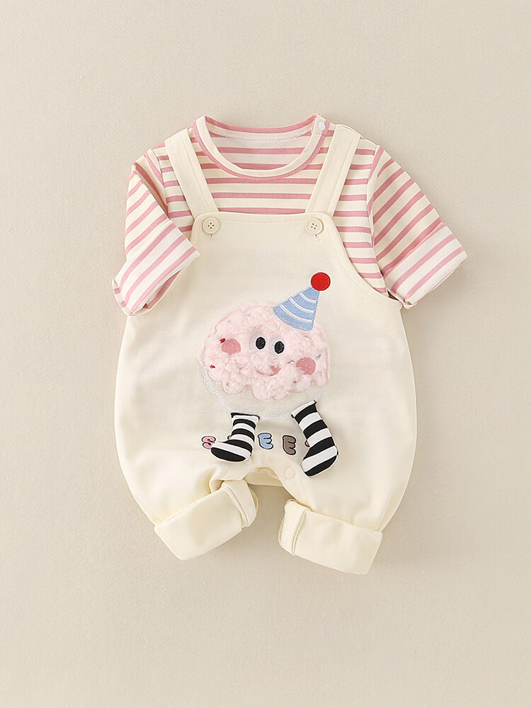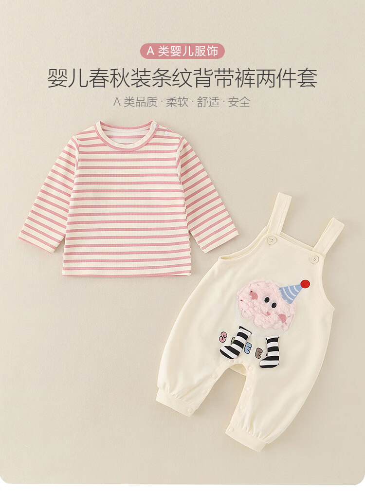G.DUCKKIDS Little Yellow Duck Girls Suit Autumn 25 Baby Single Layer Striped Long Sleeve Overalls Infant and Toddler Split Two-piece Set Pink 73cm