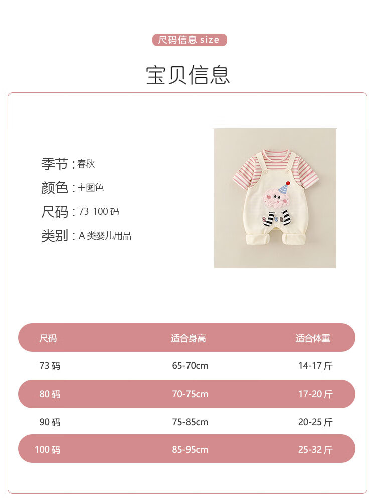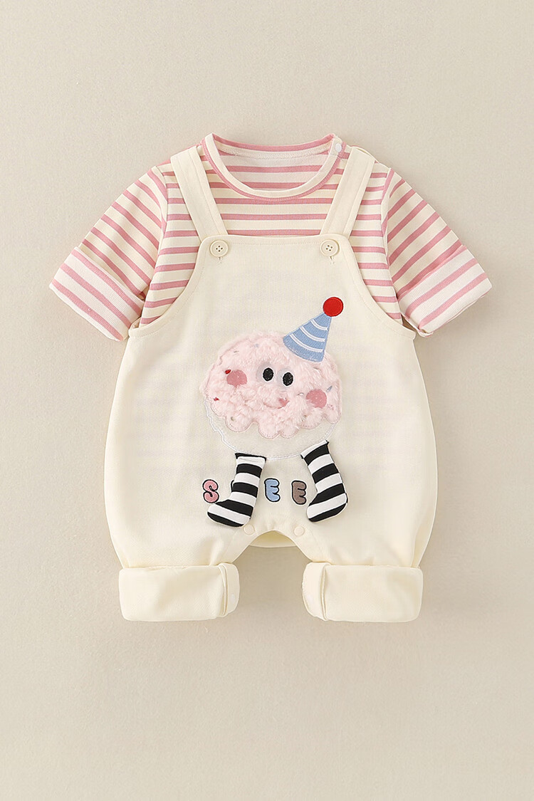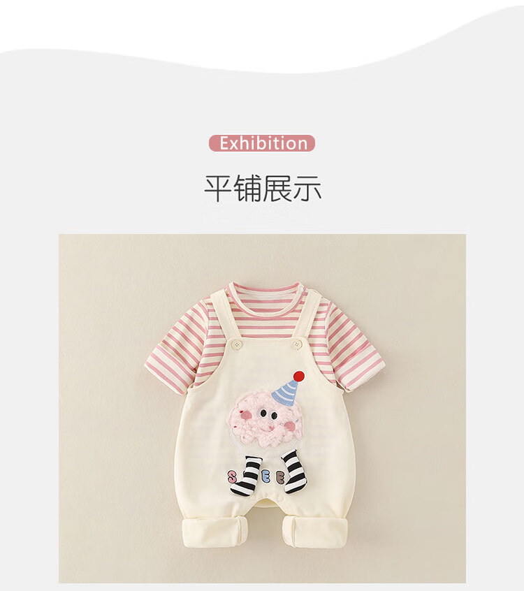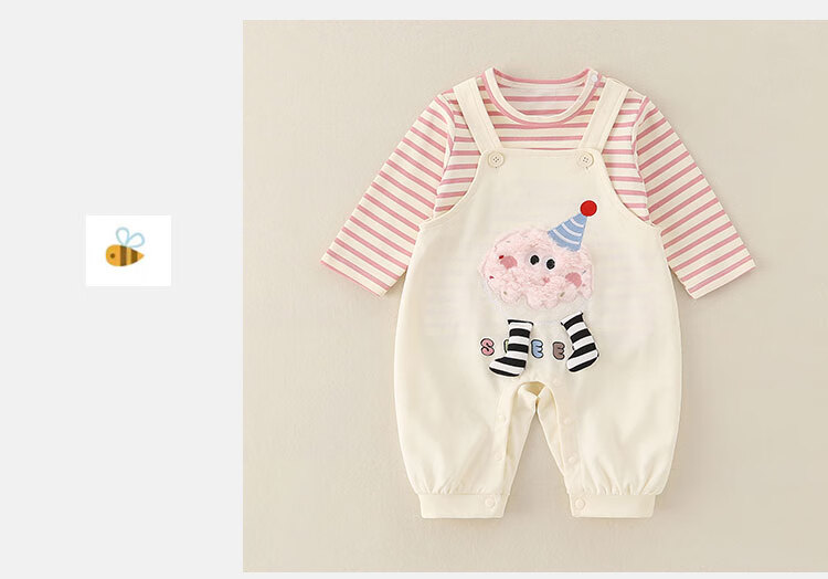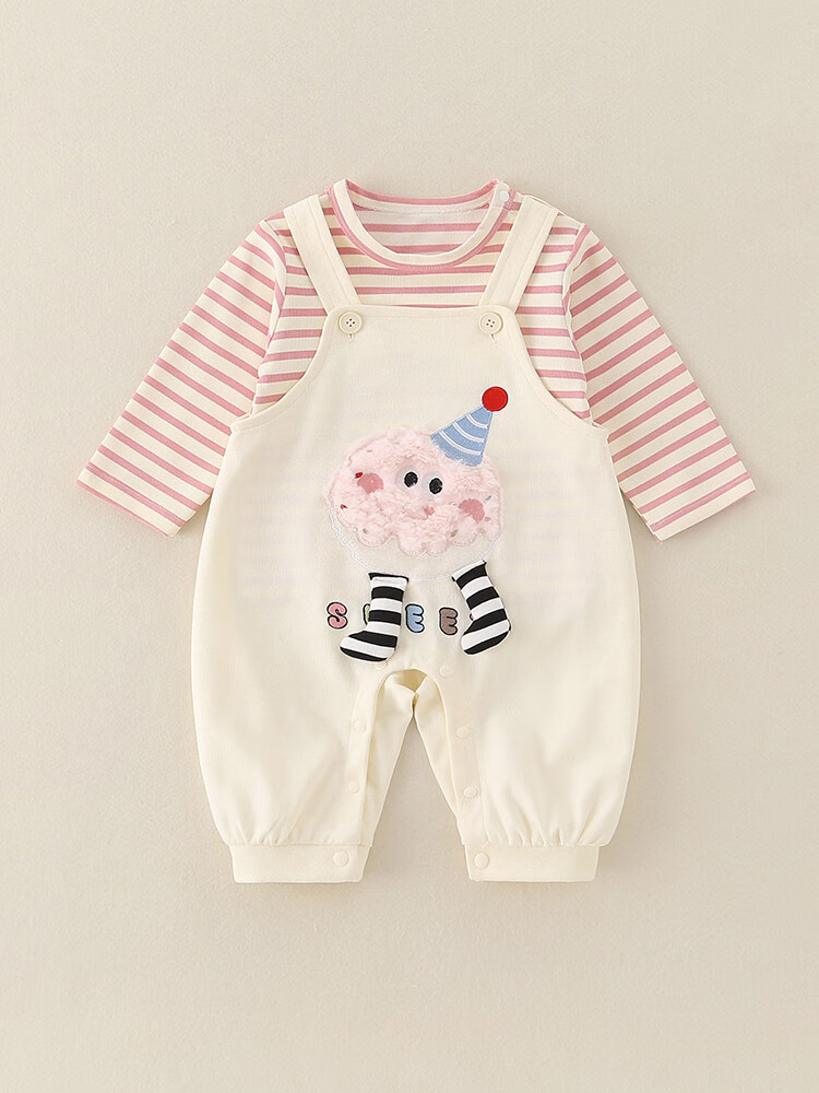 G.DUCKKIDS Little Yellow Duck Girls Suit Autumn 25 Baby Single Layer Striped Long Sleeve Overalls Infant and Toddler Split Two-piece Set Pink 73cm
