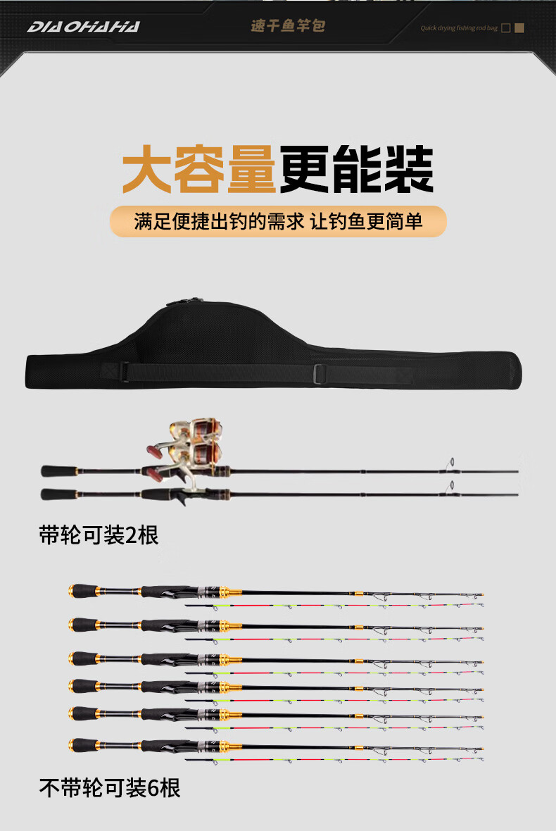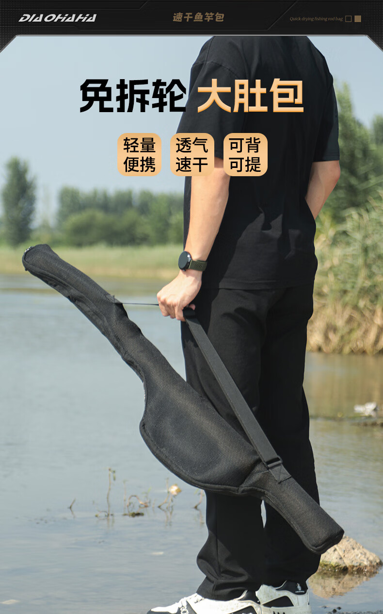 New fishing rod bag, big belly fishing rod storage bag, outdoor fishing gear equipment, spinning wheel, fishing rod bag, lure bag, breathable and quick-drying 1.3m lure rod bag