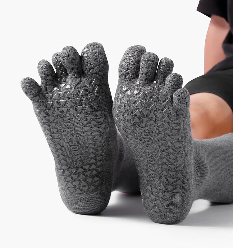 Yoga socks non-slip men's five-finger Pilates fitness skipping rope mid-tube adult indoor floor men's style - black + gray 2 pairs