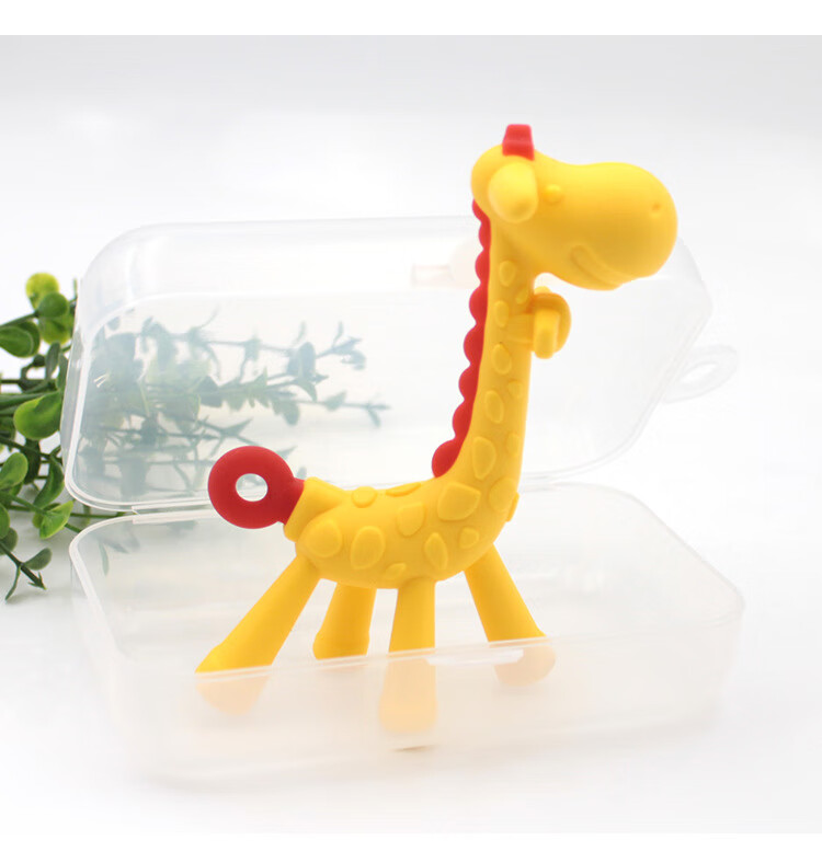 Deer Teether Silicone Giraffe Teether with Storage Box Baby Teething Stick Teether Toy Nude Dress-Pink Deer