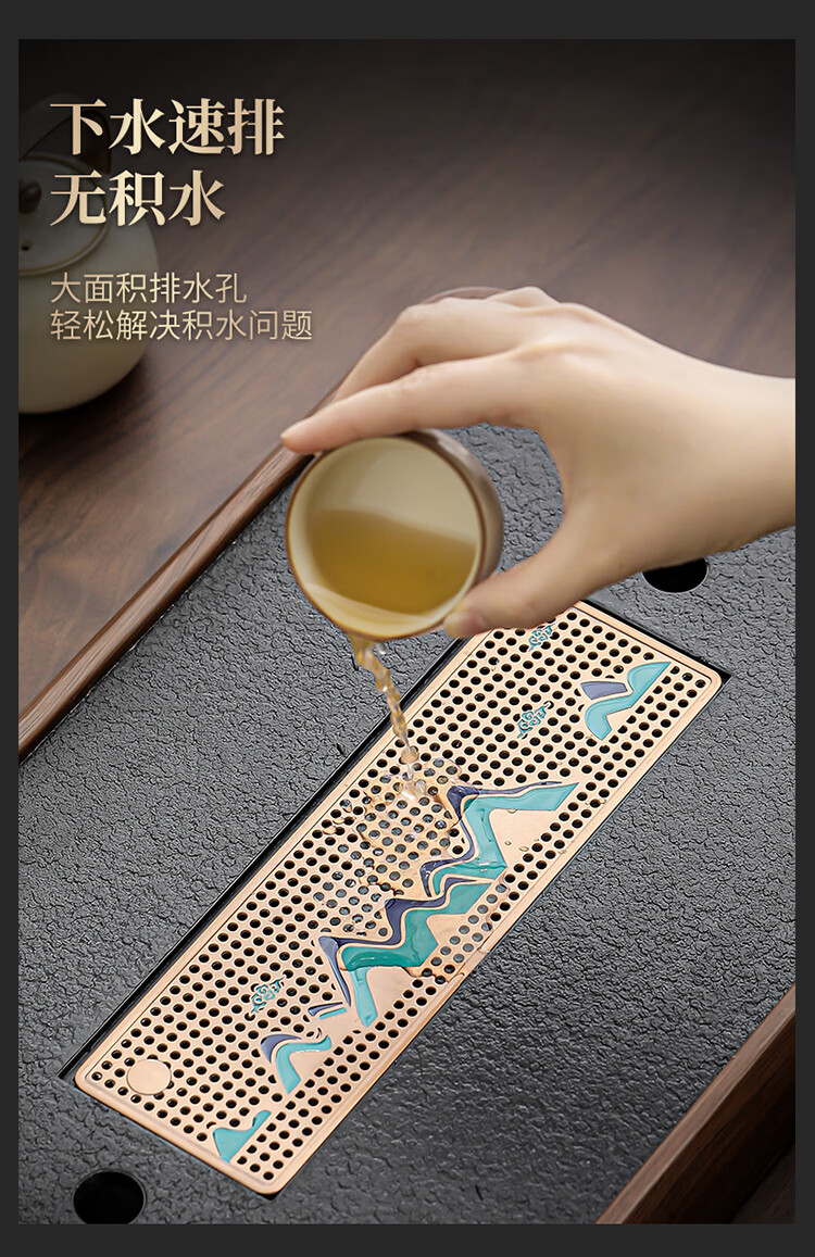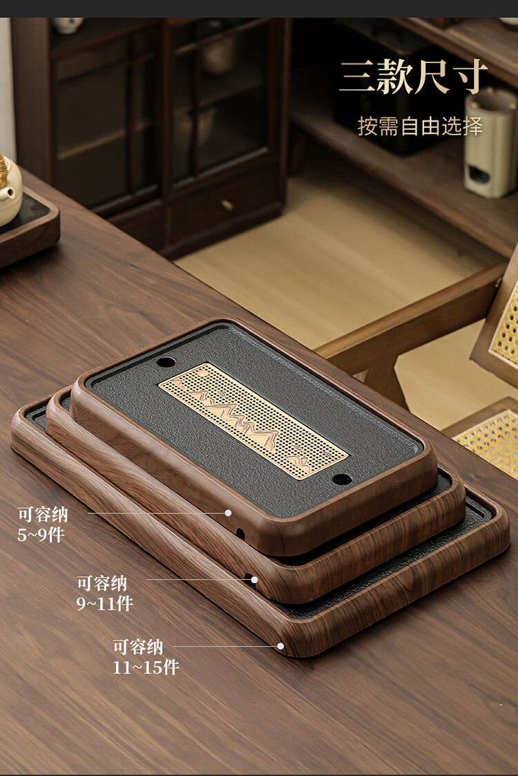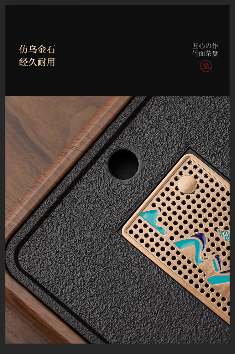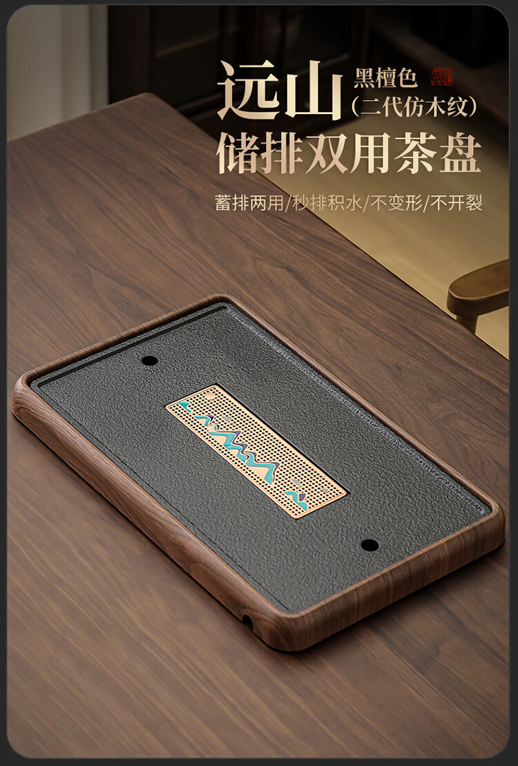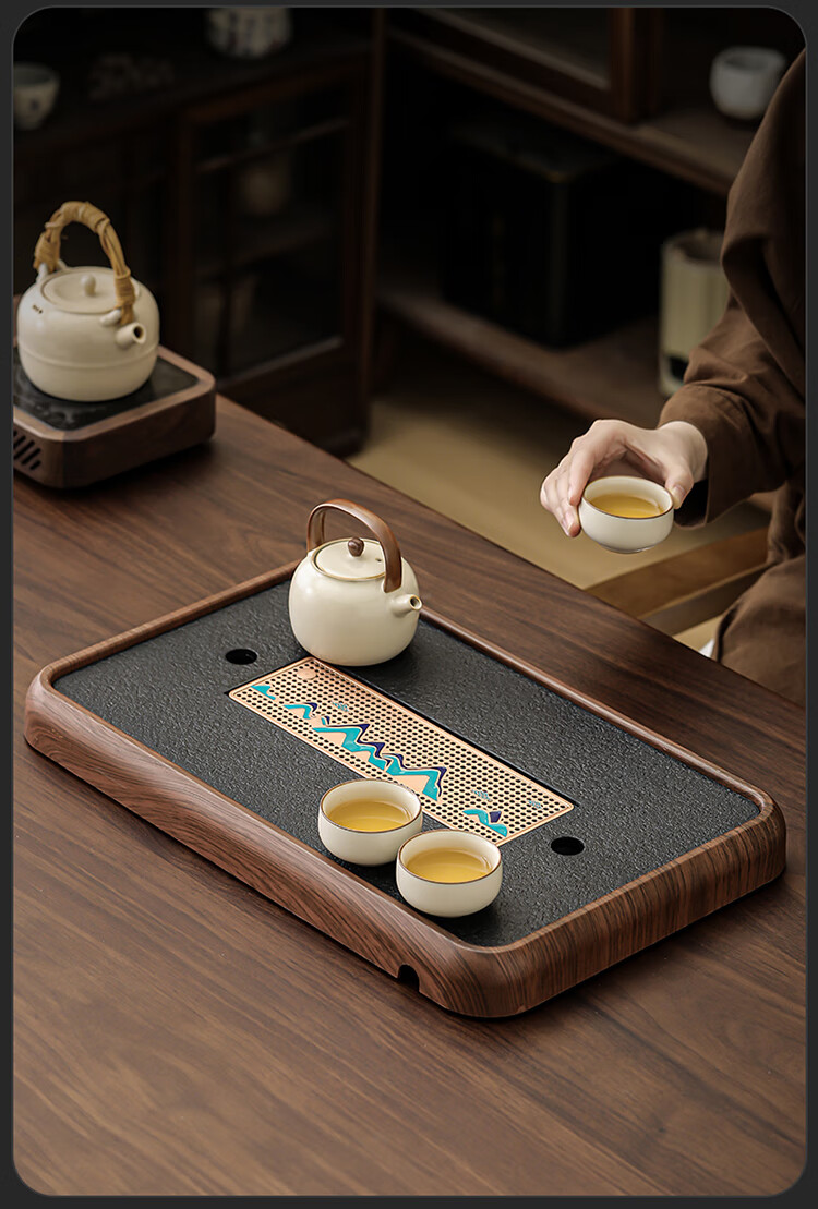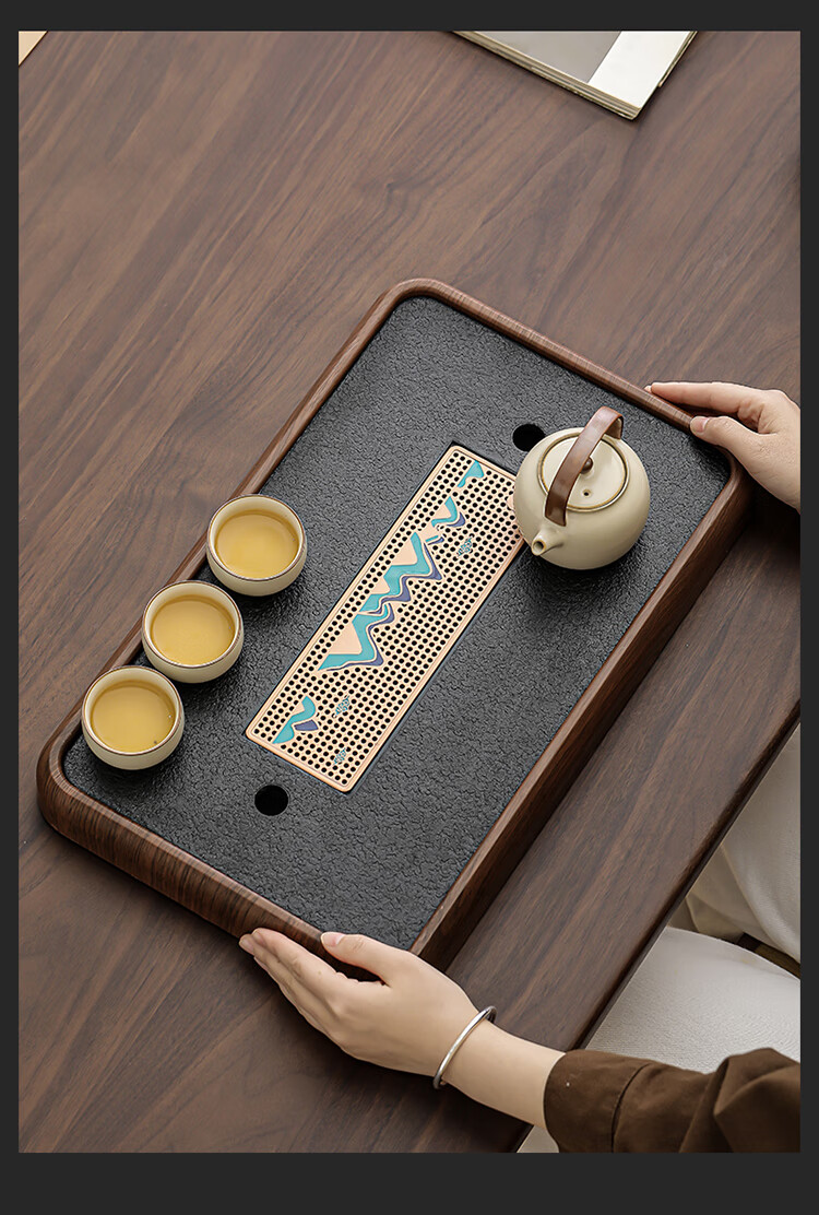 Black gold stone tea tray for home living room rectangular high-end kung fu tray small dry brewing tea table water storage type wood grain Yuanshan tea tray-39*26*5cm small size
