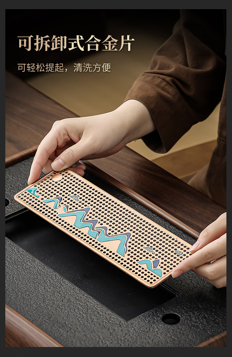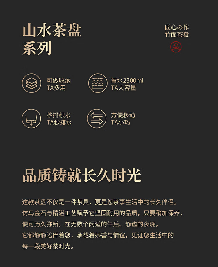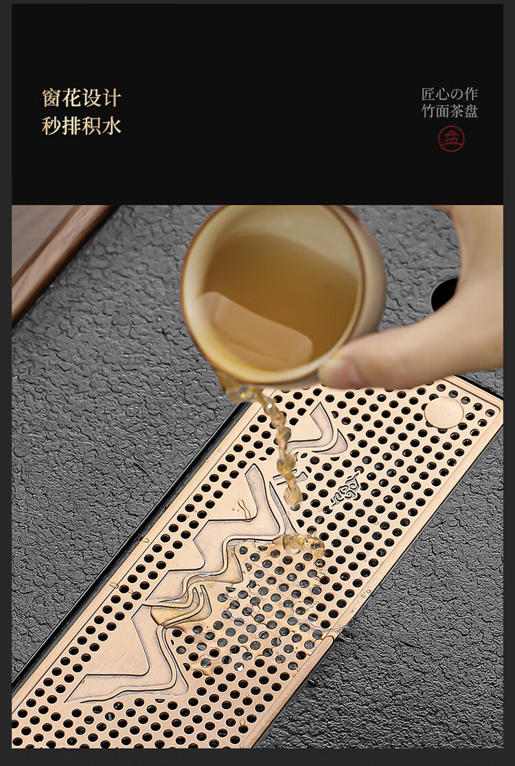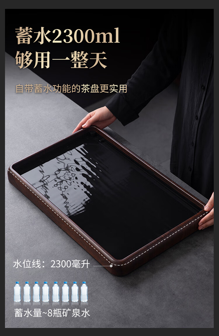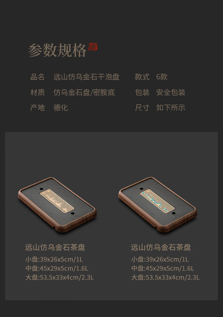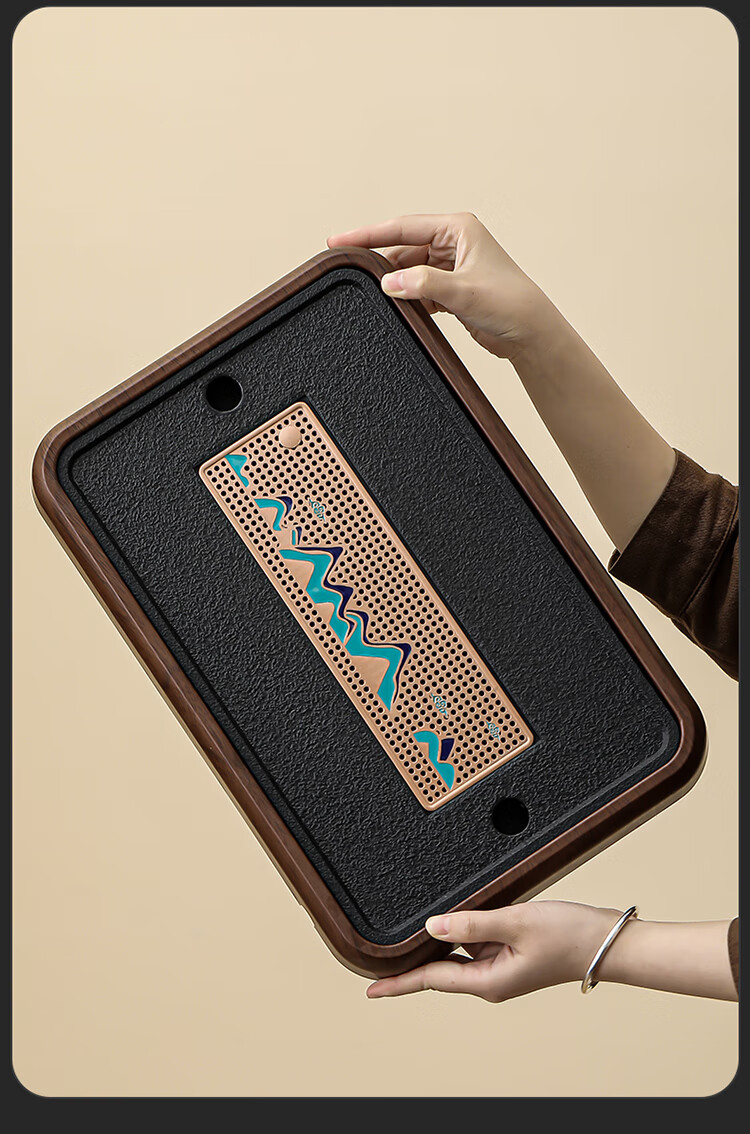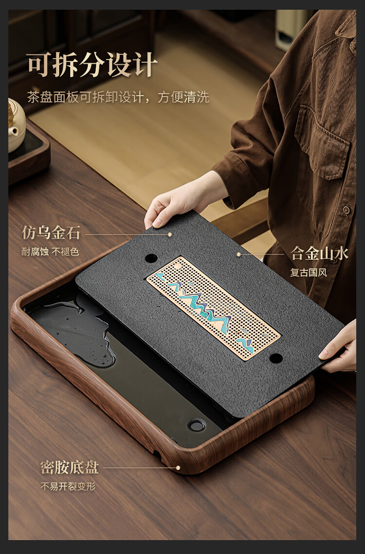 Black gold stone tea tray for home living room rectangular high-end kung fu tray small dry brewing tea table water storage type wood grain Yuanshan tea tray-39*26*5cm small size