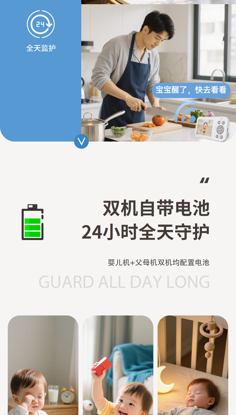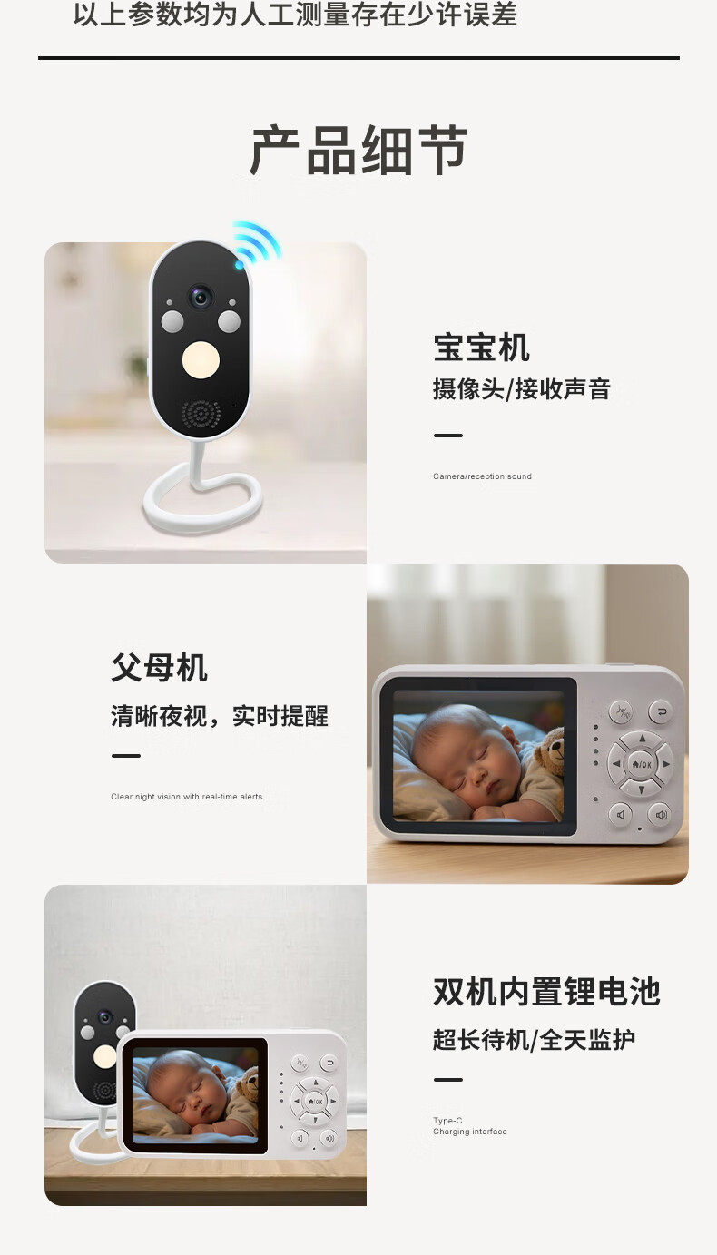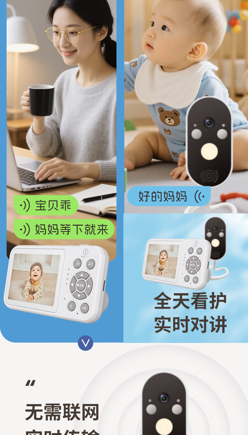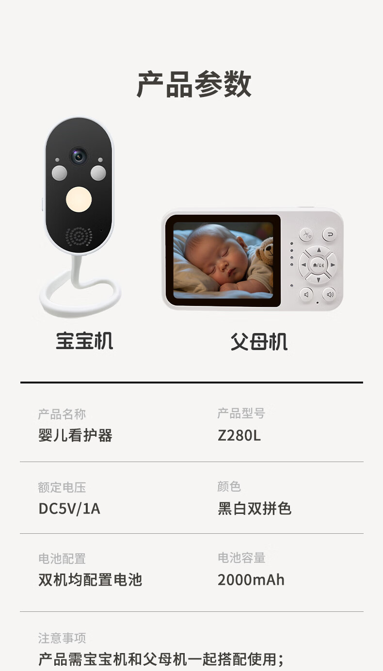 Meixin Baby Monitoring Caregiver Rechargeable Baby Monitor Crying No Internet Needed Crib Camera Z280L Caregiver + Monitoring Screen Rechargeable, Can Be Taken Outside