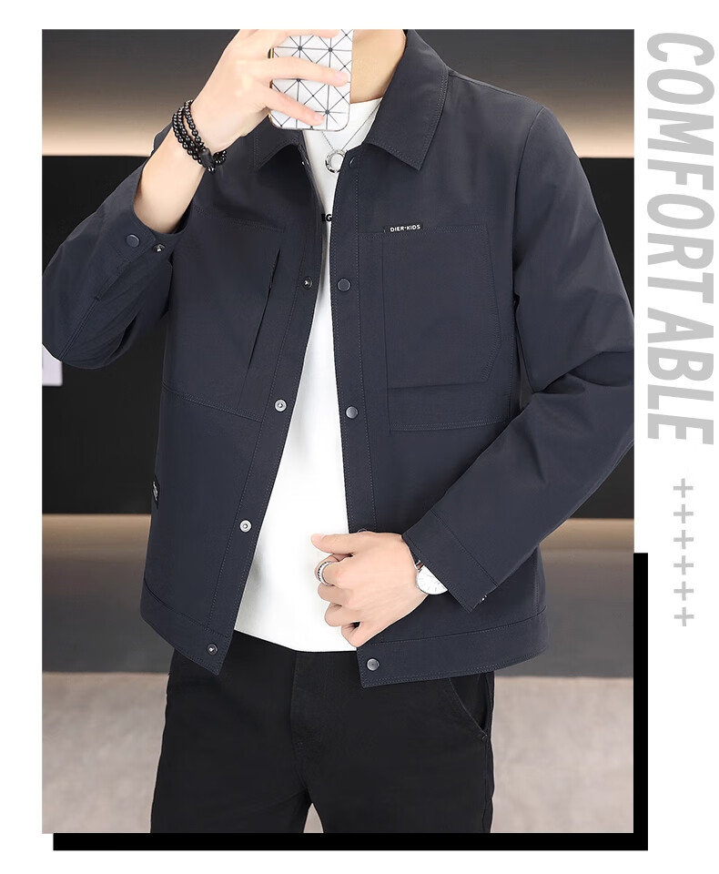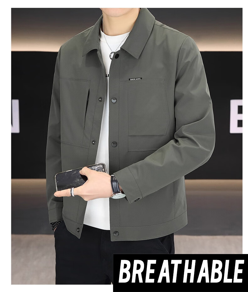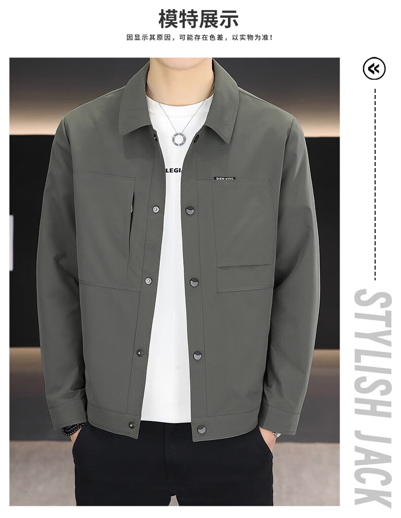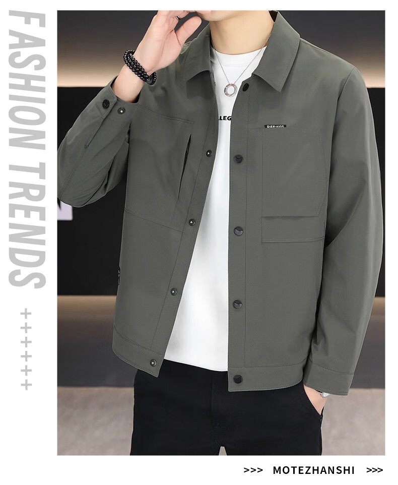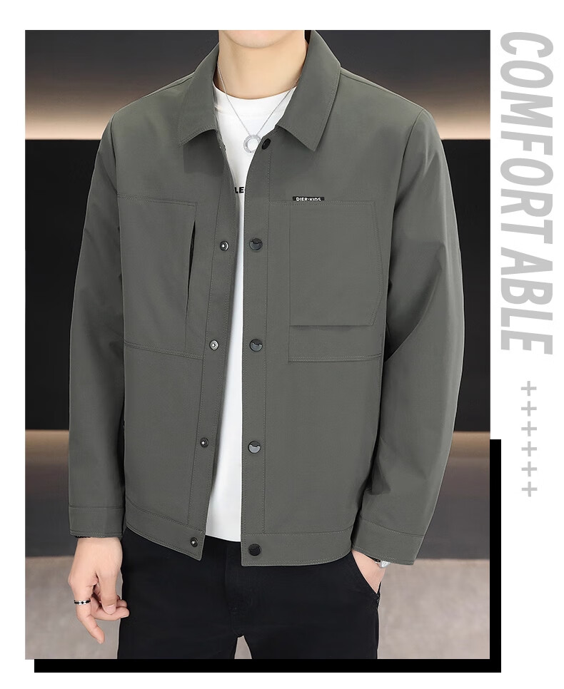 Romon Lapel Men's Jacket Spring and Autumn Coat 2025 New Autumn Clothes Versatile Casual High-end Jacket Men's Top 178 Army Green XL (180) Recommended 140-155 Jin Jin equals 0.5 kg