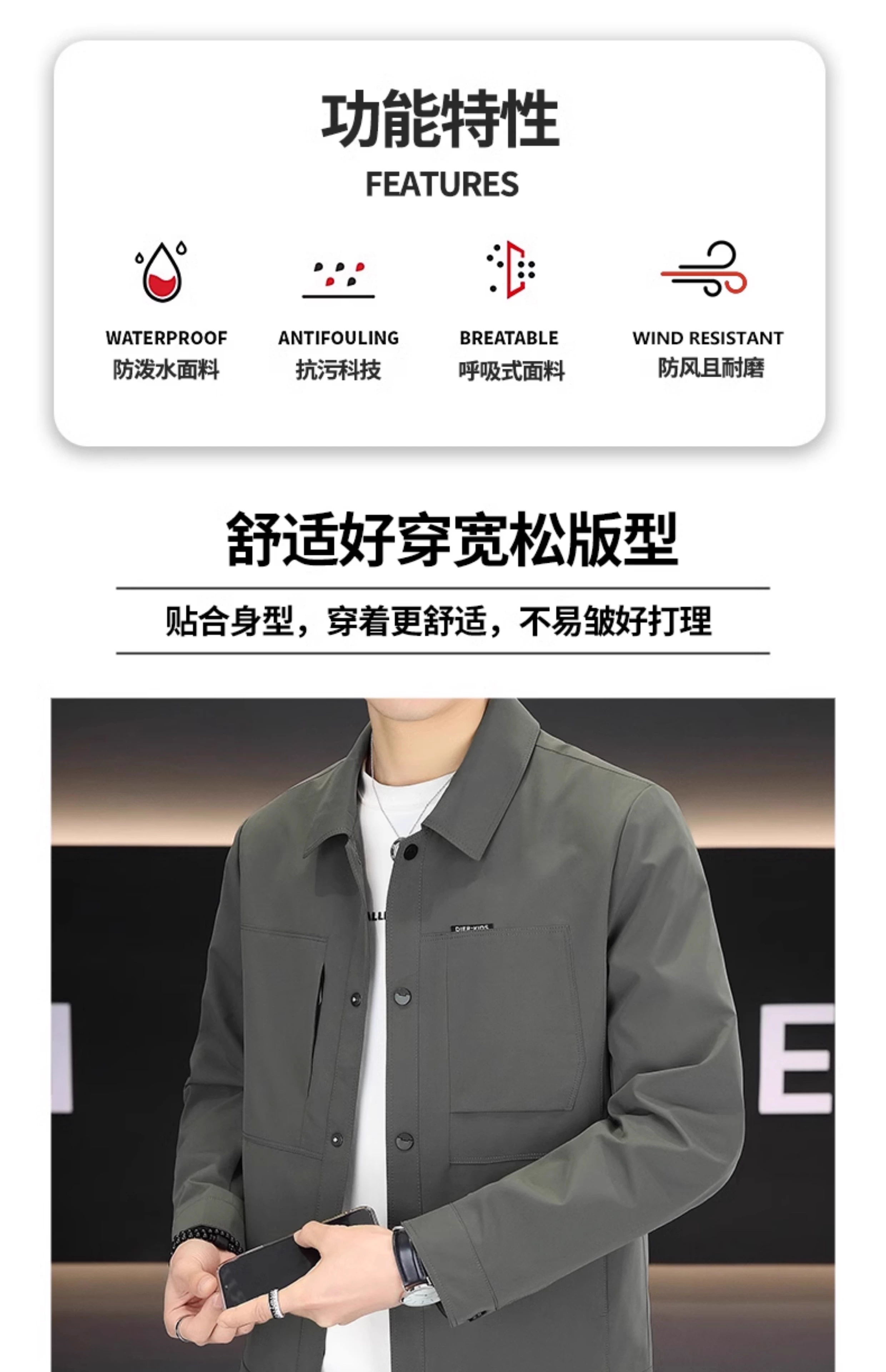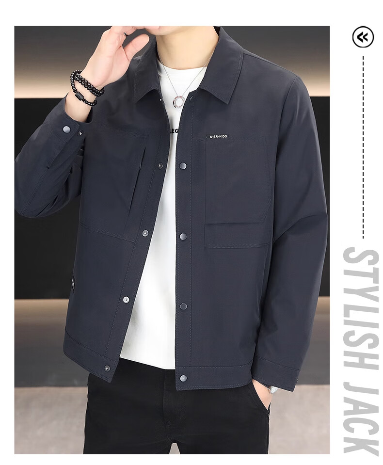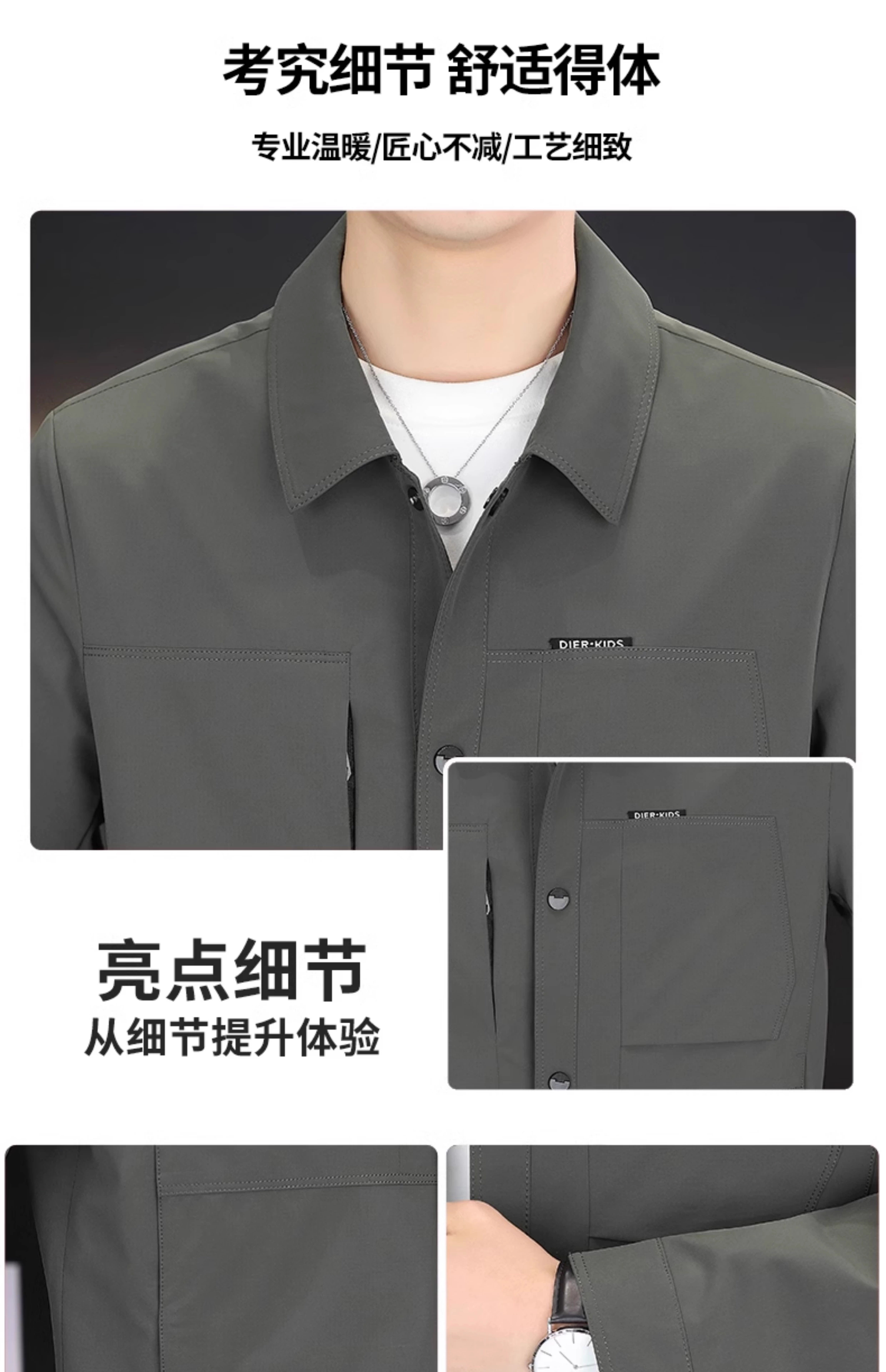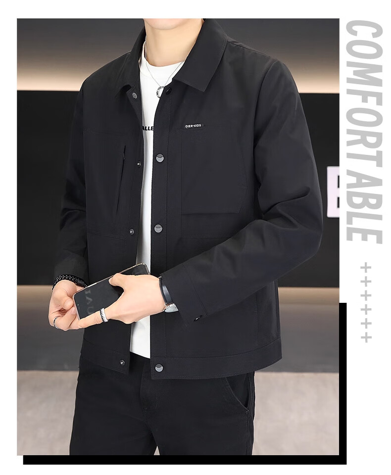 Romon Lapel Men's Jacket Spring and Autumn Coat 2025 New Autumn Clothes Versatile Casual High-end Jacket Men's Top 178 Army Green XL (180) Recommended 140-155 Jin Jin equals 0.5 kg