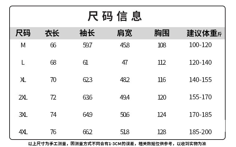 China (cm) 165 / 88-90 170 / 96-98 175 / 108-110 180 / 118-122 185 / 126-130