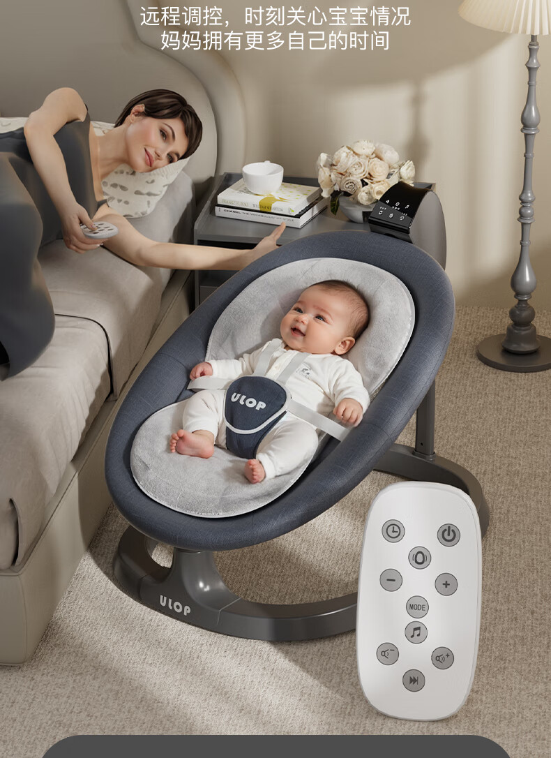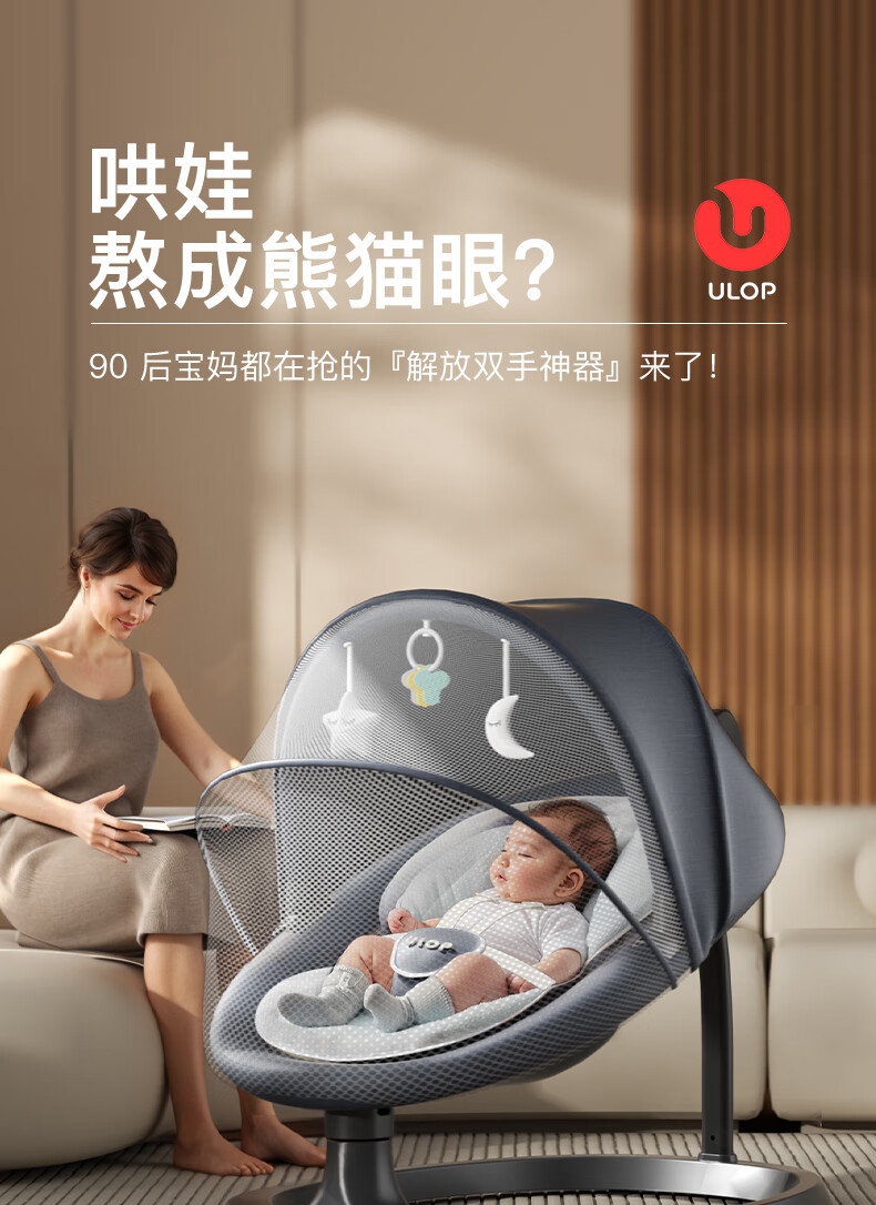 ULOP electric baby rocking chair is a magic device for coaxing babies. Infant baby rocking chair is a practical full-moon gift for newborns. Baby products for 0-6 months are a magic device for coaxing babies - Jinsha Electric Cradle Rocking Bed Mosquito Net + Doll + Sleeping Mat
