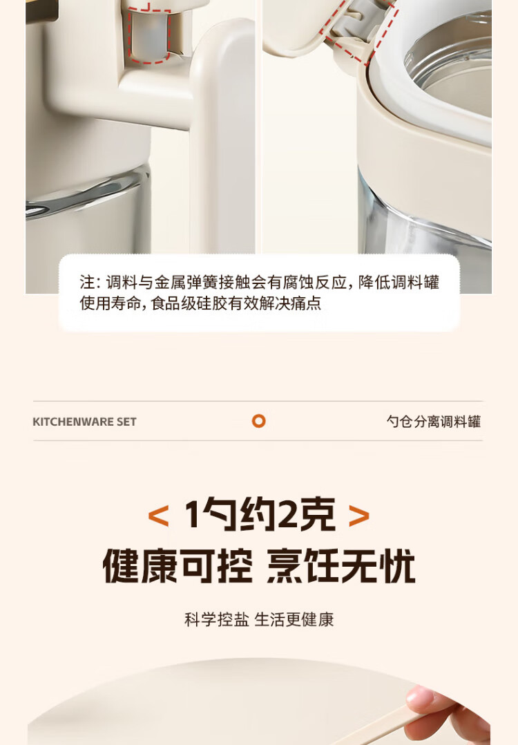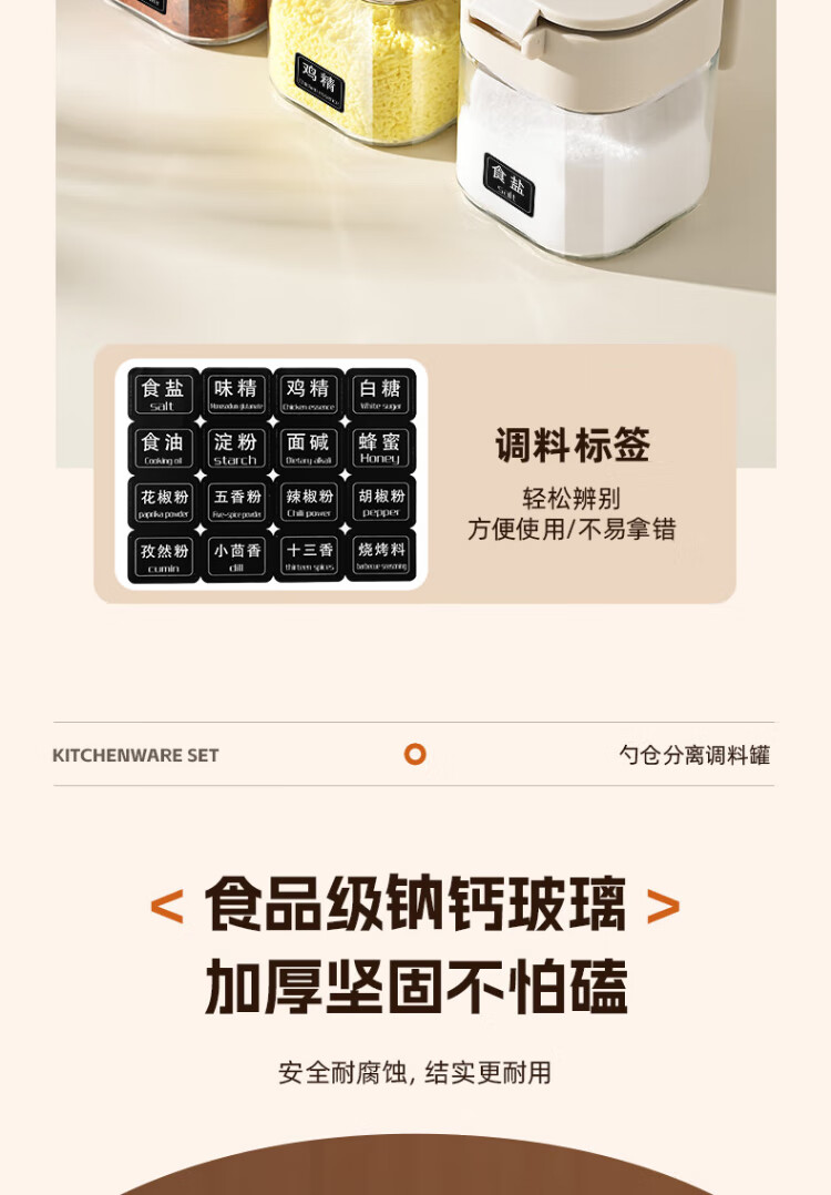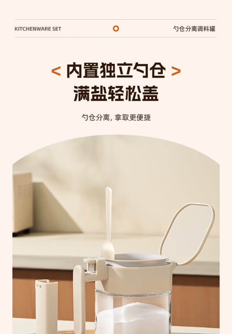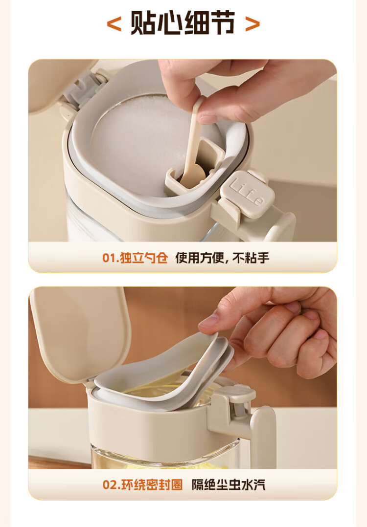 Home KATEI STORY Japanese moisture-proof seasoning jar sealed salt shaker seasoning box glass home kitchen high-end seasoning jar seasoning jar jar free spoon + sealed moisture-proof off-white 2 pieces