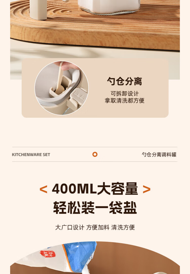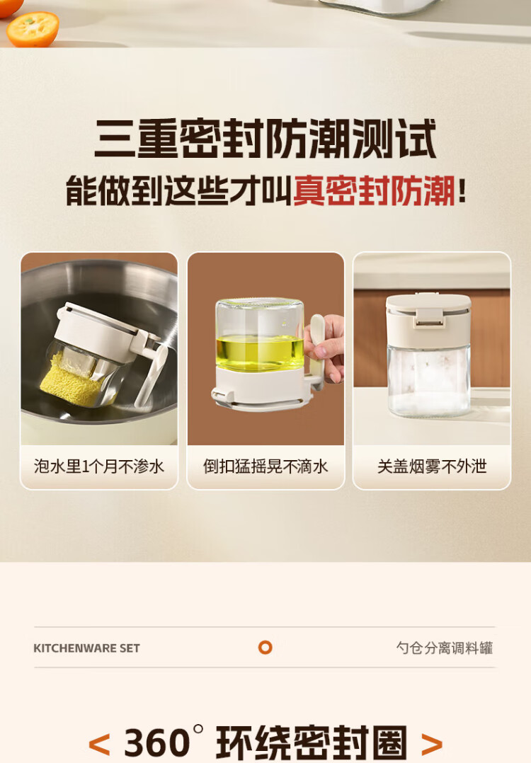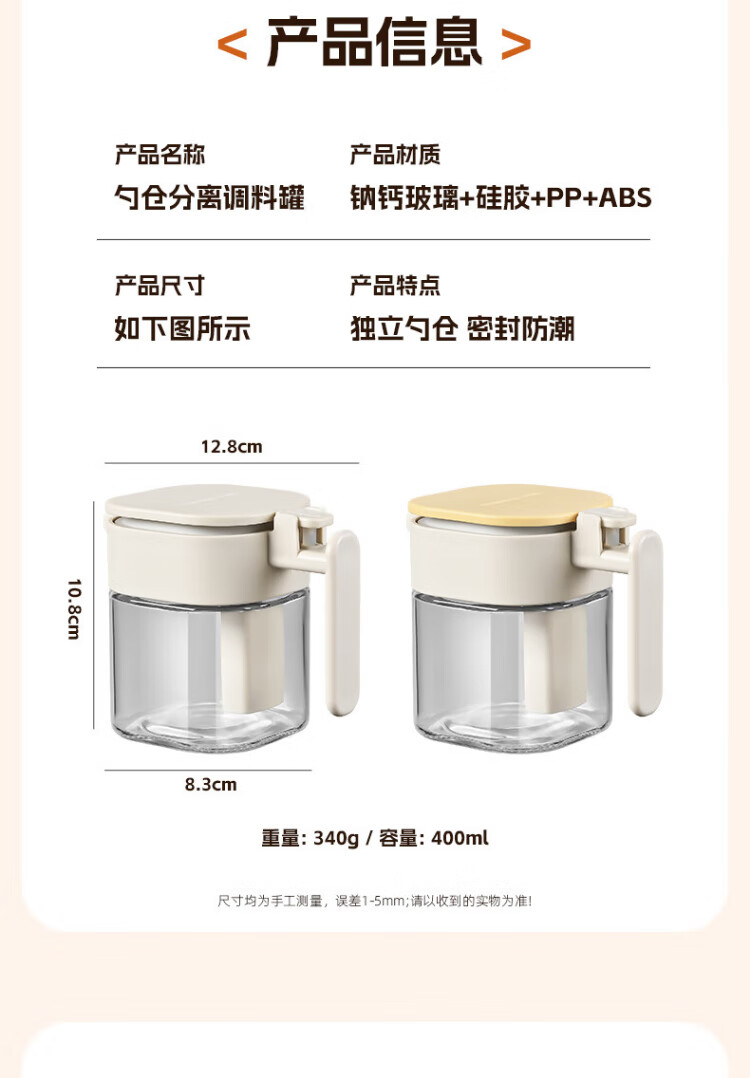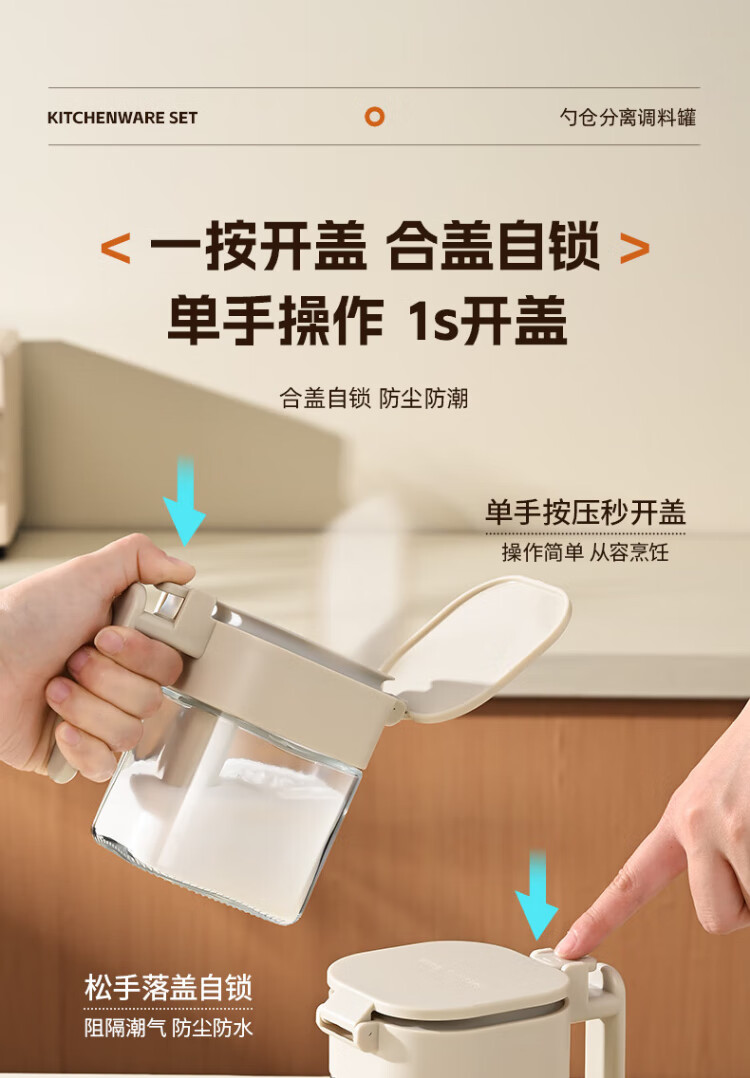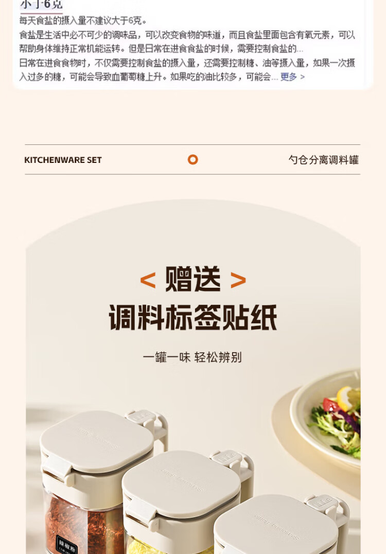 Home KATEI STORY Japanese moisture-proof seasoning jar sealed salt shaker seasoning box glass home kitchen high-end seasoning jar seasoning jar jar free spoon + sealed moisture-proof off-white 2 pieces