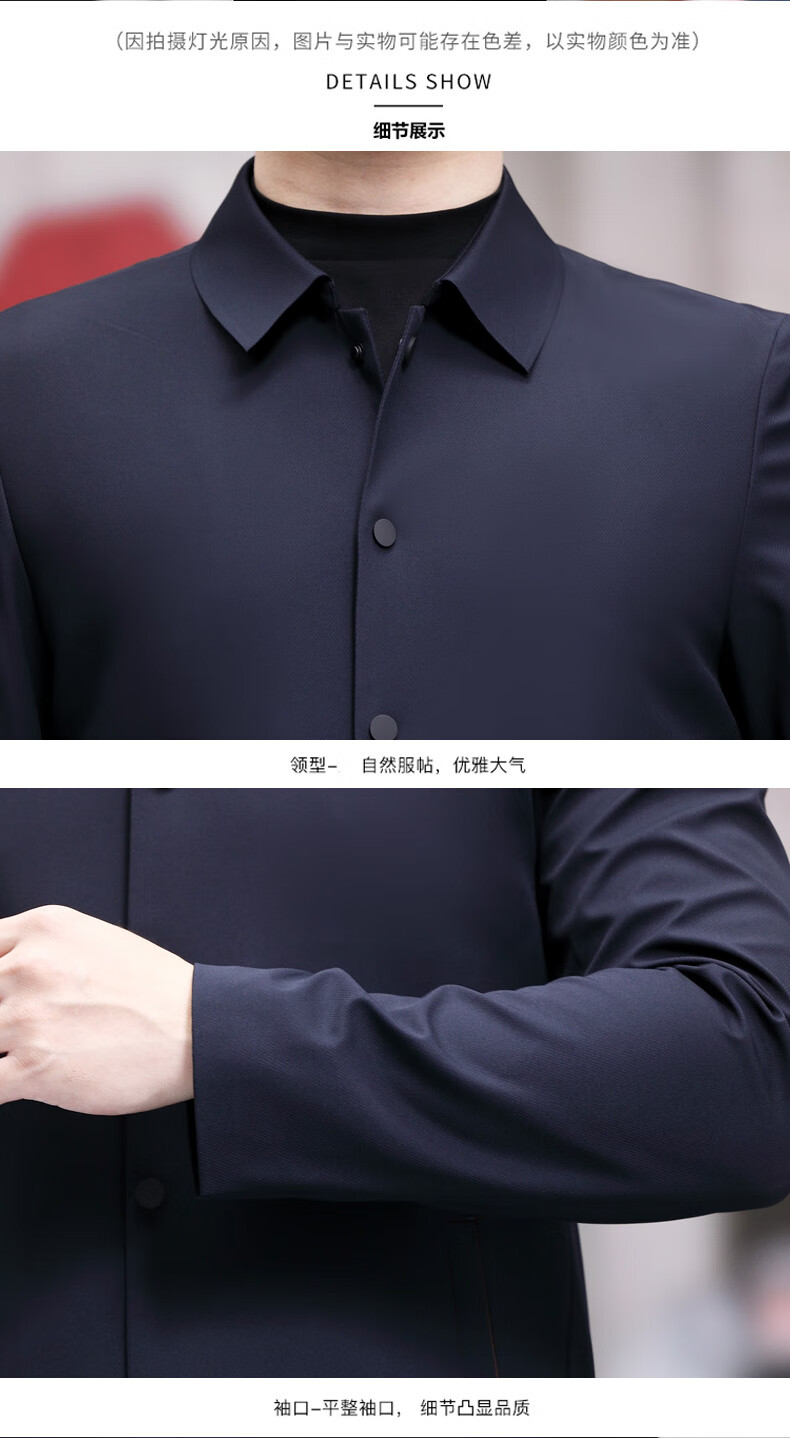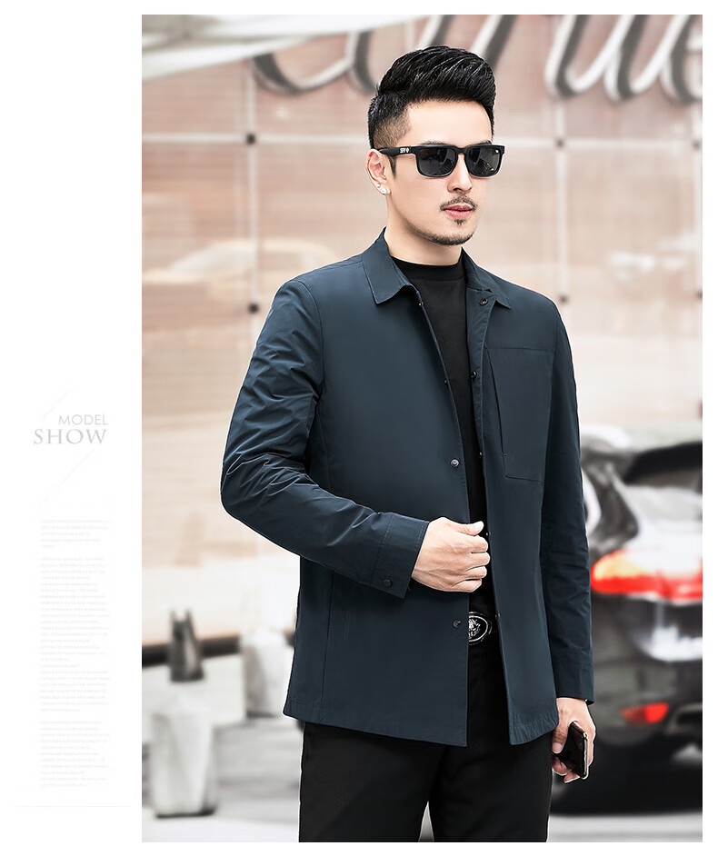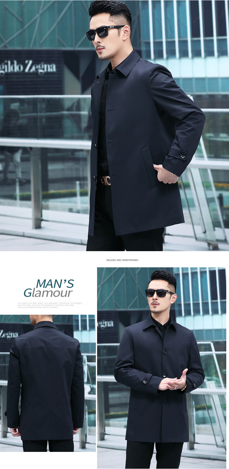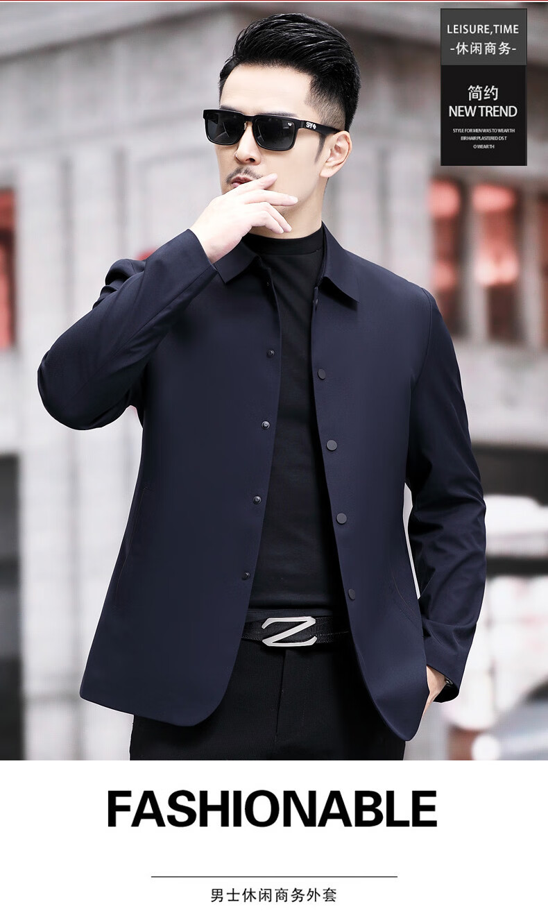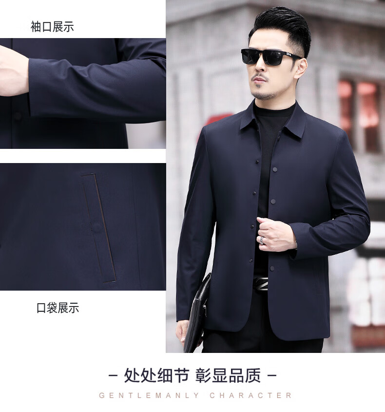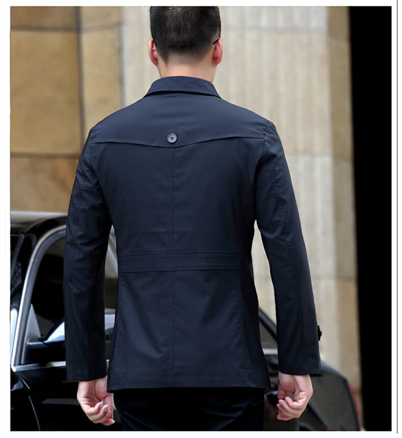 ROMON versatile windbreaker men's short lapel spring and autumn new middle-aged business casual men's coat British style thin dark blue 369 styles - Store Manager XL 180