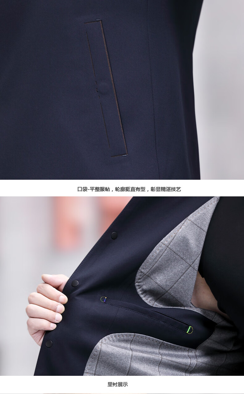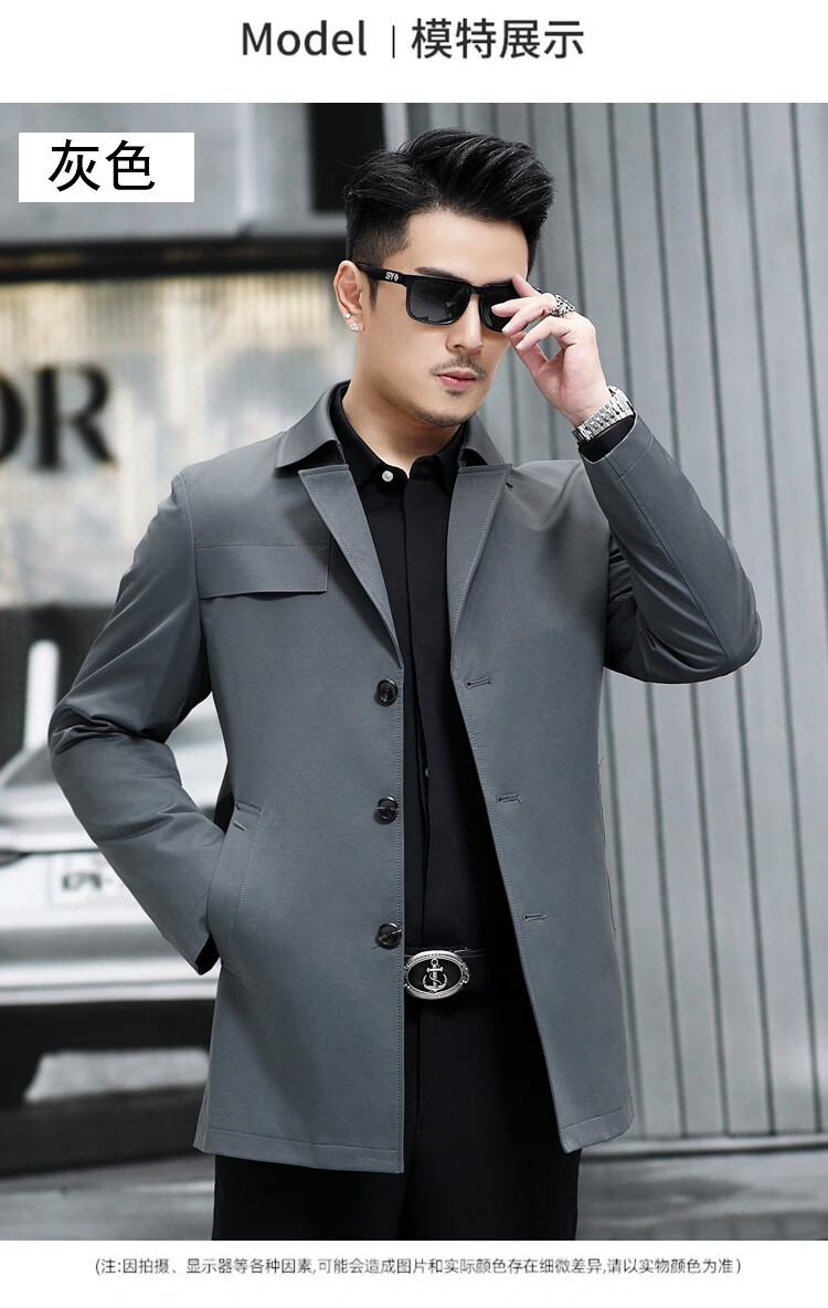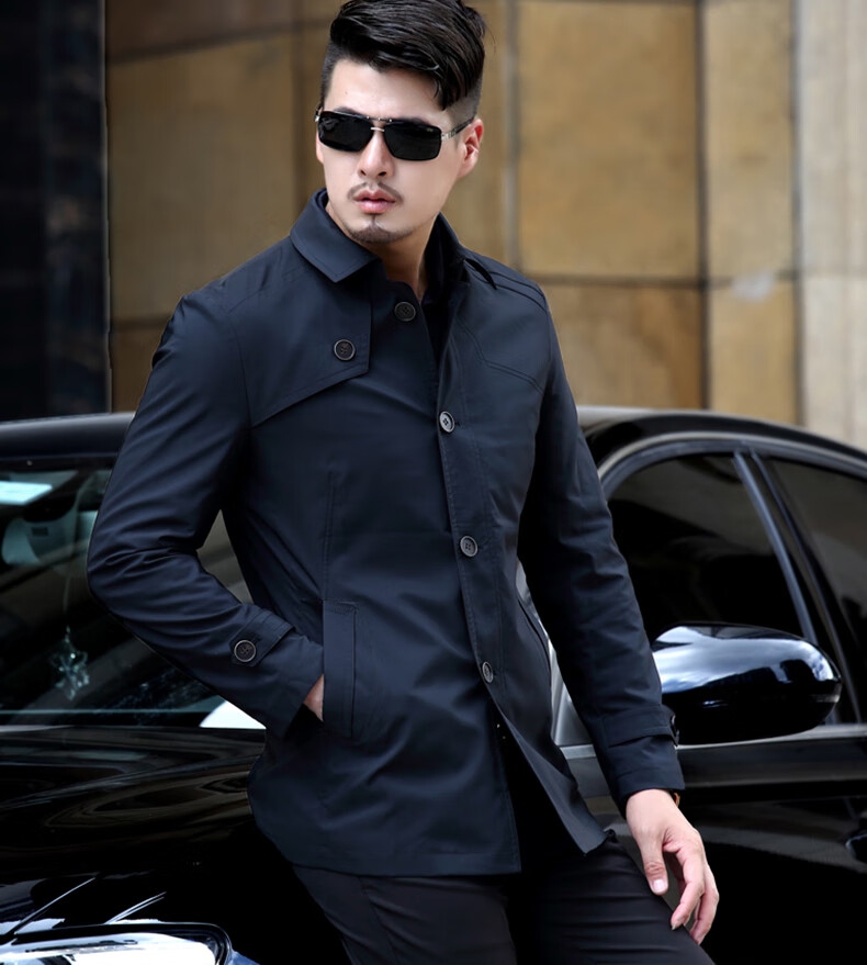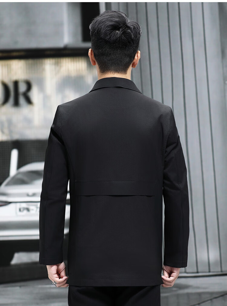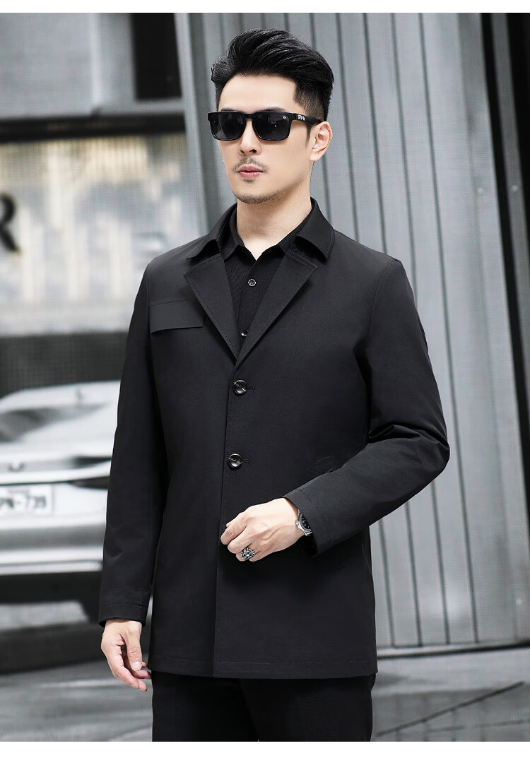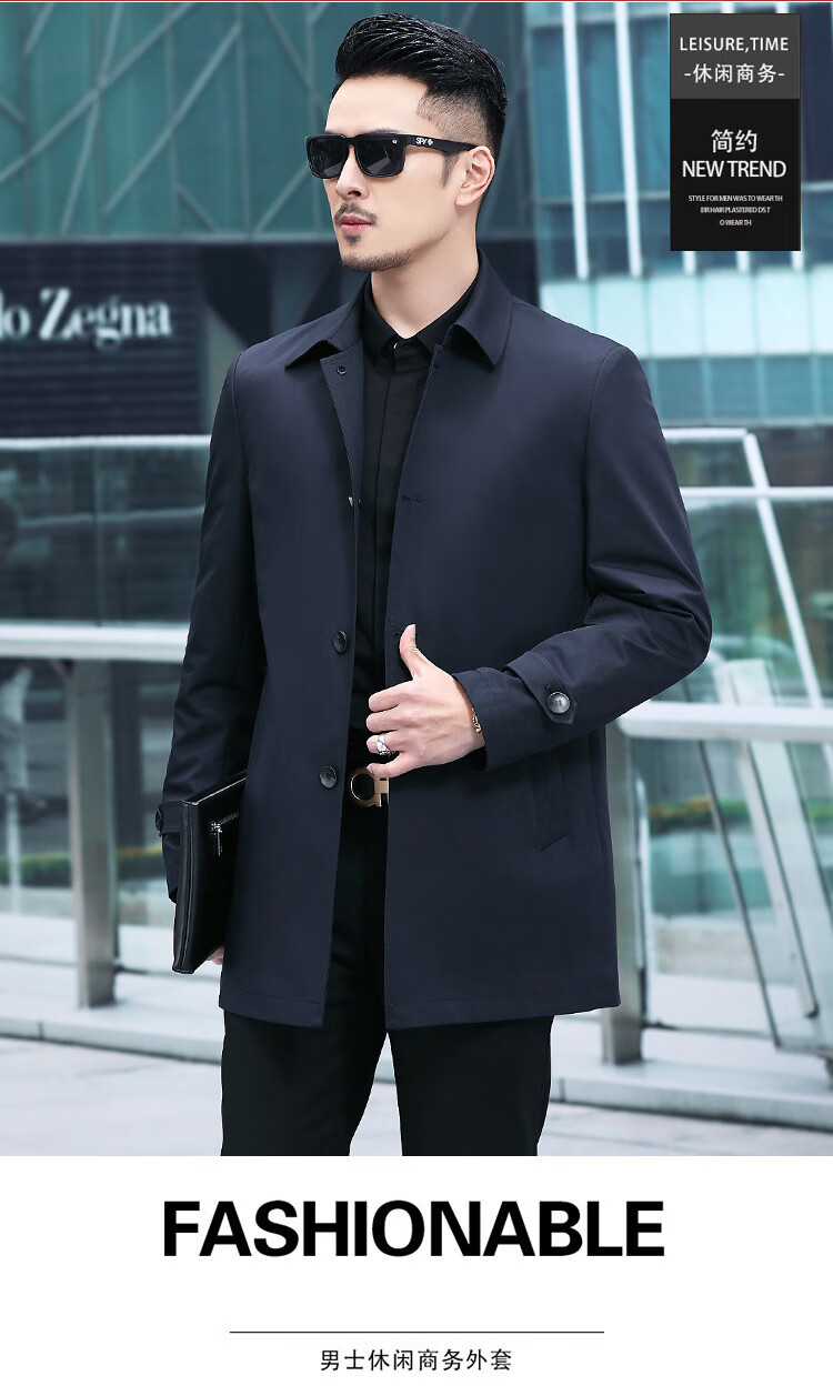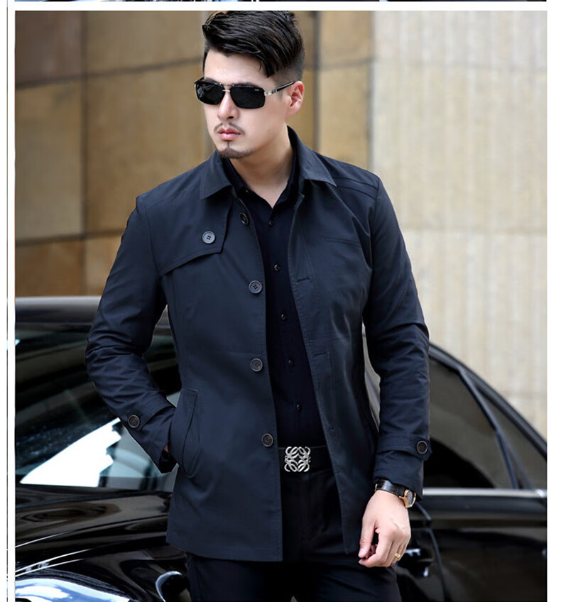 ROMON versatile windbreaker men's short lapel spring and autumn new middle-aged business casual men's coat British style thin dark blue 369 styles - Store Manager XL 180