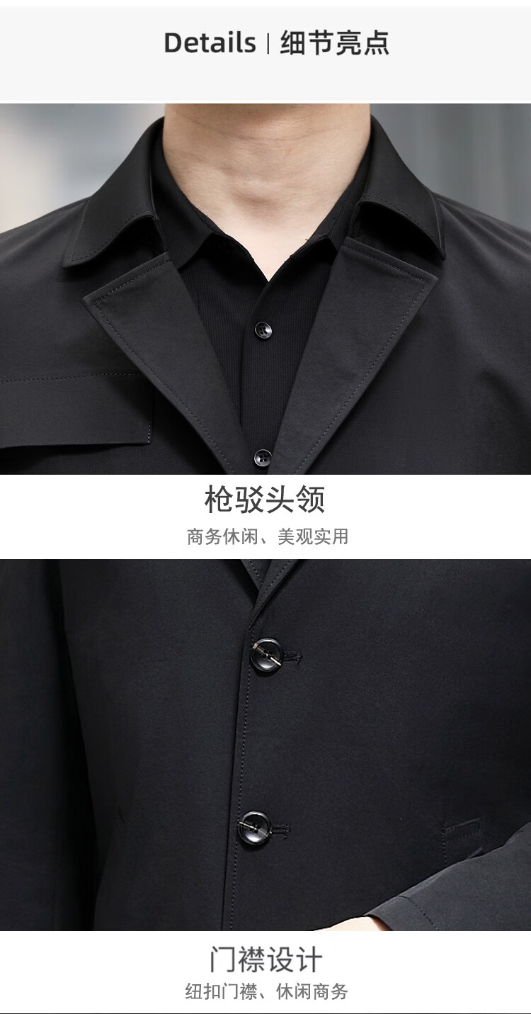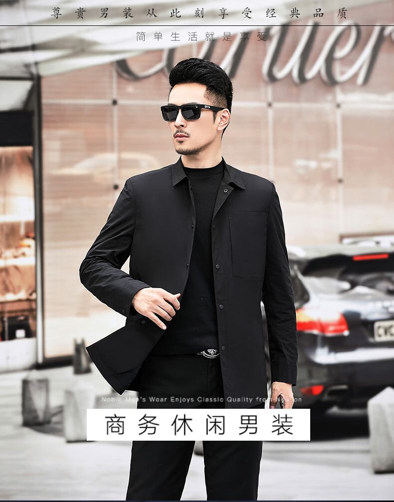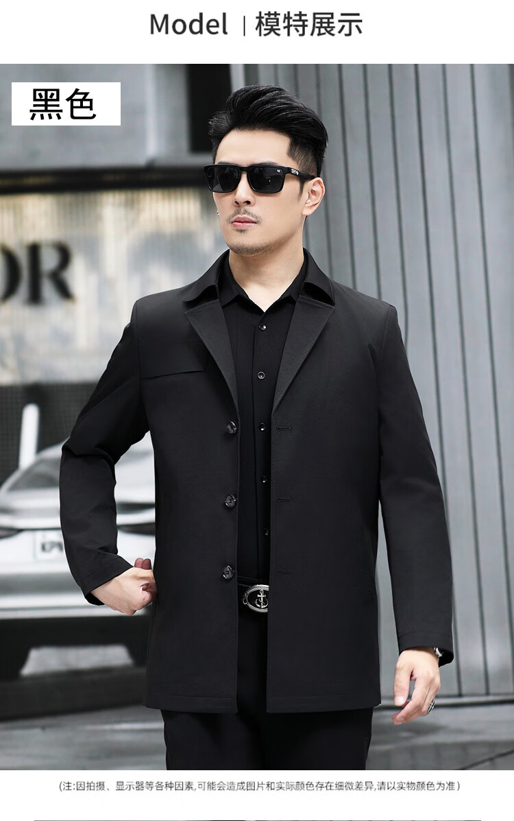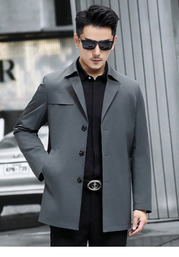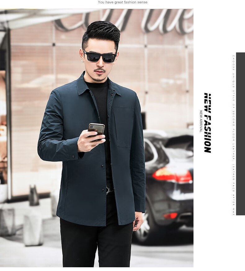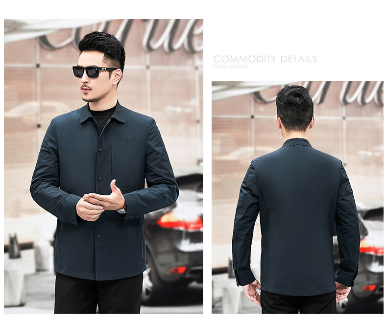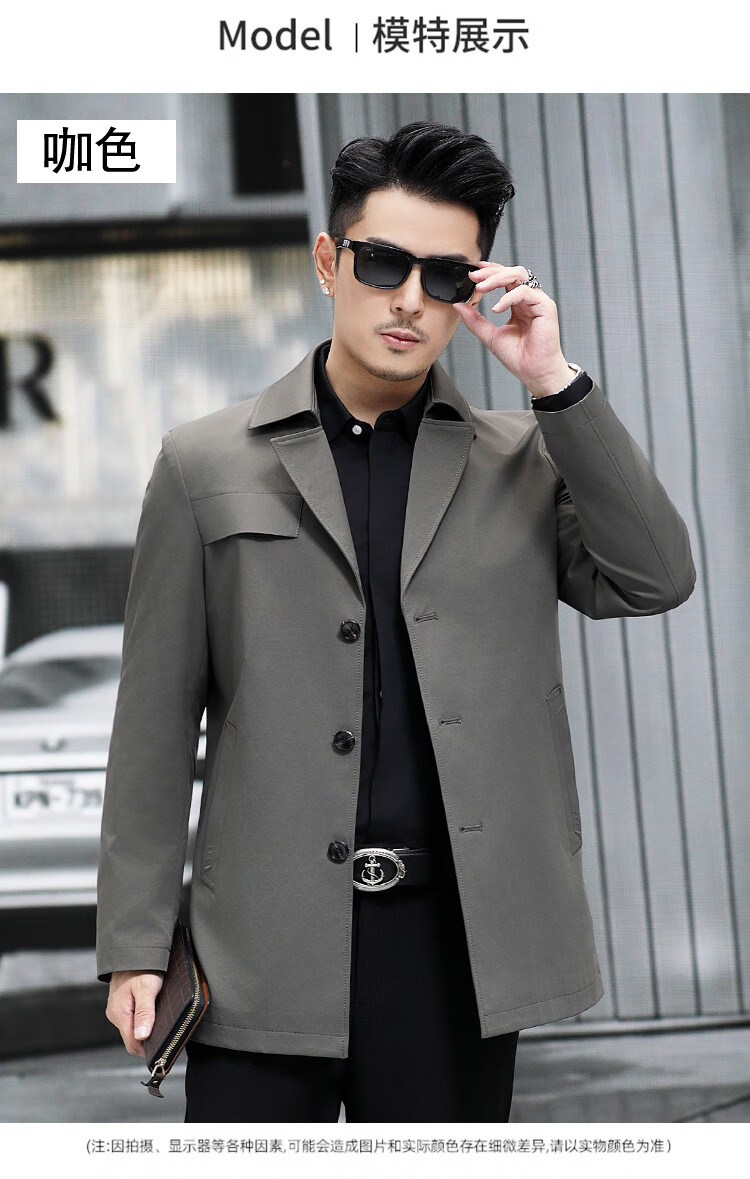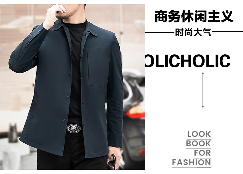 ROMON versatile windbreaker men's short lapel spring and autumn new middle-aged business casual men's coat British style thin dark blue 369 styles - Store Manager XL 180