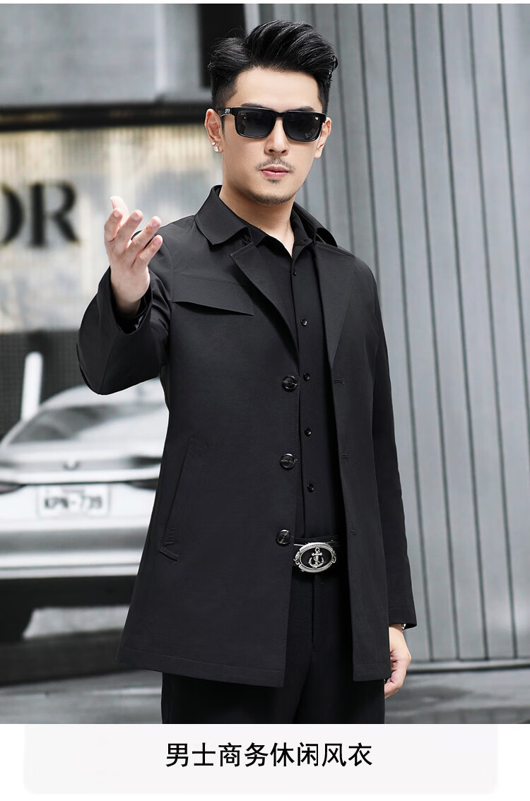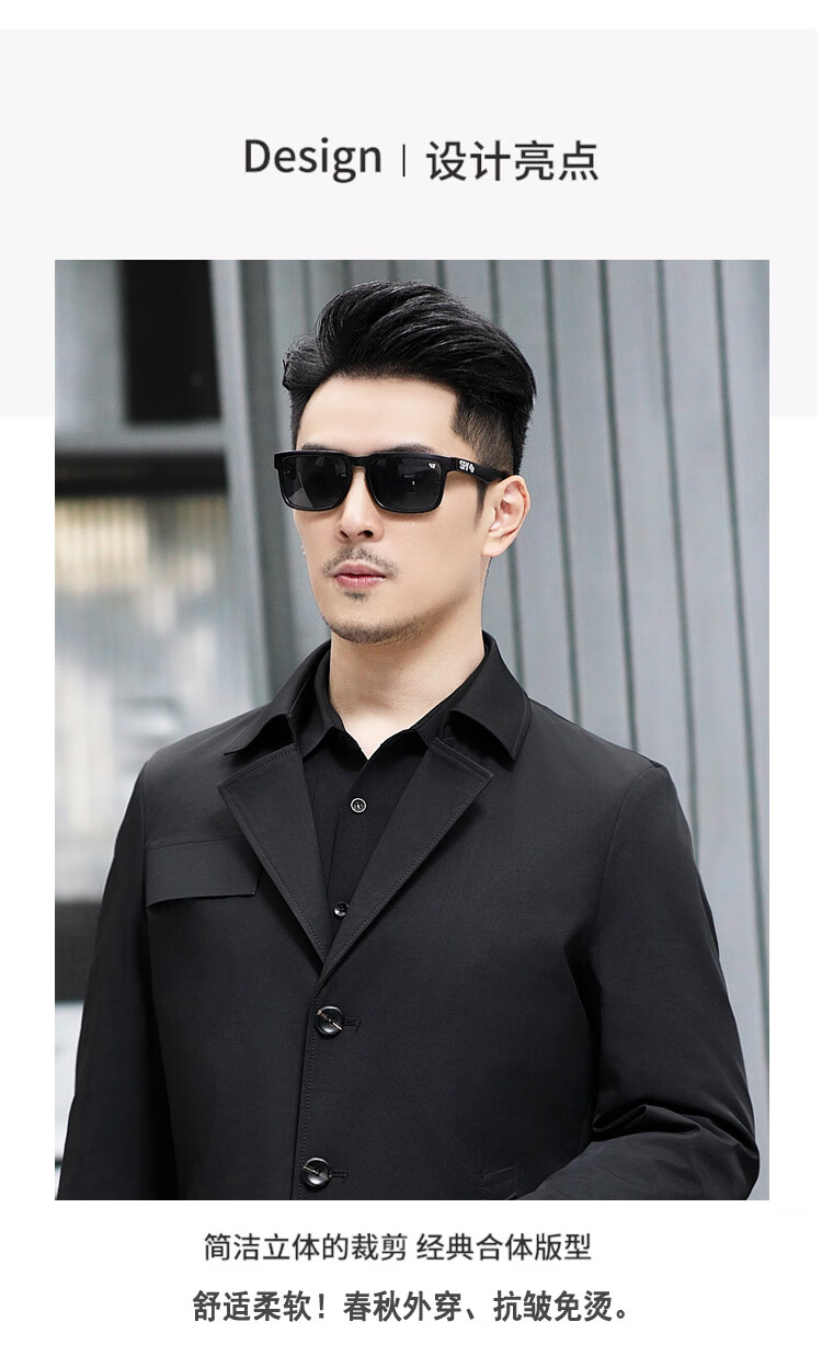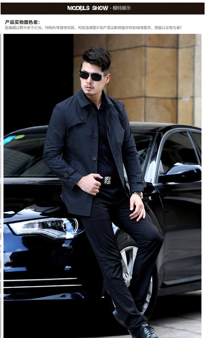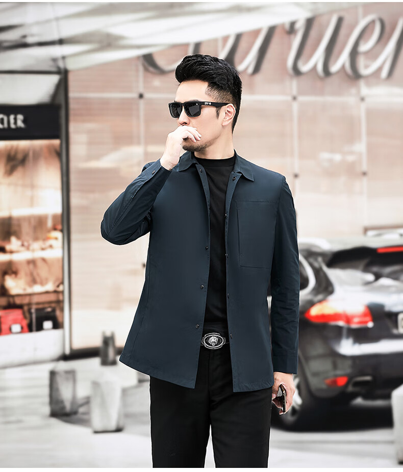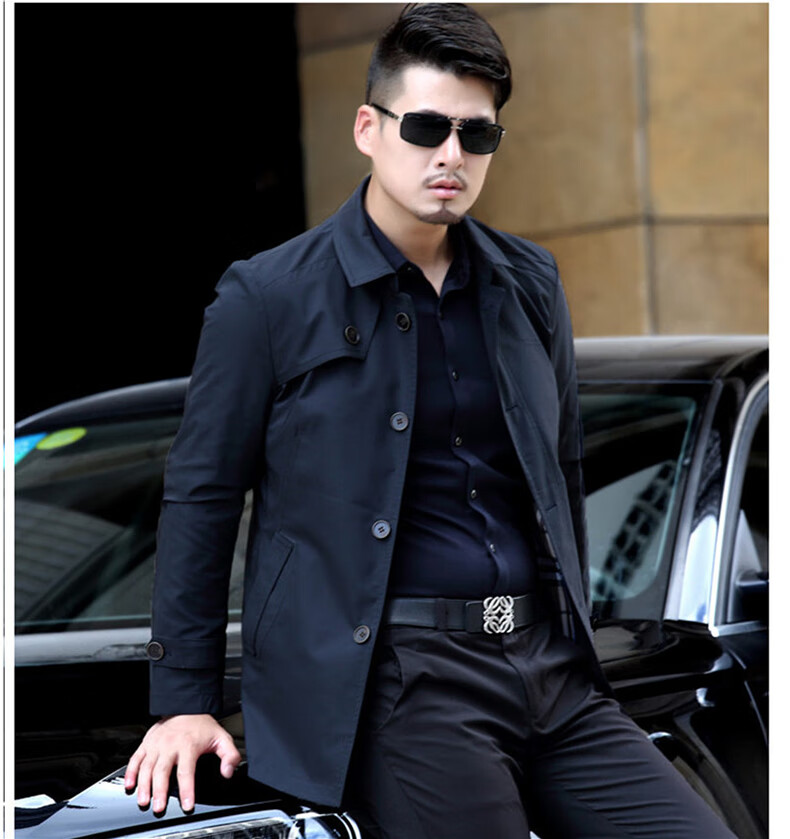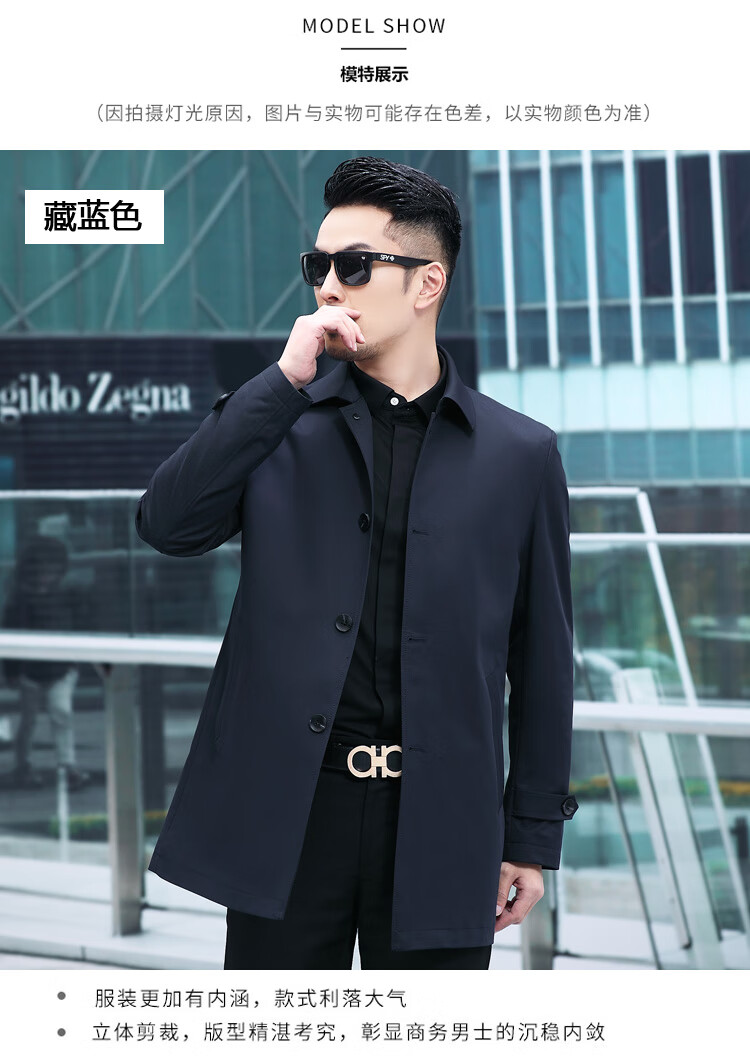 ROMON versatile windbreaker men's short lapel spring and autumn new middle-aged business casual men's coat British style thin dark blue 369 styles - Store Manager XL 180