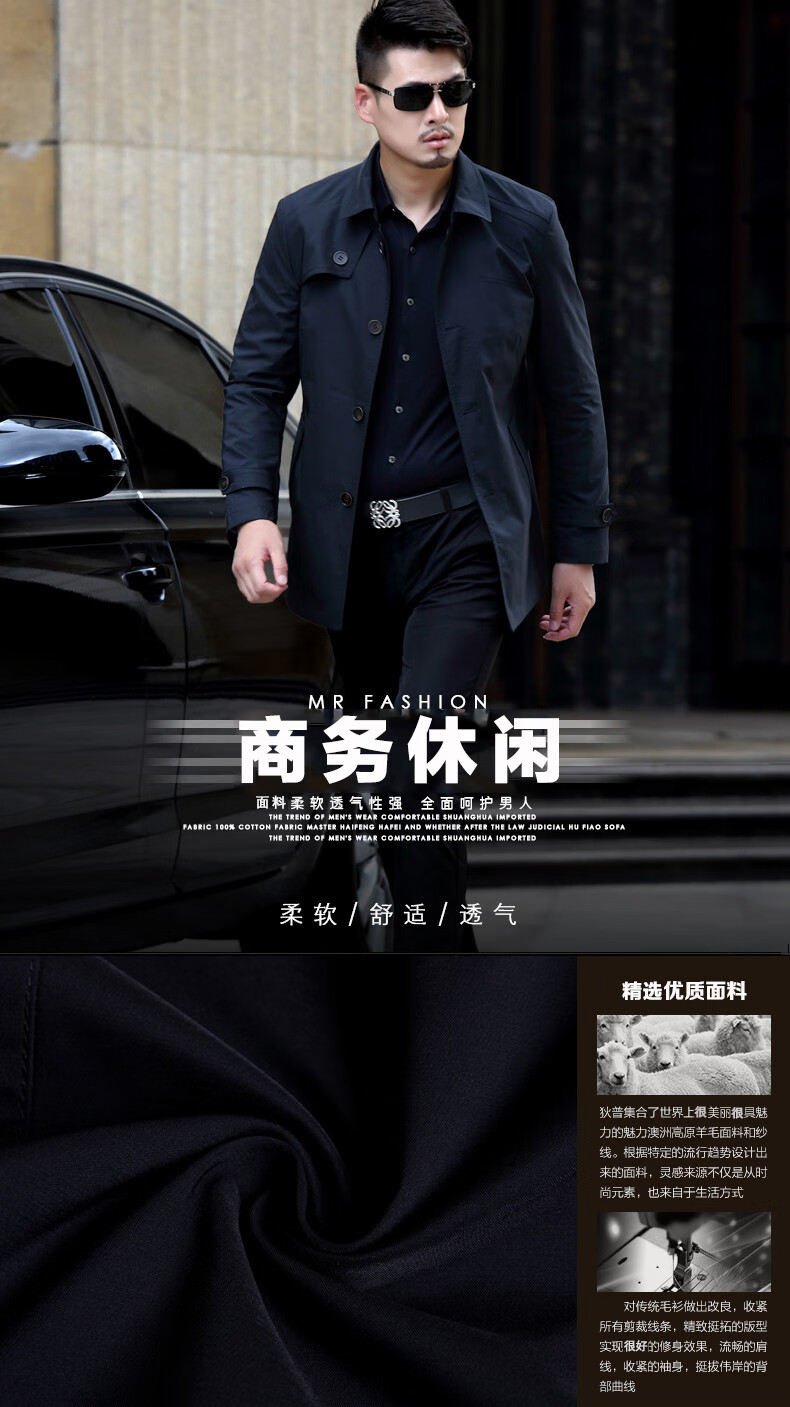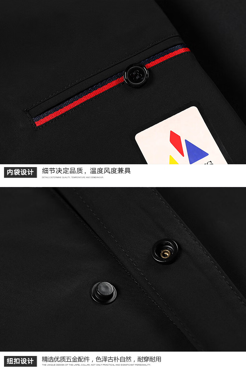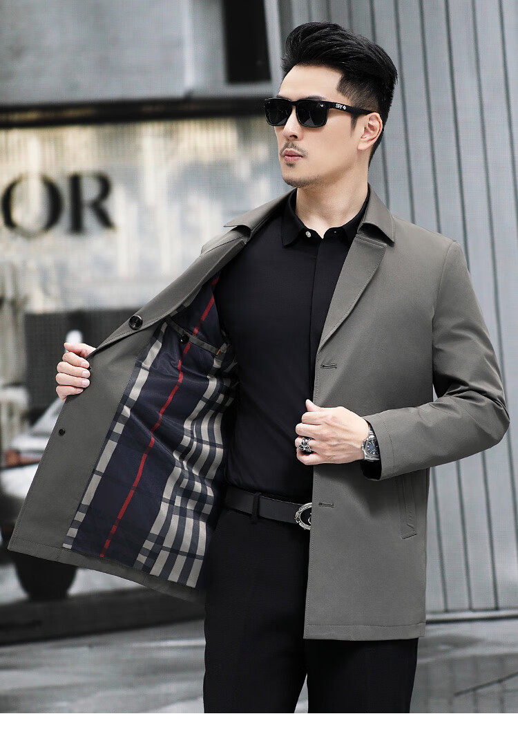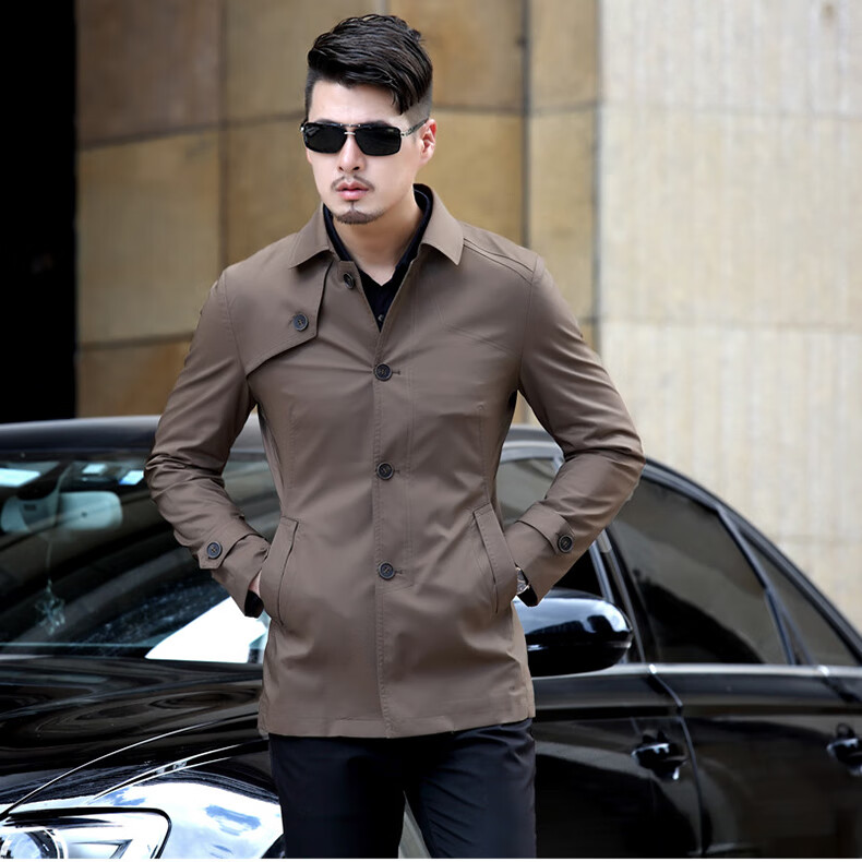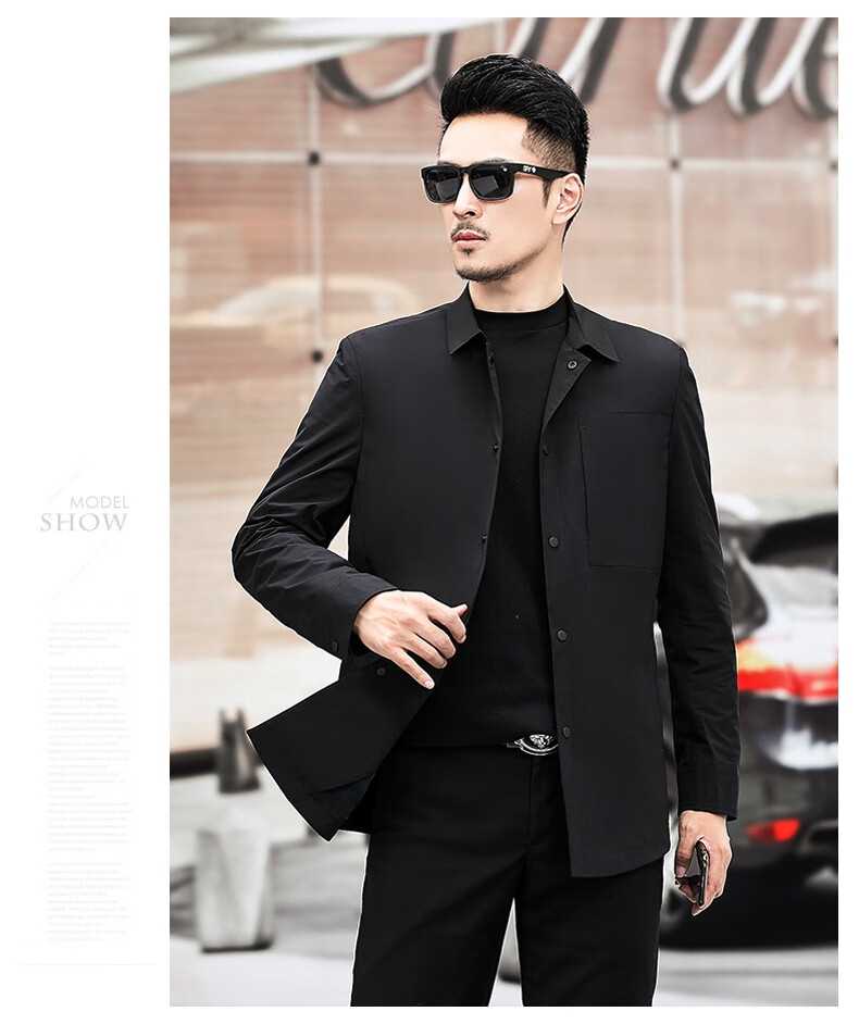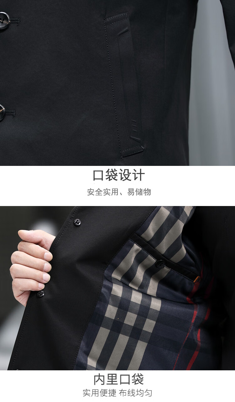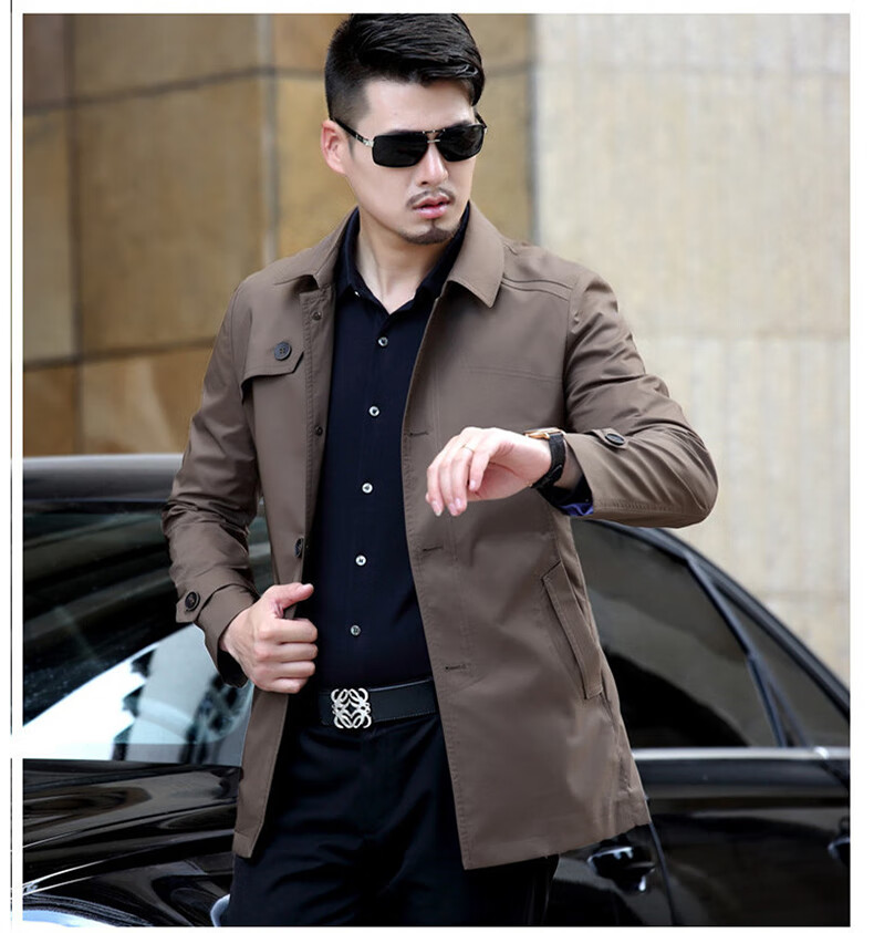 ROMON versatile windbreaker men's short lapel spring and autumn new middle-aged business casual men's coat British style thin dark blue 369 styles - Store Manager XL 180