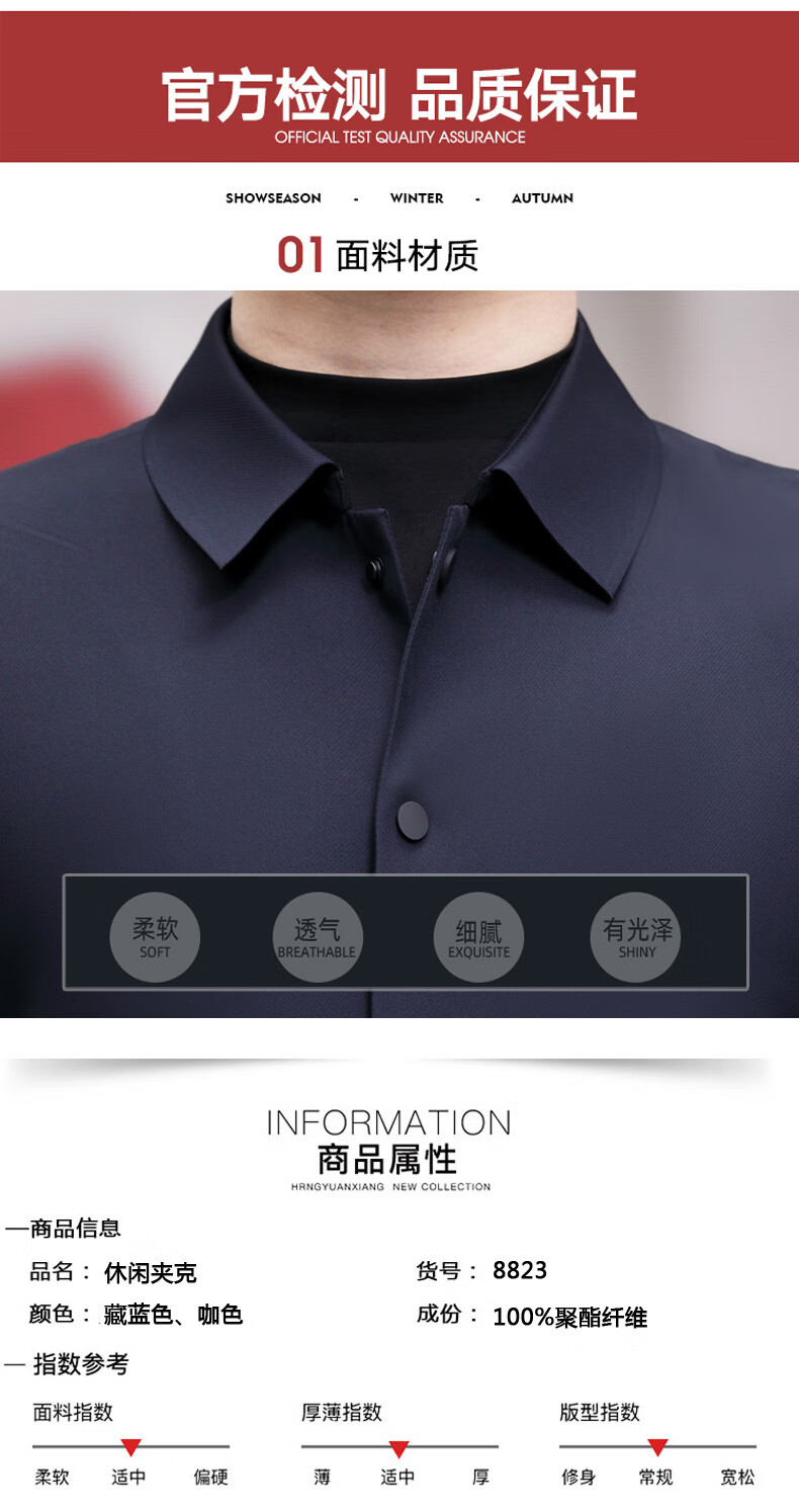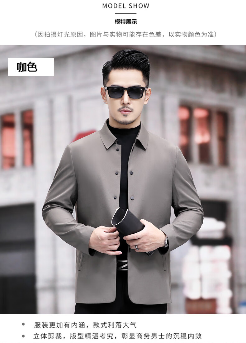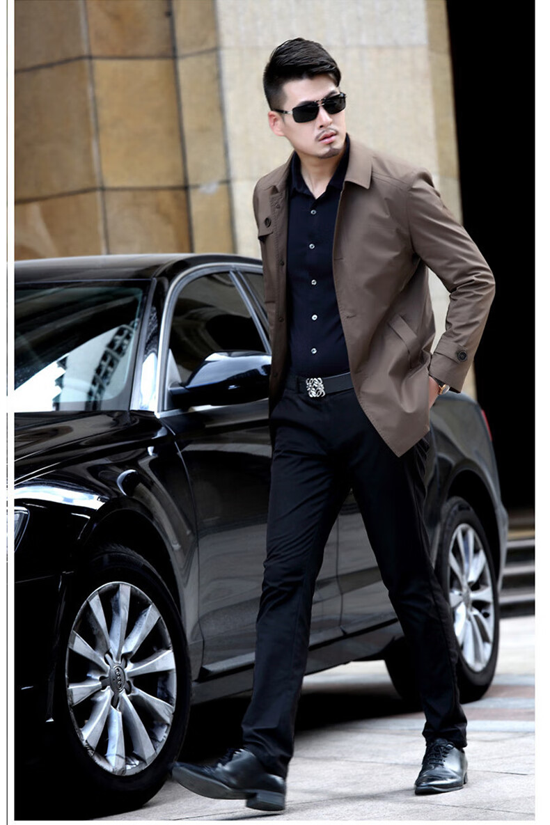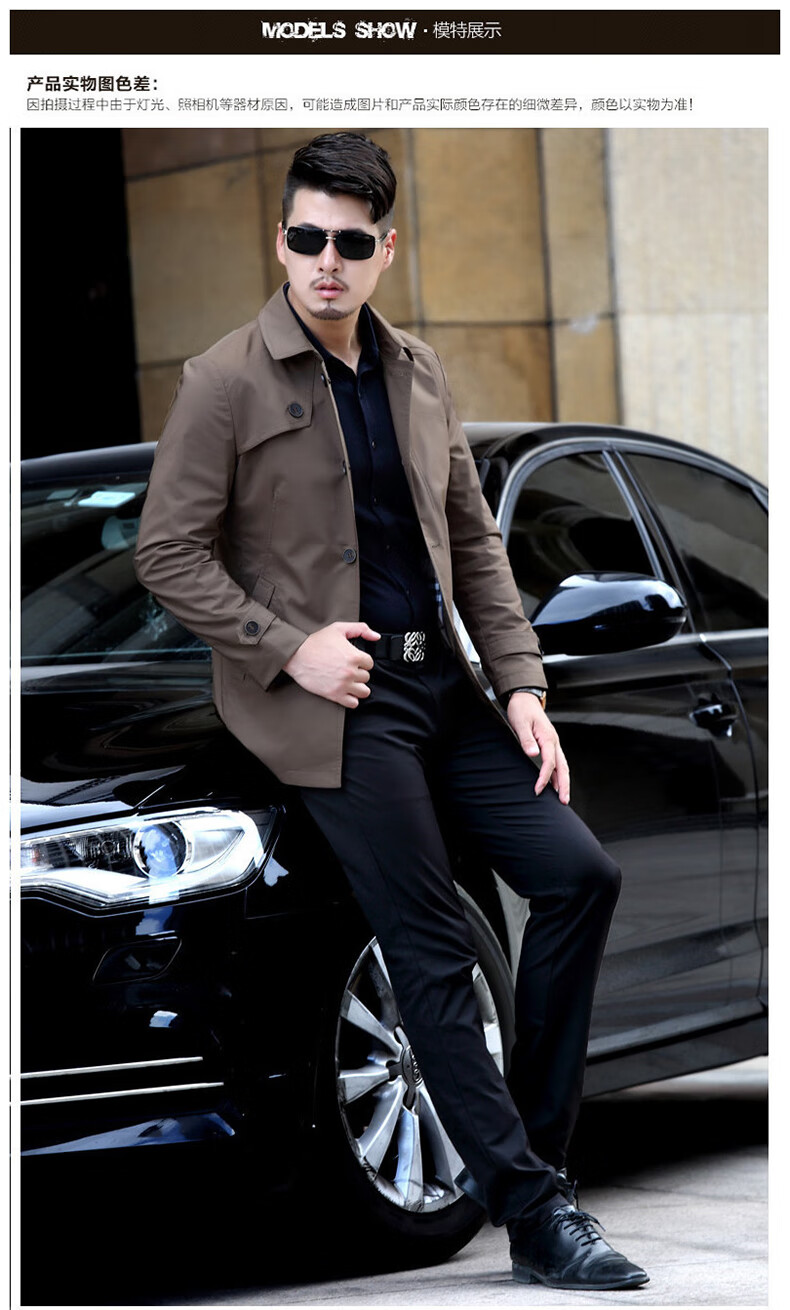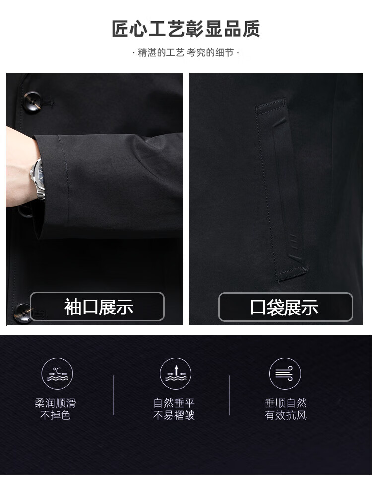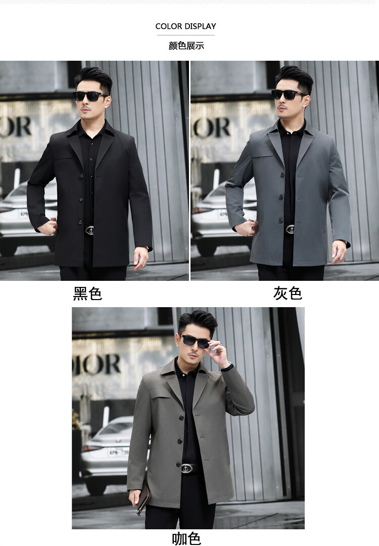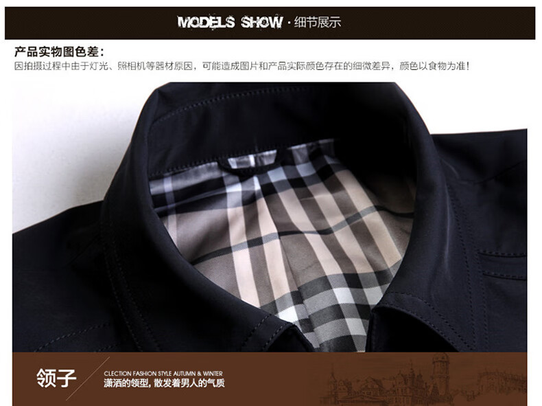 ROMON versatile windbreaker men's short lapel spring and autumn new middle-aged business casual men's coat British style thin dark blue 369 styles - Store Manager XL 180