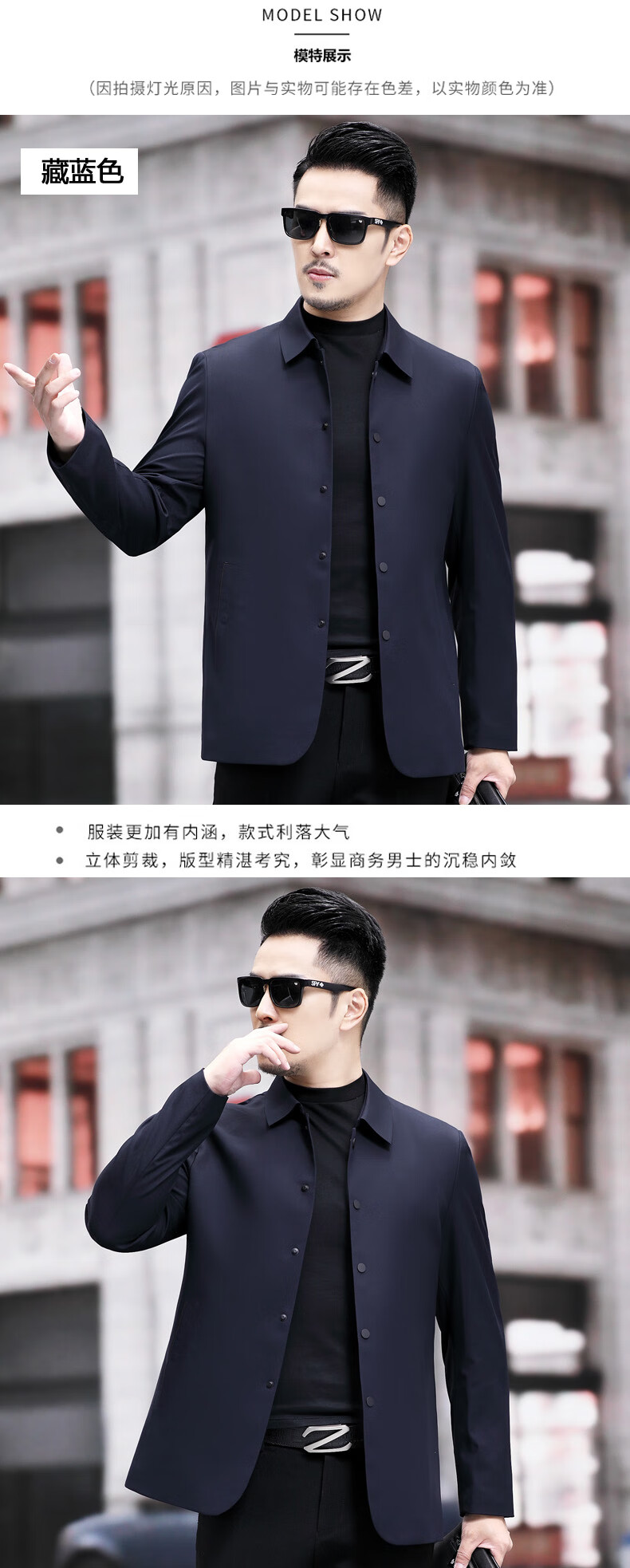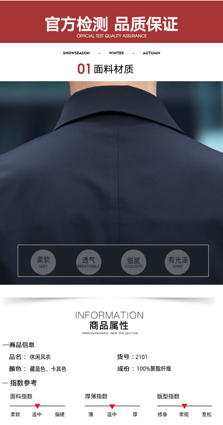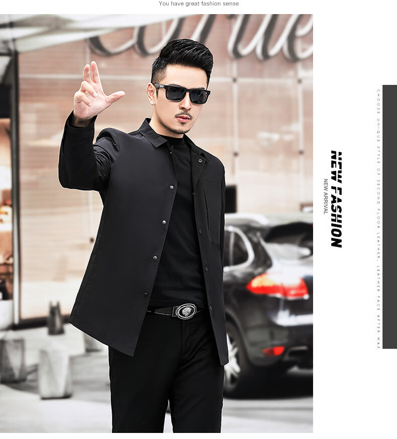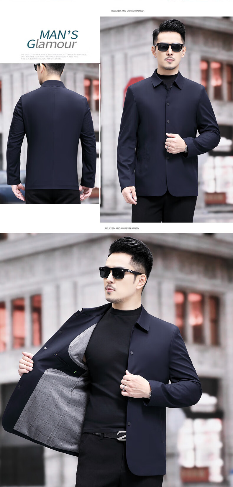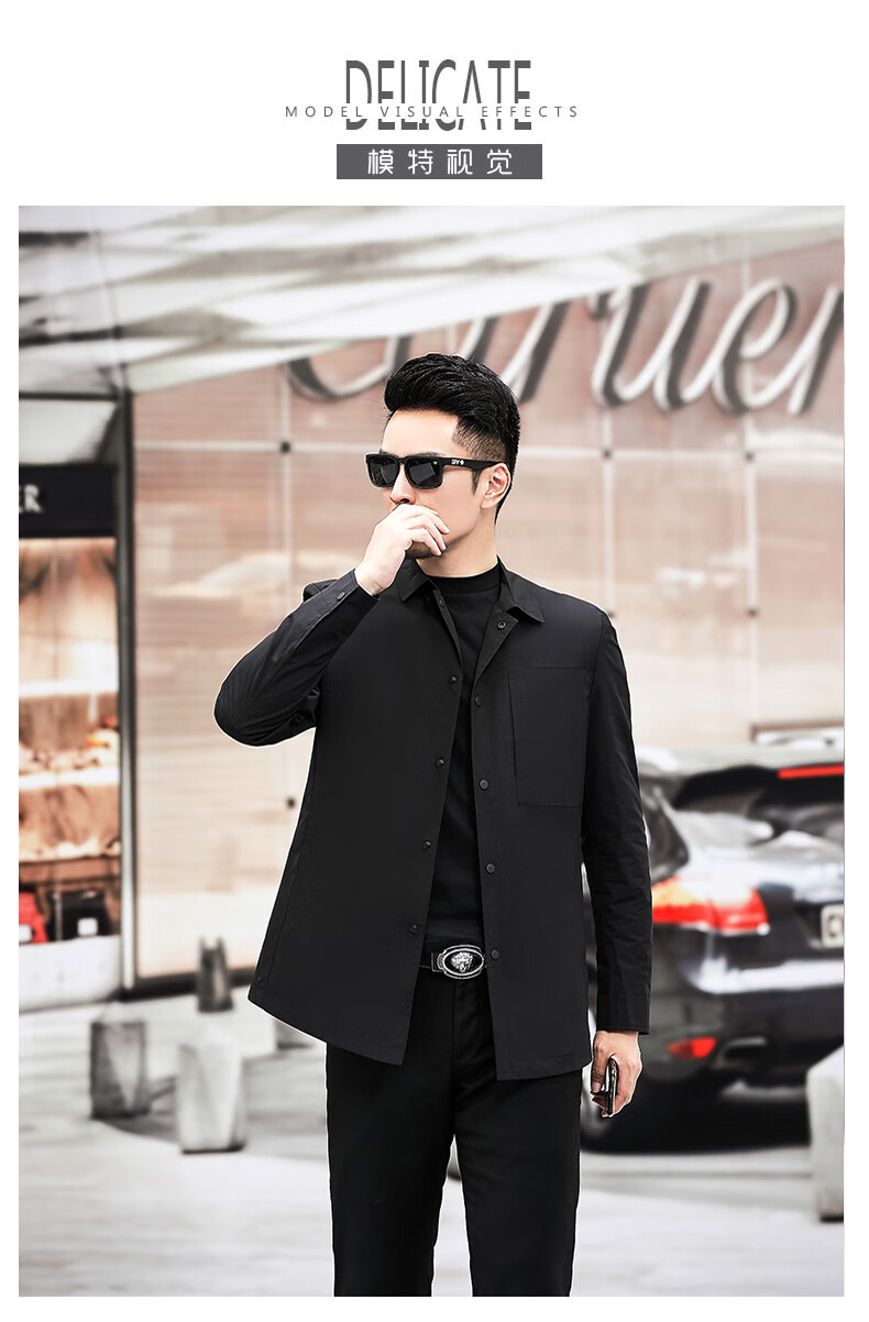 ROMON versatile windbreaker men's short lapel spring and autumn new middle-aged business casual men's coat British style thin dark blue 369 styles - Store Manager XL 180