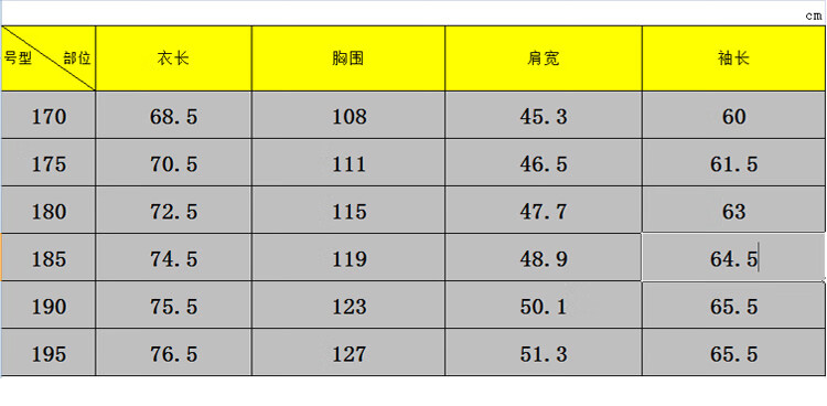 China (cm) 160-165/84-86 165-170 / 88-90 167-172 / 92-96 168-173 / 98-102 170-176 / 106-110